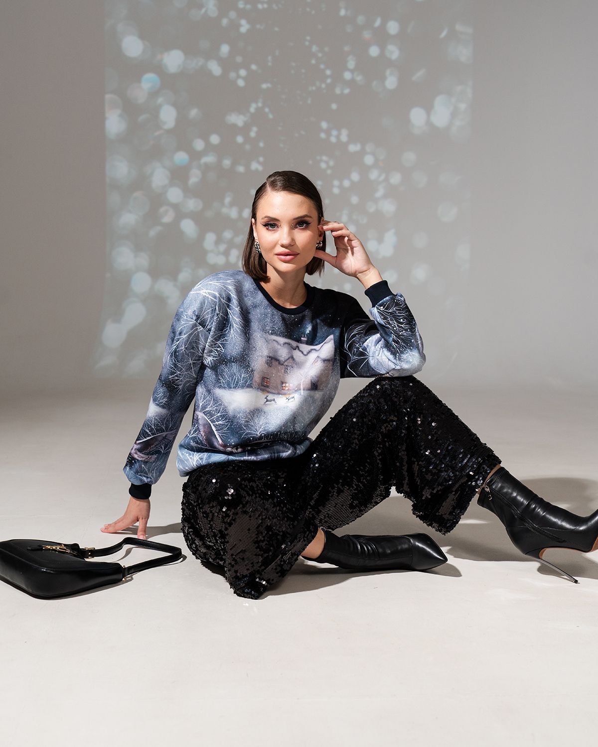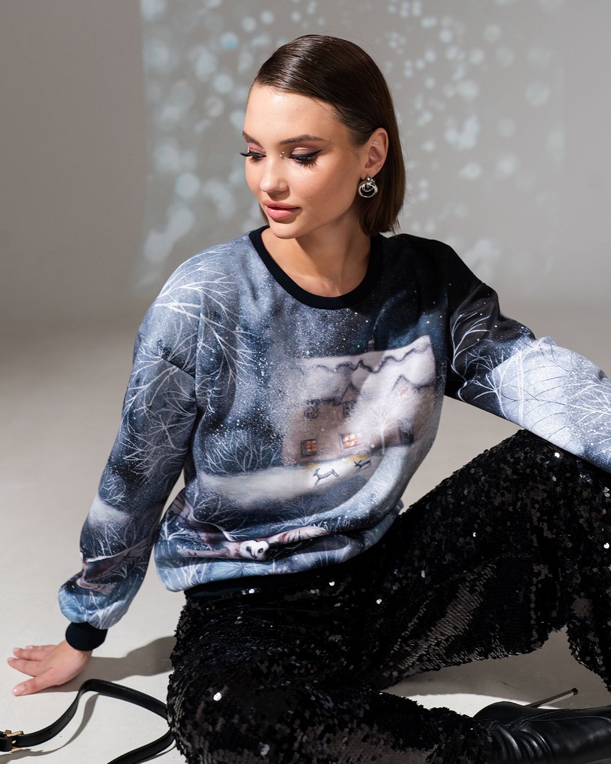 Самые смелые дизайнерские принты для Вашего гардероба нанесены методом сублимационной печати, которая делает рисунок ярким и очень устойчивым, ему не страшны машинные стирки. Цвет сохраняет сочность на протяжении нескольких сезонов. Достигается это также благодаря материалу, из которого изготовлен свитшот - интерлок. Это ткань, которая состоит из двух частей: внутри приятный для тела хлопок, а снаружи полиэстеровый слой, гарантирующий износостойкость принта.