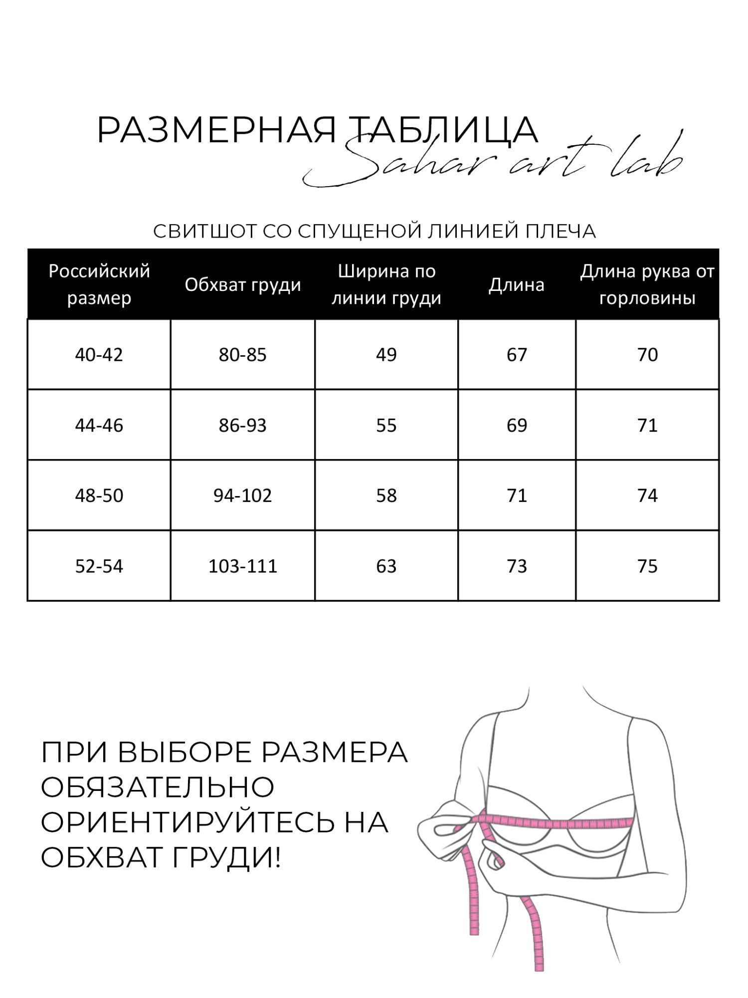 Удлиненный свитшот с авторскими принтами наших художников - изысканный подход к созданию комфортных образов на каждый день. Спущенная линия плеча делает свитшот Оверсайз универсальной находкой для всех типов фигур! К тому же, если вы следите за модными показами, наверняка знаете, что такой плечевой шов в тренде. Манжеты и горловина свитшота однотонные, сделаны из кашкорсе - трикотажной ткани, которая отличается эластичностью и стойкостью к долгой носке и стиркам.