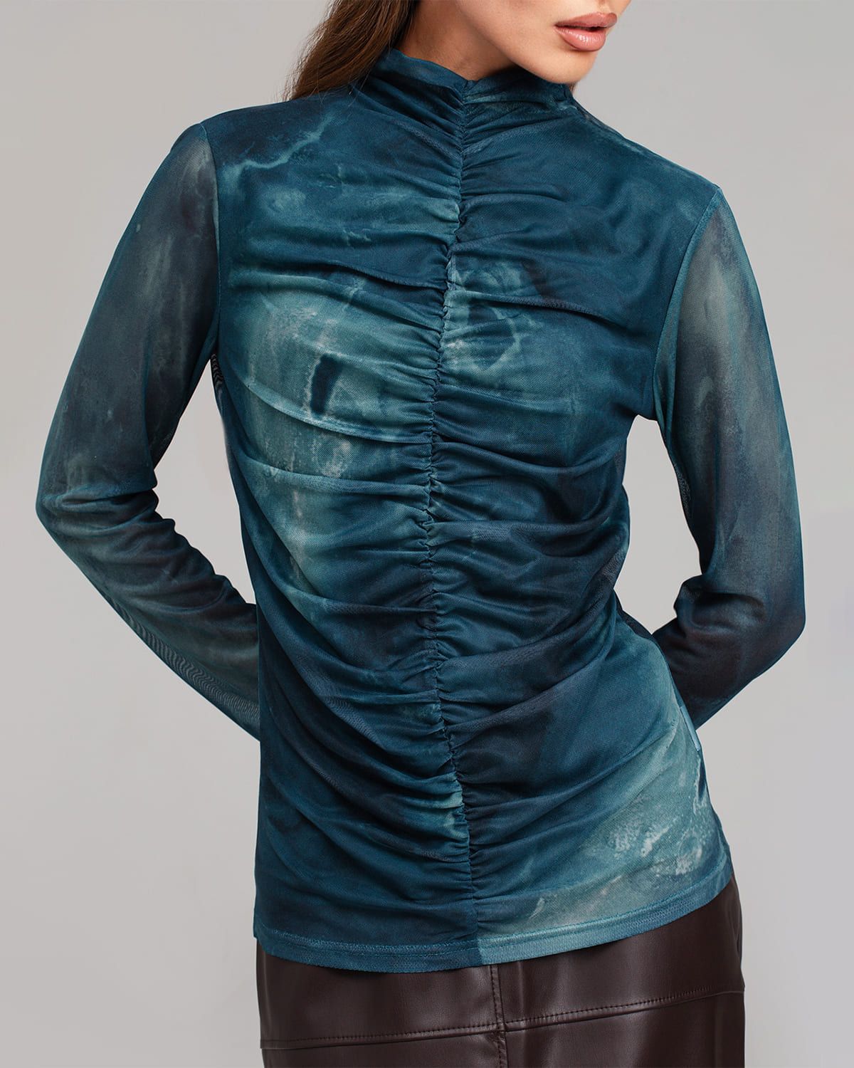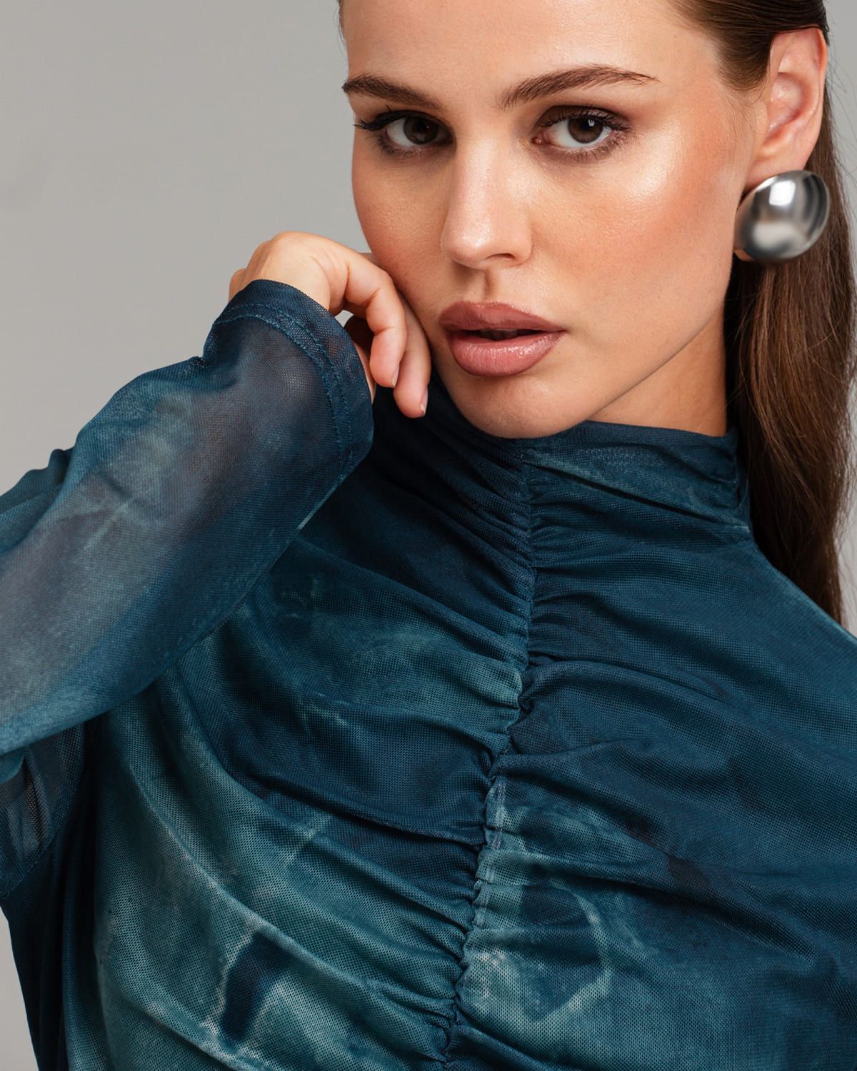 Водолазка из эластичной сетки с рельефами и сборкой - трендовый элемент гардероба для создания интересных многослойных образов. Облегающая подкладка впереди изделия делает водолазку не просвечивающейся и комфортной. Водолазка из сетчатой ткани очень приятна для тела. Она как будто воздушными нитями обволакивает кожу и практически не чувствуется. Материал мягкий и эластичный. Рельефы и сборка на ткани добавляют особый шарм и придают модели неповторимый стиль.
