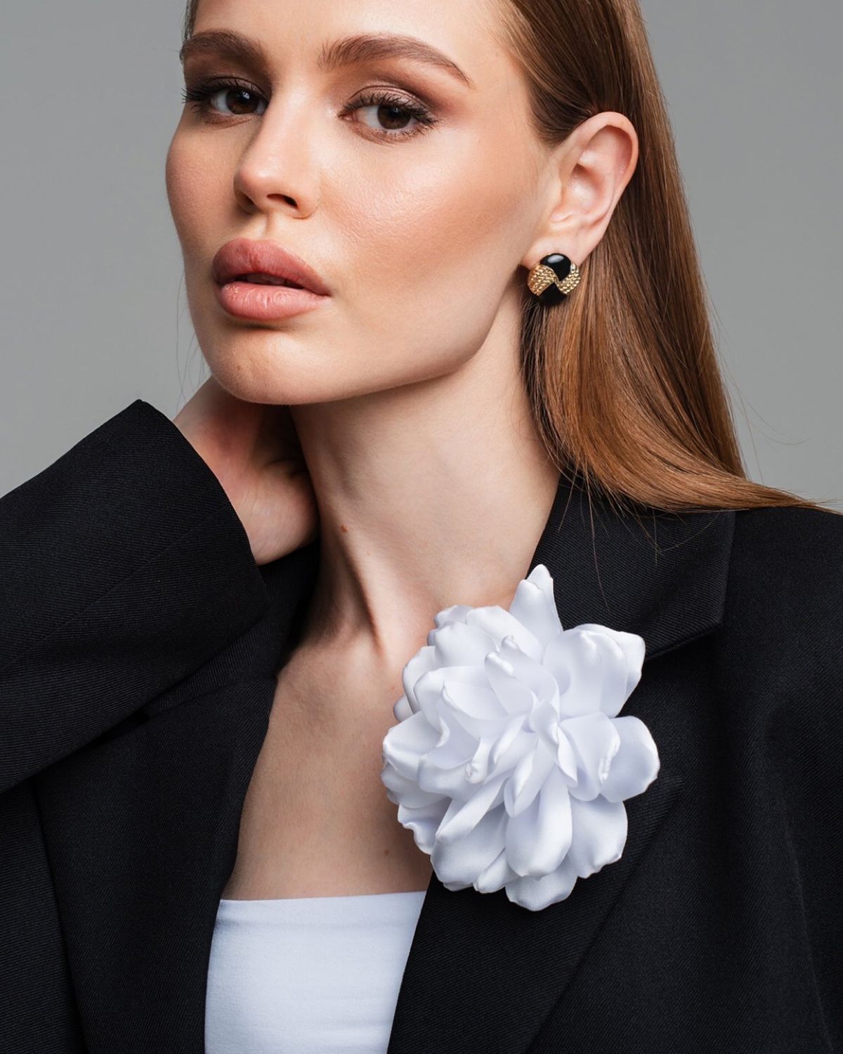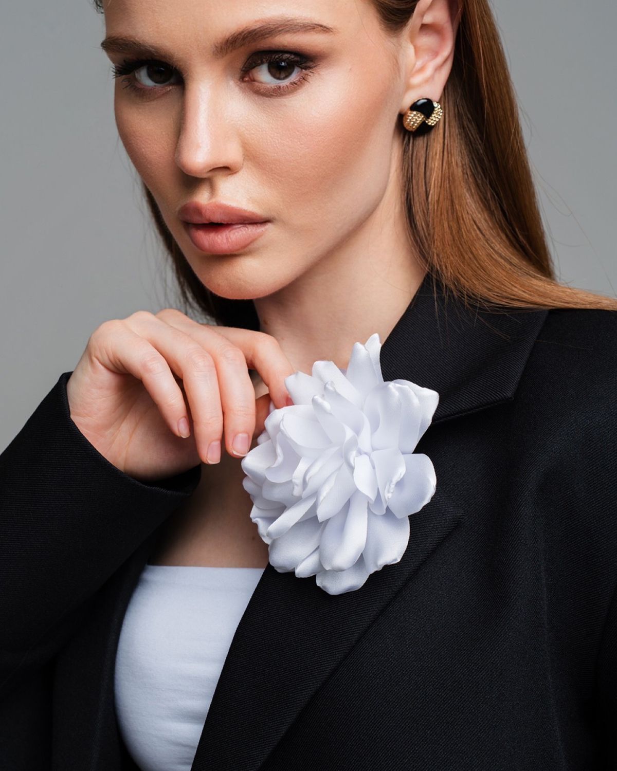 Задняя часть броши плоская, без выпирающих деталей, а лепестки очень лёгкие по весу. Сделано это для того, чтобы цветок красиво держался на любом типе ткани и не свисал. Аккуратная иголка бережно закрепит аксессуар и не повредит одежду.