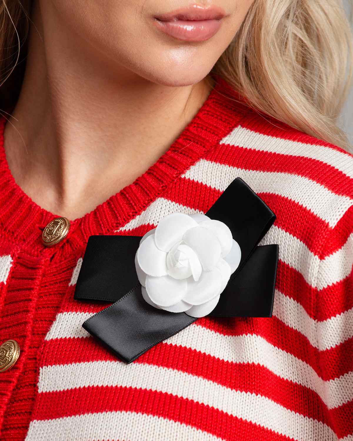 Брошь Шанель выполнена в контрастных цветах, что делает её особенно привлекательной и стильной. Она идеально подойдет для сдержанных и элегантных образов, будь то повседневный наряд или школьная форма. Украшение будет особенно актуально для школьниц, так как оно добавит нотку утонченности и сдержанности их образу.