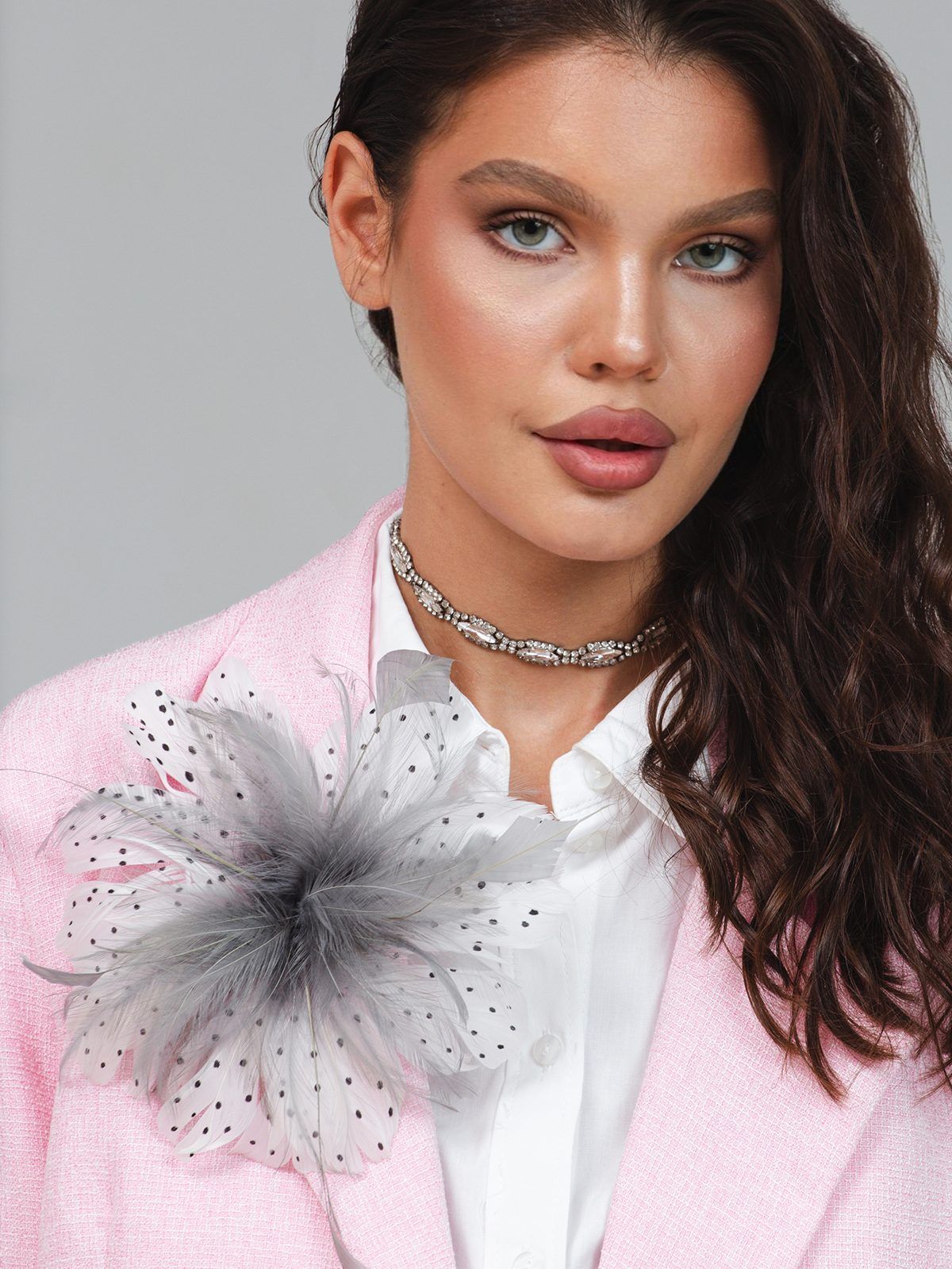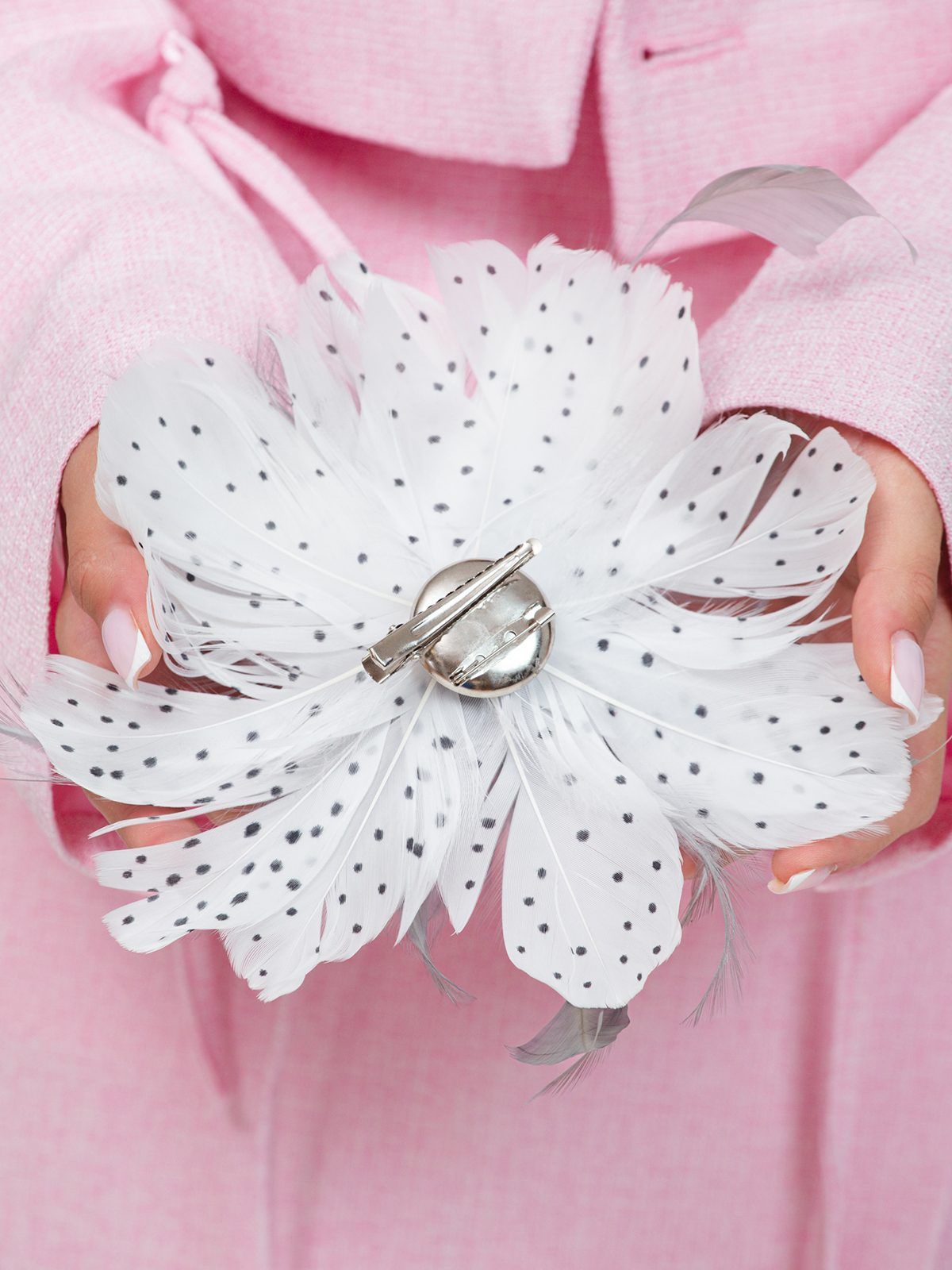 Необычайно романтичная большая брошь цветок из перьев станет изысканным акцентом в вашем образе. Выполненная из натуральных перьев, она олицетворяет естественную красоту и утонченность. Перья разной формы придают броши динамичность и уникальный вид, делая каждый экземпляр по-настоящему неповторимым. Лепестки цветка в горошек добавляют игривости и легкости, создавая необычный и запоминающийся образ.