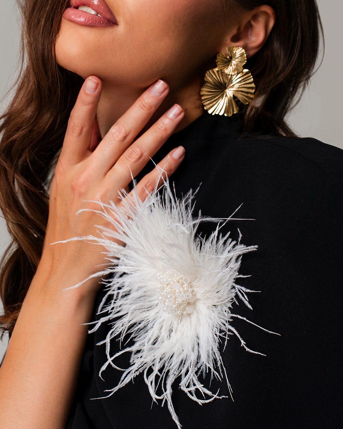 Перьевая брошь с бусинами не только добавляет стиль и шарм, но и делает вас центром внимания благодаря своему утонченному и элегантному исполнению.