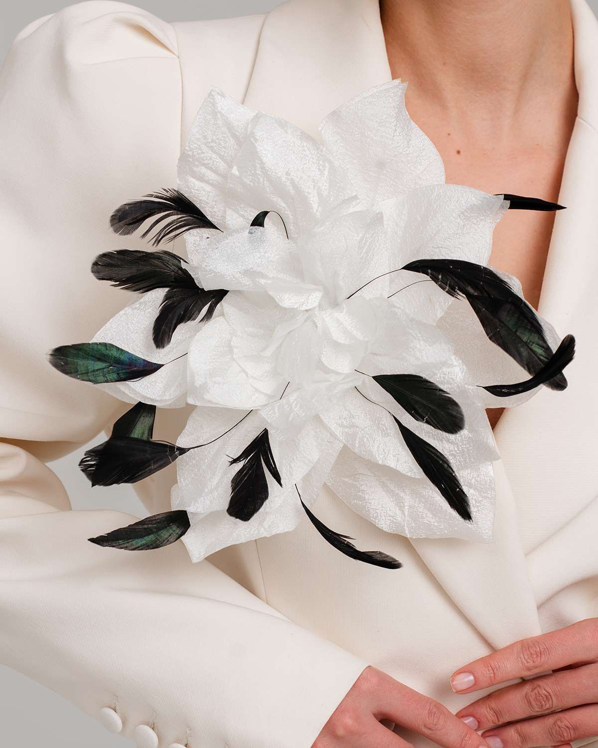 Погрузитесь в мир элегантности с этой большой шелковой брошью в форме цветка, украшенной натуральными перьями. Это украшение ручной работы станет настоящим акцентом вашего образа. Изготовленная из искусственного шелка, брошь сочетает в себе нежность и изысканность, которые подчеркнут ваш стиль. Уникальная особенность этой броши – возможность моделирования формы. Лепестки можно расправить и придать им желаемый изгиб благодаря встроенной проволоке, создавая объемный и пышный вид. Универсальное крепление позволяет использовать брошь как на одежде, так и в качестве заколки для волос, что делает её идеальным аксессуаром для любого случая. Будь то повседневный выход или вечернее мероприятие, эта брошь добавит нотку романтики и изысканности в ваш наряд. Она подчеркнет вашу индивидуальность и безупречный вкус. Такой аксессуар станет отличным подарком для женщины, которая ценит стильные и необычные и красивые украшения.