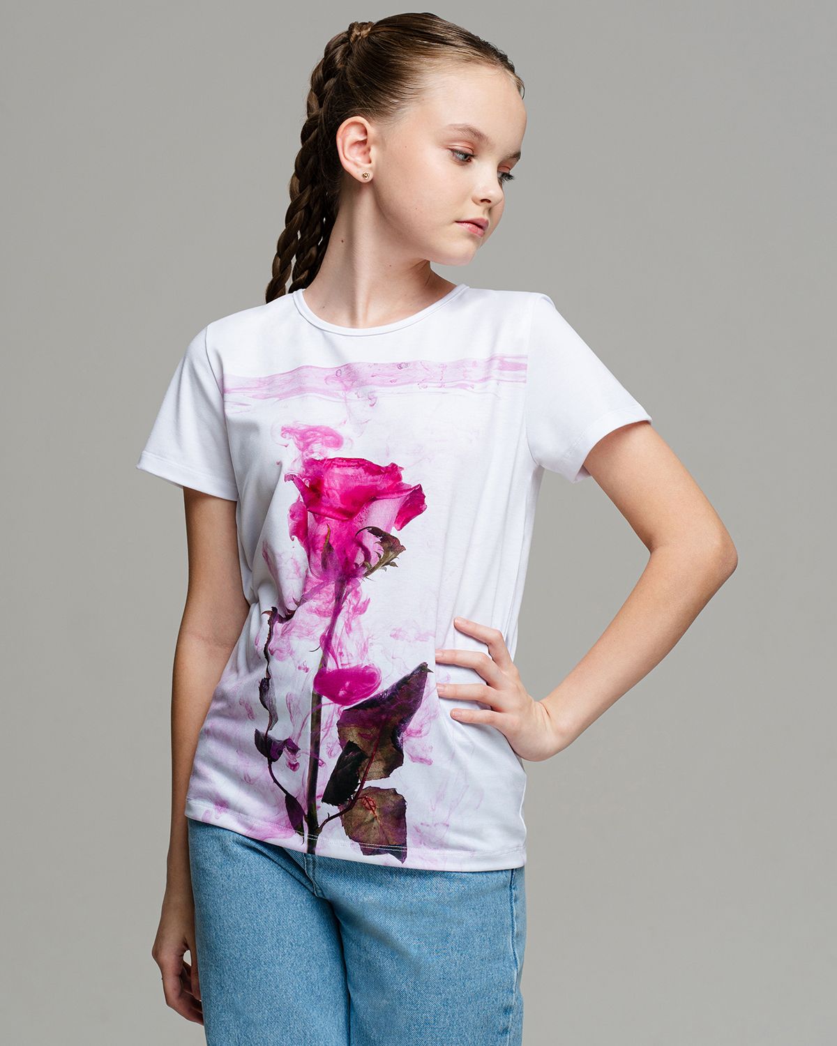Футболка детская с авторским принтом для самых притязательных юных клиенток. Рисунок создан в нашей творческой лаборатории художниками и впечатан в ткань так, что краски не побледнеют даже после 50 стирок. Принт не трескается и не выцветает со временем.