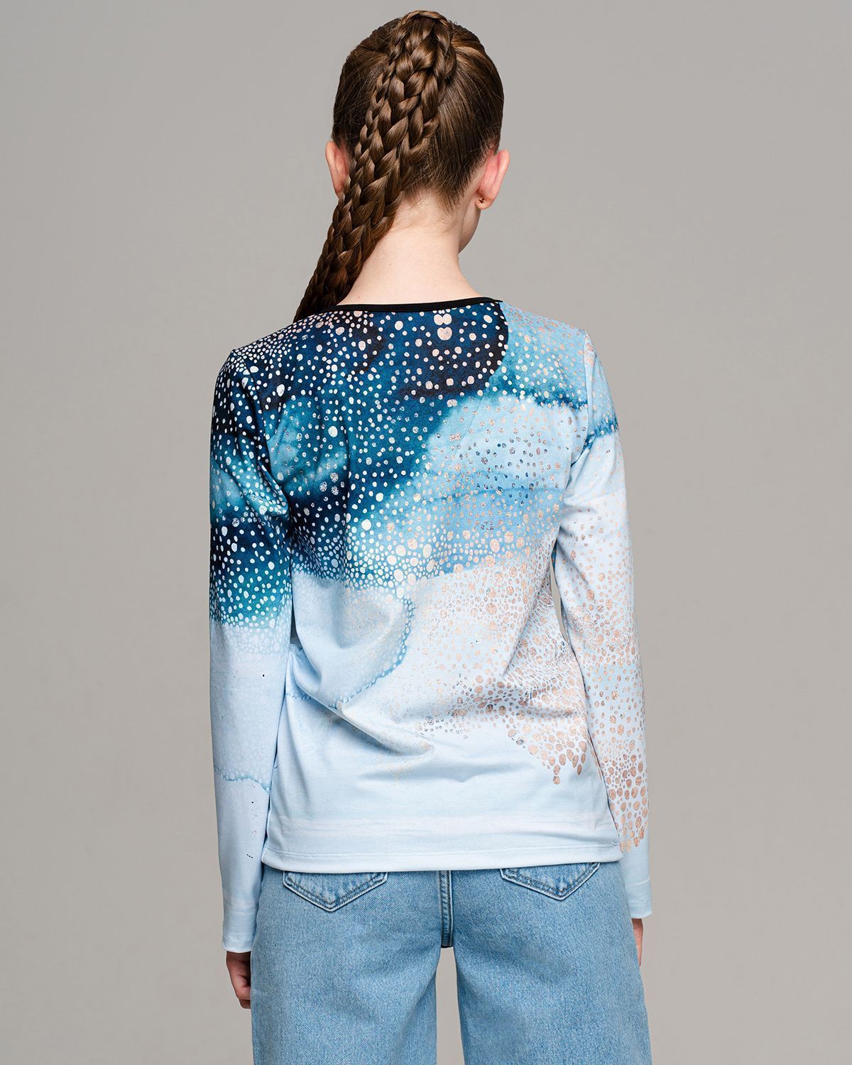 Лонгслив для девочки свободного кроя — необходимая вещь в детском гардеробе для создания расслабленных образов. Он не сковывает движения, ребёнок чувствует себя комфортно. Кофта для девочки покрыта авторским принтом от наших художников по всей поверхности. Благодаря технике сублимационной печати краски надёжно впечатываются в волокна ткани и сохраняют яркость цвета на протяжении нескольких сезонов. Сочные принты не завянут после стирок, можете не переживать. Трикотаж для девочек подойдёт для повседневных прогулок, садика и даже для дома.