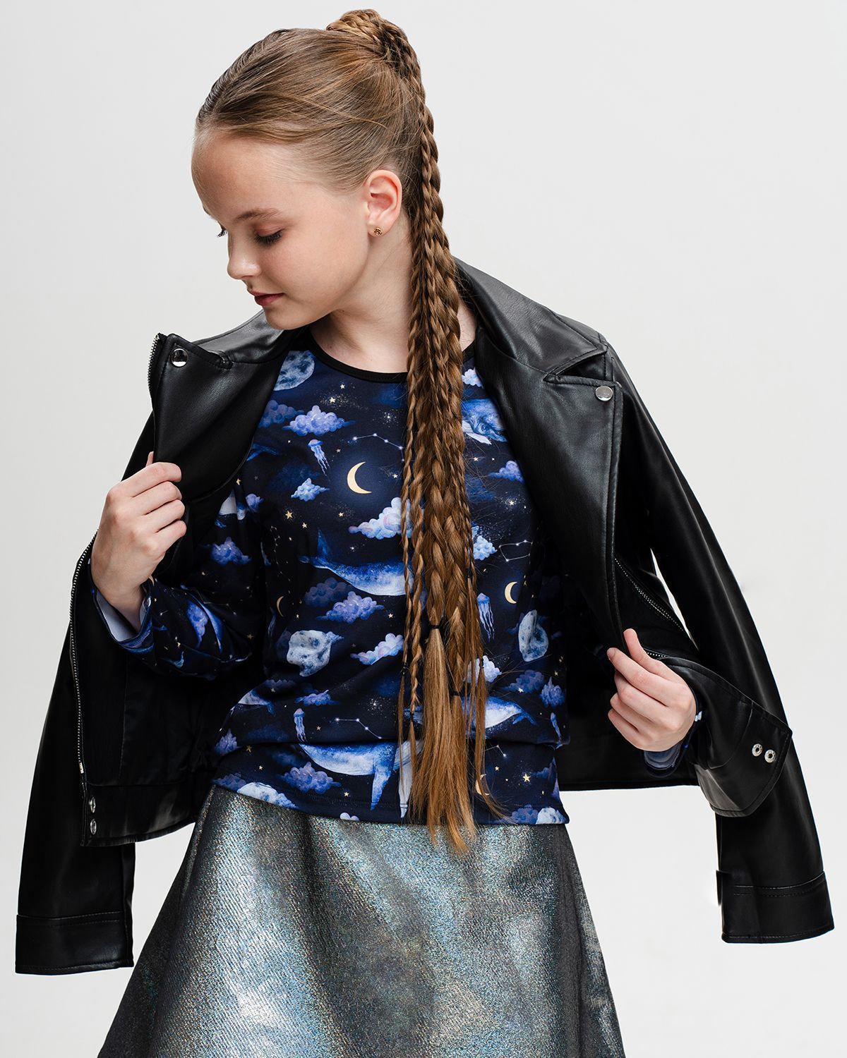 Лонгслив для девочки свободного кроя — необходимая вещь в детском гардеробе для создания расслабленных образов. Он не сковывает движения, ребёнок чувствует себя комфортно. Кофта для девочки покрыта авторским принтом от наших художников по всей поверхности. Благодаря технике сублимационной печати краски надёжно впечатываются в волокна ткани и сохраняют яркость цвета на протяжении нескольких сезонов. Сочные принты не завянут после стирок, можете не переживать. Трикотаж для девочек подойдёт для повседневных прогулок, садика и даже для дома.