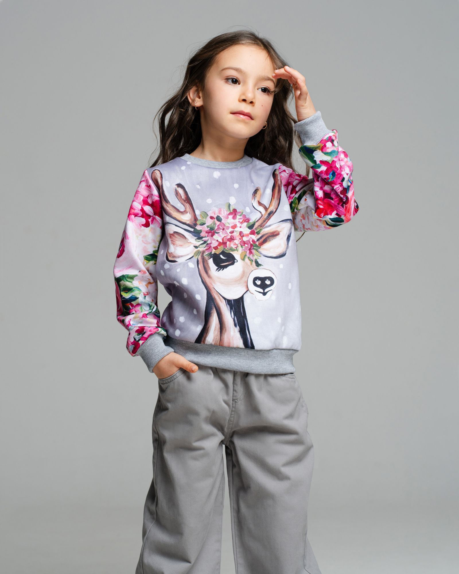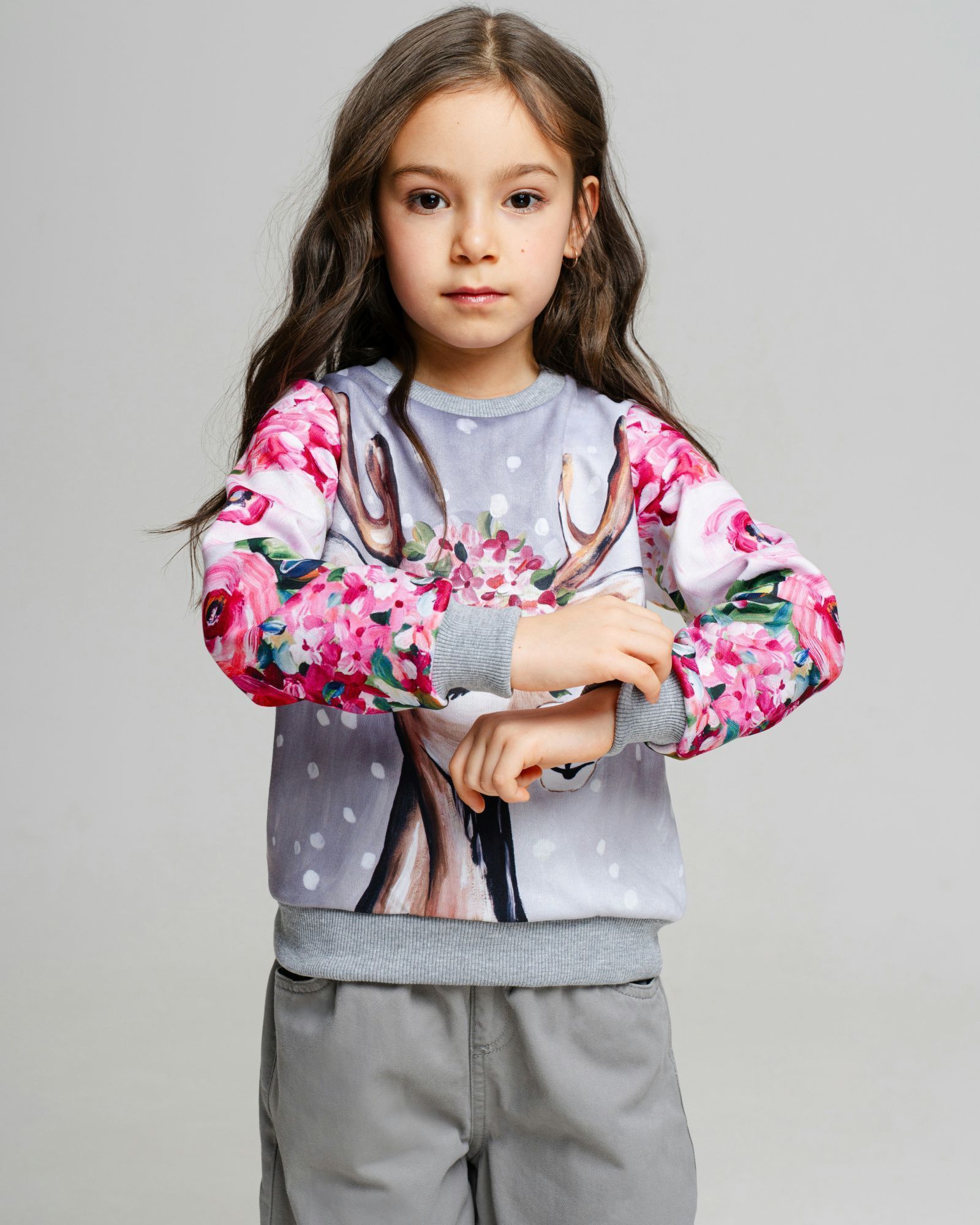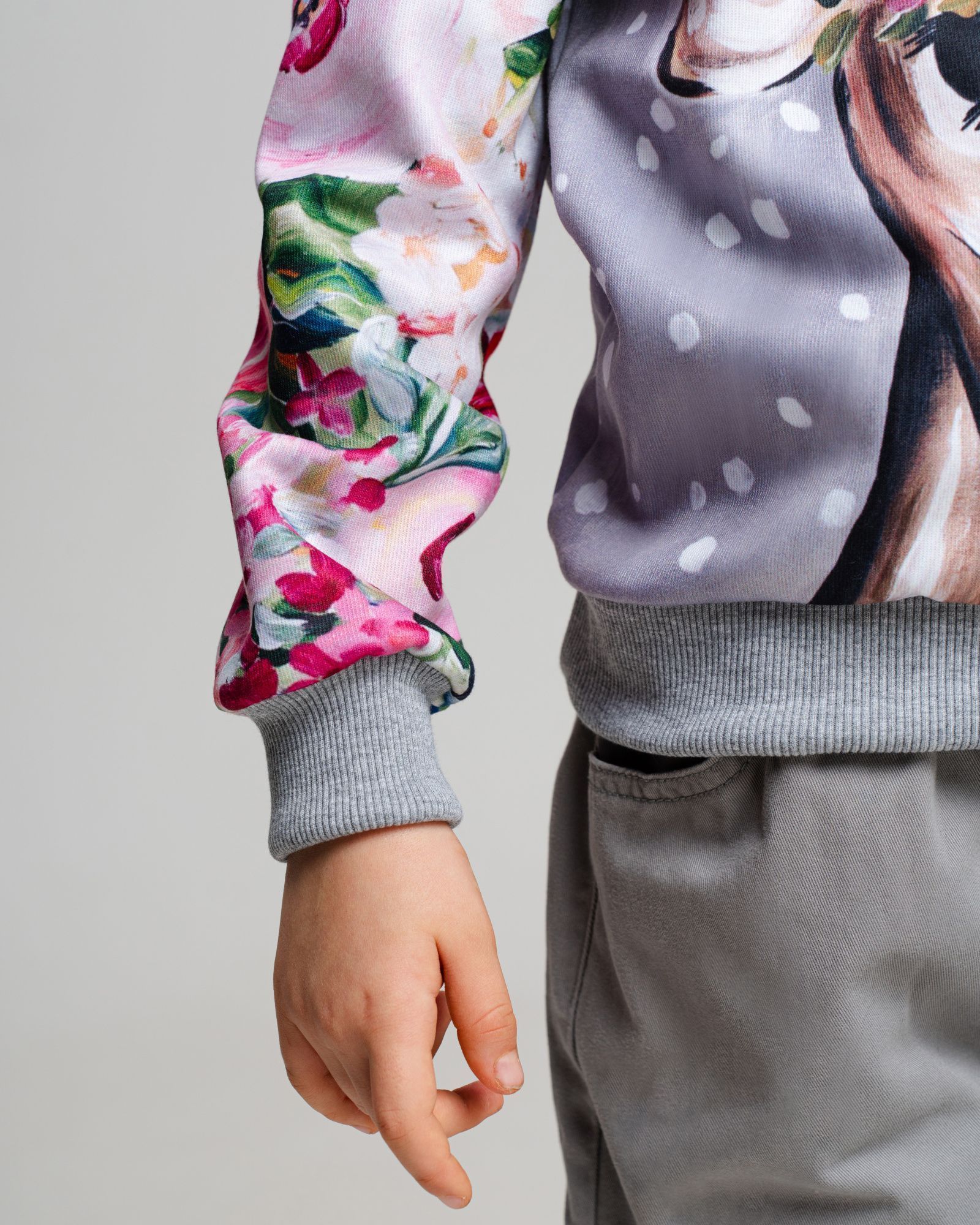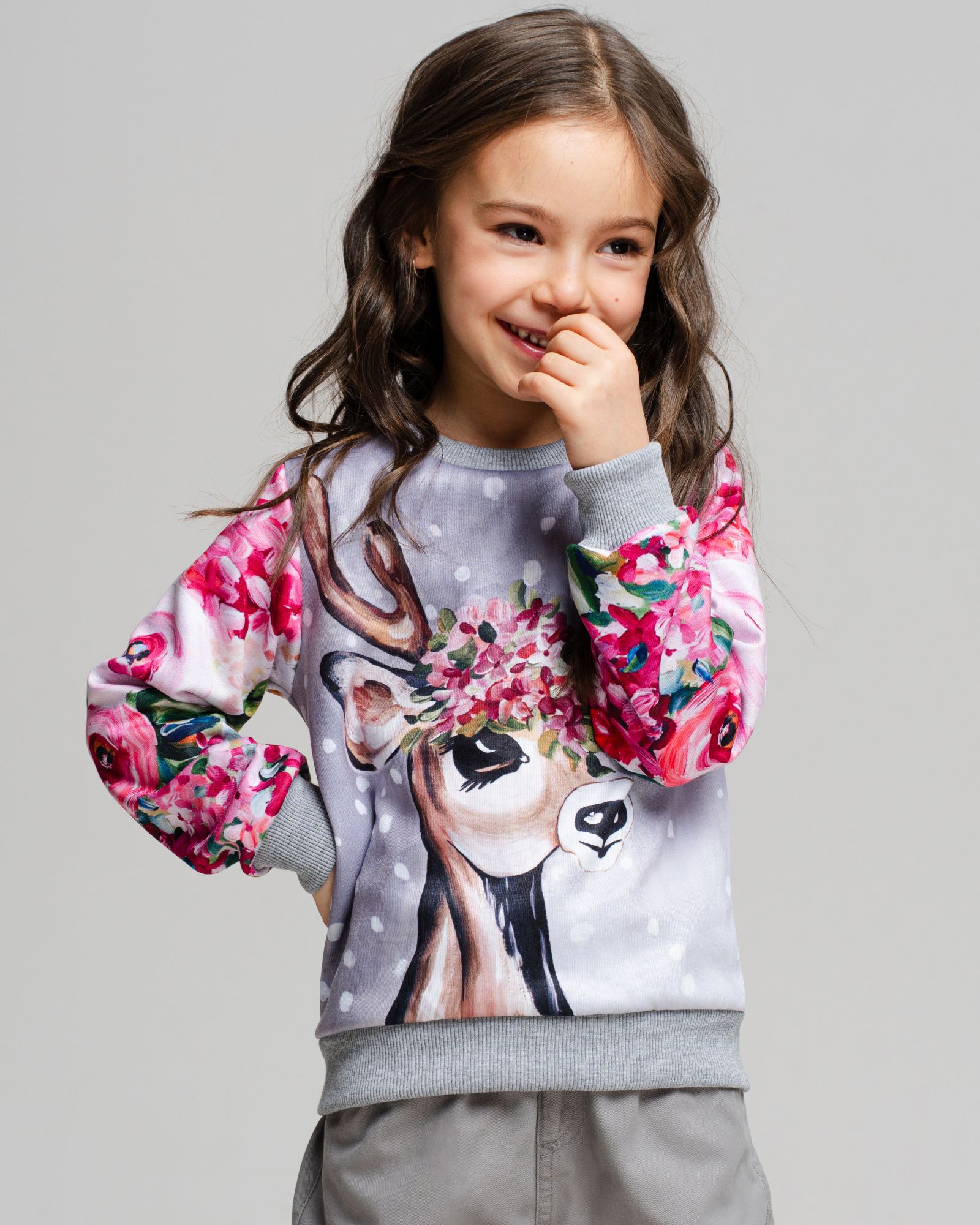 Свитшот для девочки, которая любит комфортную одежду и оригинальные дизайнерские принты. Мамы в поисках необычных вещей точно оценят наш подход к созданию рисунков — над ними работает целая команда художников. Детская кофта сделана из интерлока. Это двухслойный материал, в котором хлопок прилегает к телу, а полиэстер снаружи отвечает за стойкость принта. Благодаря современным технологиям печати рисунки со временем не изнашиваются, а остаются такими же яркими и красочными. Принты обрамляют однотонные манжеты из кашкорсе — трикотажная ткань, которая устойчива к стиркам и хорошо сохраняет форму, не растягиваясь и не обвисая. Кофта для девочки имеет свободный комфортный крой и отлично вписывается в базовый гардероб.