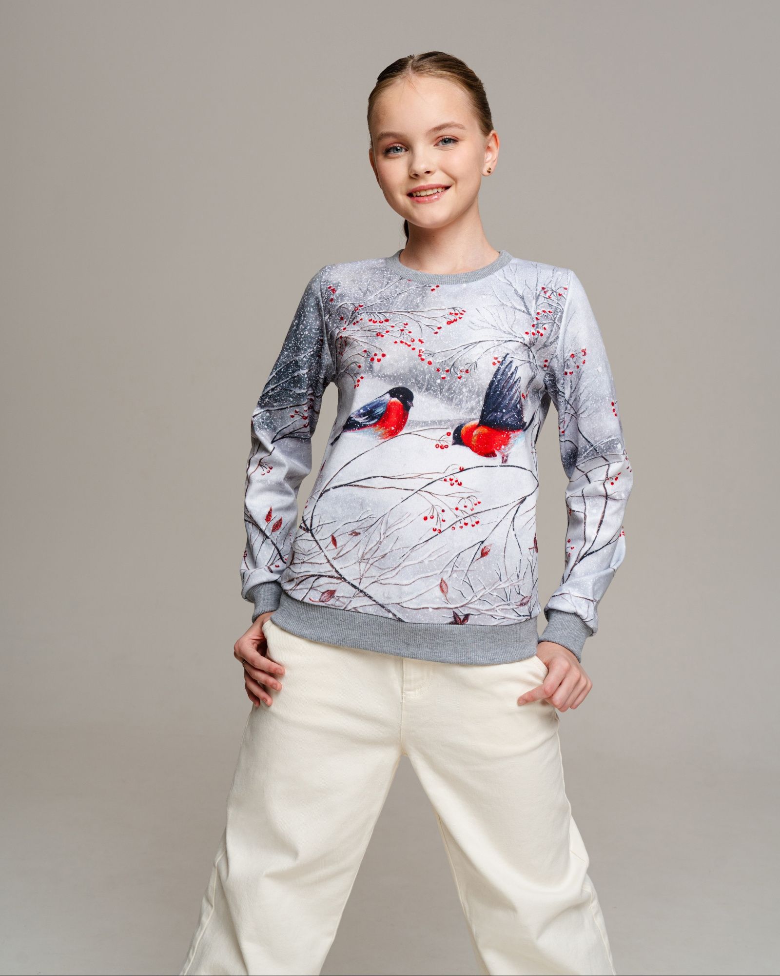 Свитшот для девочки, которая любит комфортную одежду и оригинальные дизайнерские принты. Мамы в поисках необычных вещей точно оценят наш подход к созданию рисунков — над ними работает целая команда художников. Детская кофта сделана из интерлока. Это двухслойный материал, в котором хлопок прилегает к телу, а полиэстер снаружи отвечает за стойкость принта. Благодаря современным технологиям печати рисунки со временем не изнашиваются, а остаются такими же яркими и красочными. Принты обрамляют однотонные манжеты из кашкорсе — трикотажная ткань, которая устойчива к стиркам и хорошо сохраняет форму, не растягиваясь и не обвисая. Кофта для девочки имеет свободный комфортный крой и отлично вписывается в базовый гардероб.