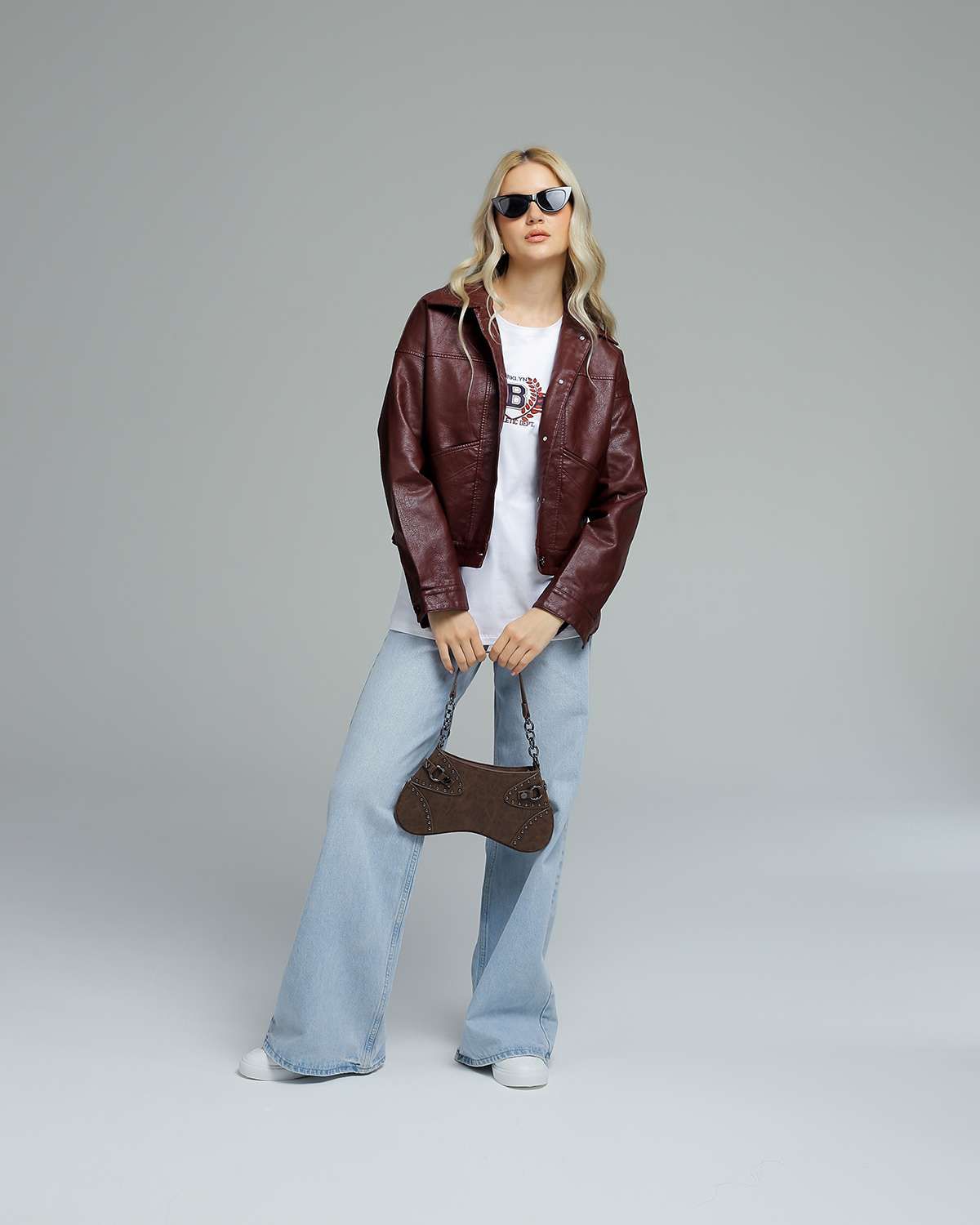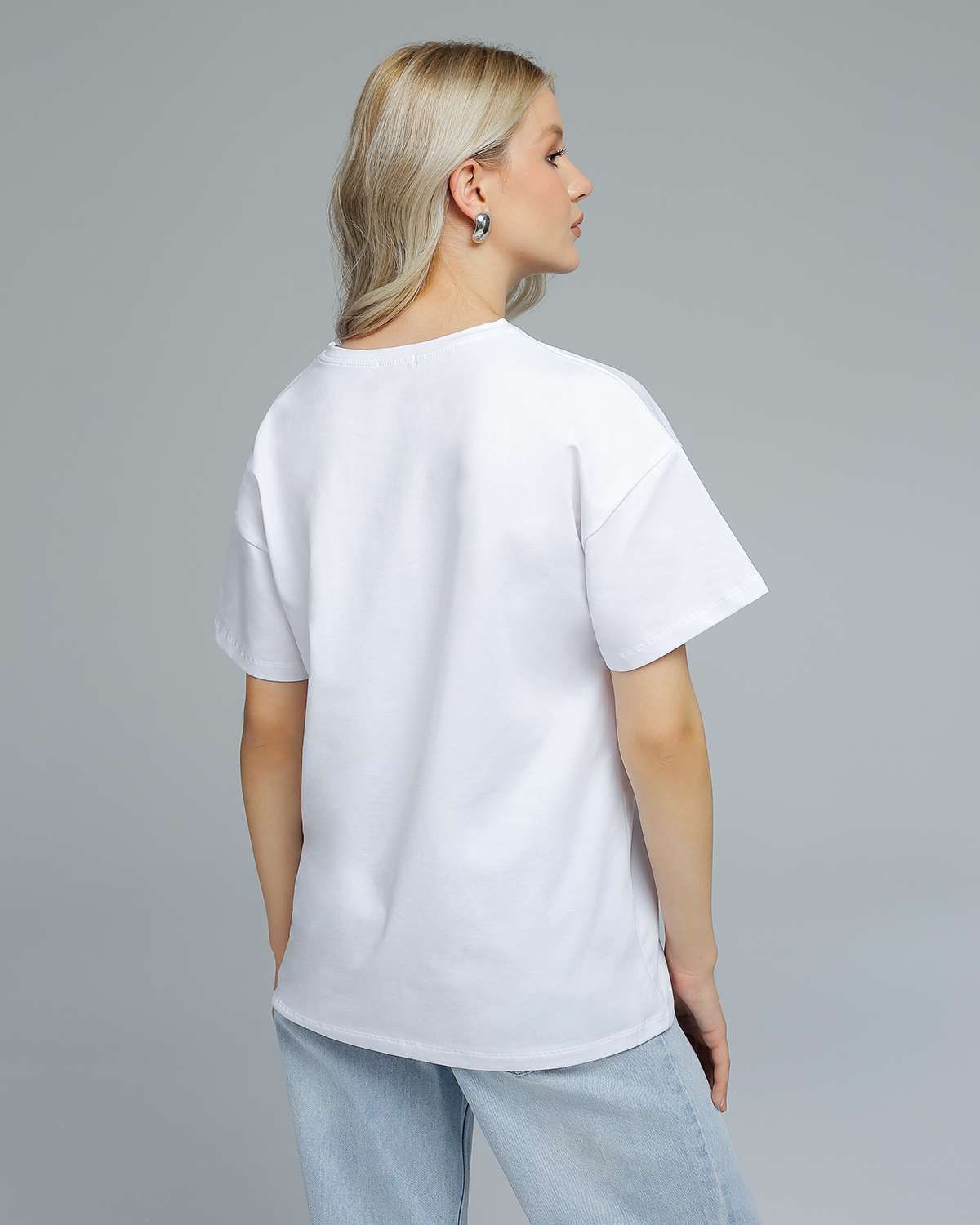 Футболка женская актуального кроя — свободная посадка и широкий рукав, которые подчёркивают современность изделия. Её можно носить в заправленном виде и навыпуск.