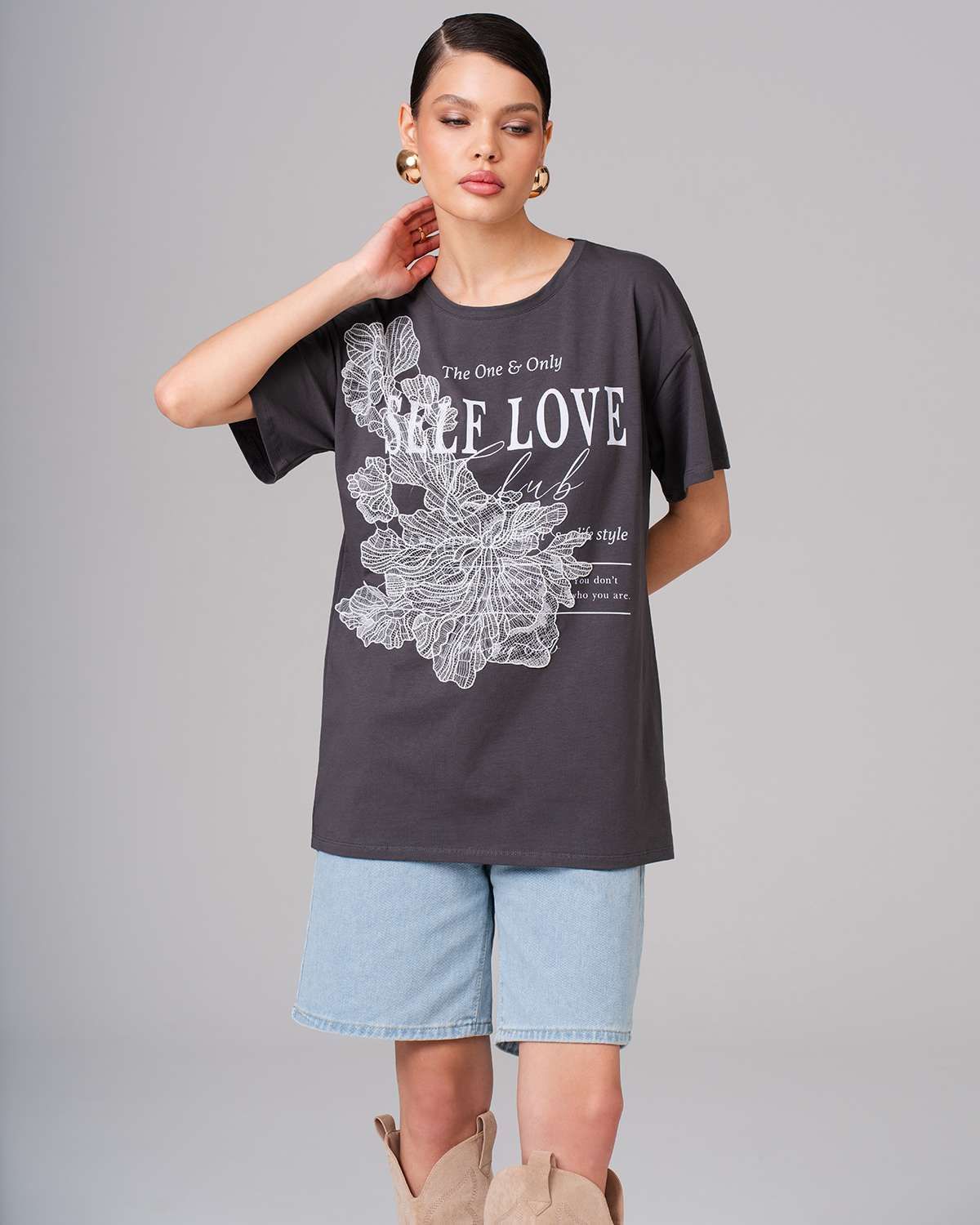 Коллекцию трендовых футболок от российского бренда SAHAR Art lab отличает оригинальный авторский принт и модный дизайн! Базовые модели выполнены из премиальной хлопковой кулирки турецкого производства (хлопок 95%, лайкра 5%). Особенностью ткани является отличный воздухообмен, легкий уход, износоустойчивость, сохранение формы и цвета после многочисленных стирок. Творческая команда дизайнеров и художников создает эксклюзивные вещи по тщательно продуманным лекалам. Современные модели прекрасно сидят на женщинах с любой фигурой. Прямой свободный крой, легкий оверсайз, оптимальная длина, округлый вырез и широкие, немного удлиненные рукава делают футболку незаменимым предметом женского гардероба! Стильная вещь серого цвета украшена рисунком и аппликацией из кружева. Нарядная трикотажная футболка дополнит наряд для пляжного отдыха на море, будет с удовольствием носиться в качестве повседневной на работе, дома или во время прогулки.