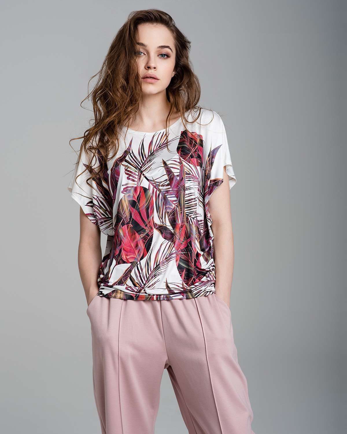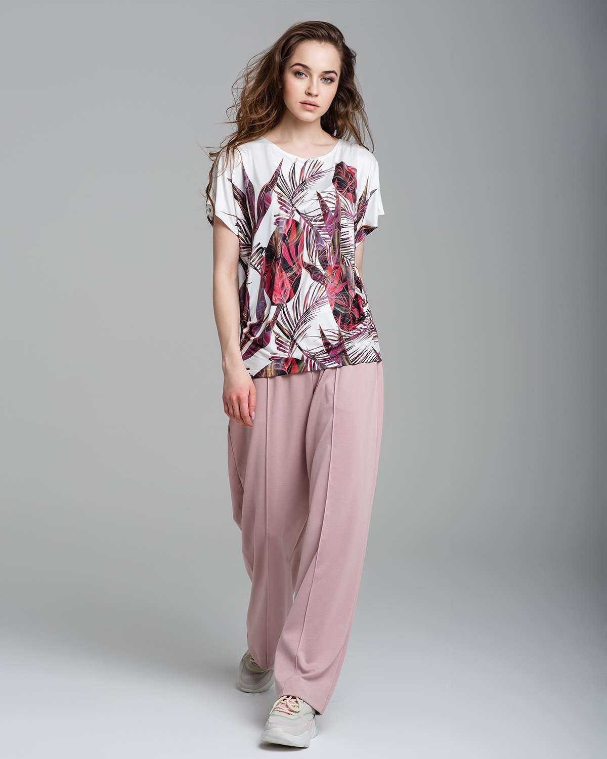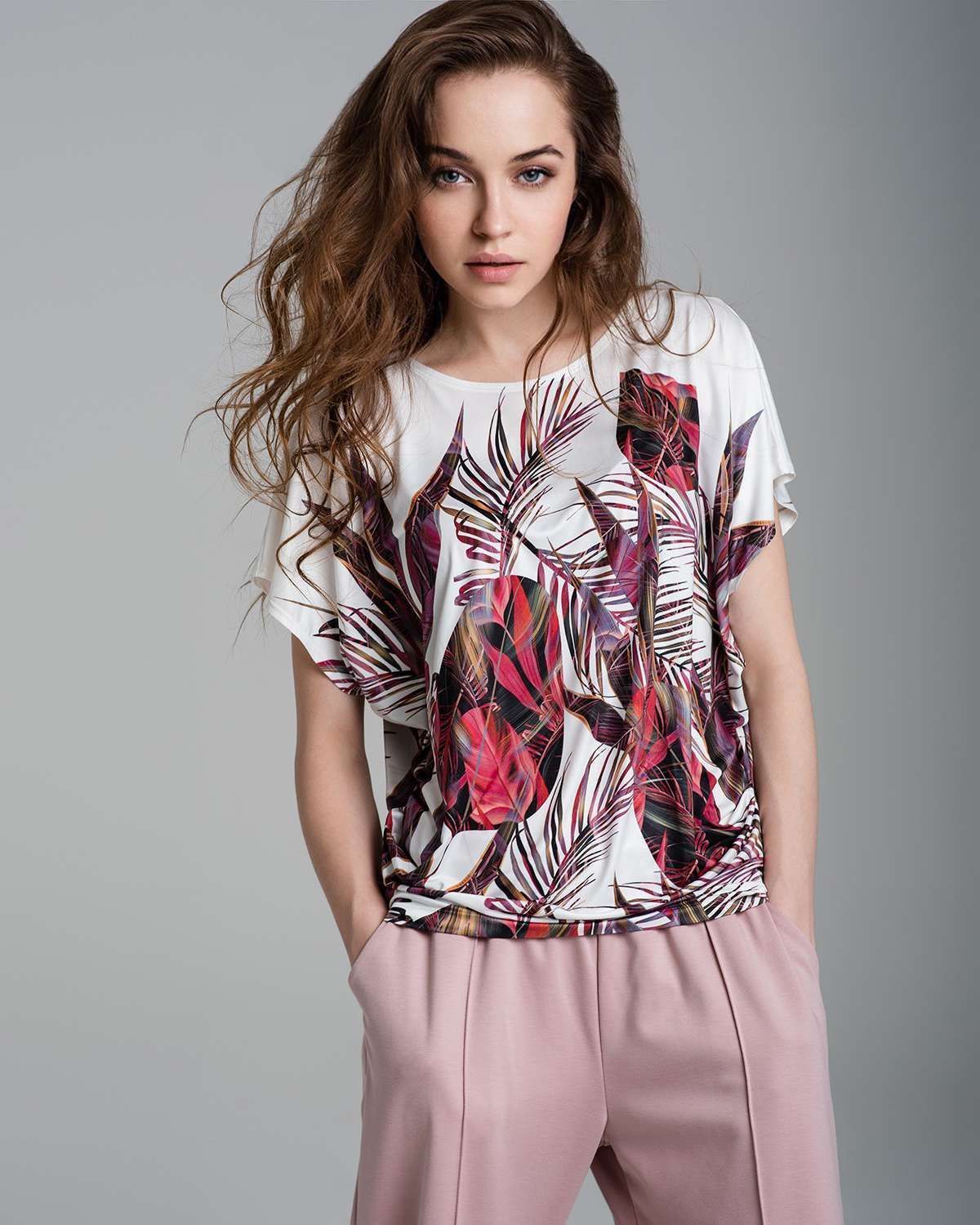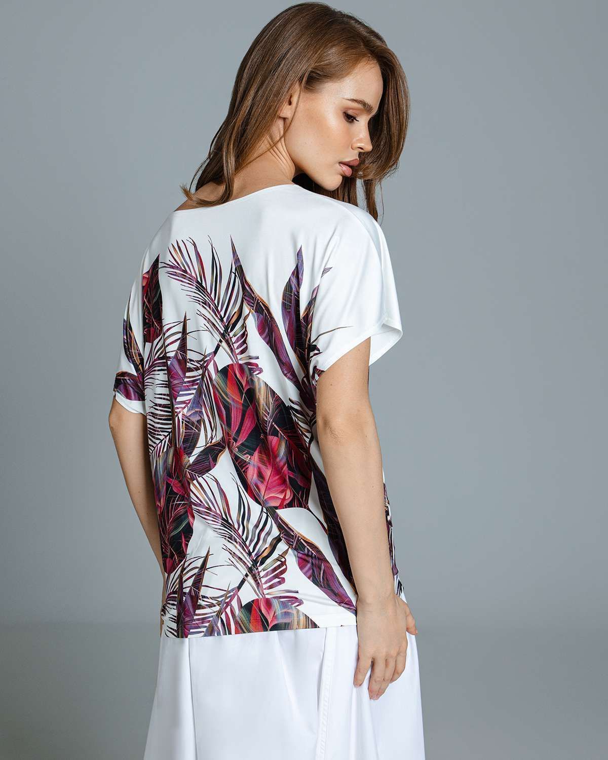 Футболка "Кимоно-баллон" из вискозной ткани "Венеция" с полной запечаткой авторским принтом. Это тонкий плотный трикотаж с матовой поверхностью, мягкий и шелковистый на ощупь, не образует катышков. Защипы чуть ниже талии позволяют скрыть проблемные зоны фигуры. Принт наносится таким образом, что краска введена в саму текстуру ткани и надежно там закреплена. Трикотаж остается эластичным, нет никаких слоев нанесения сверху ткани. Благодаря такой технологии рисунок остается ярким даже после многочисленных стирок.
