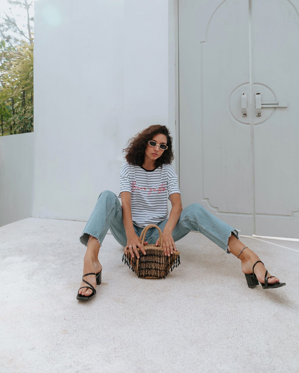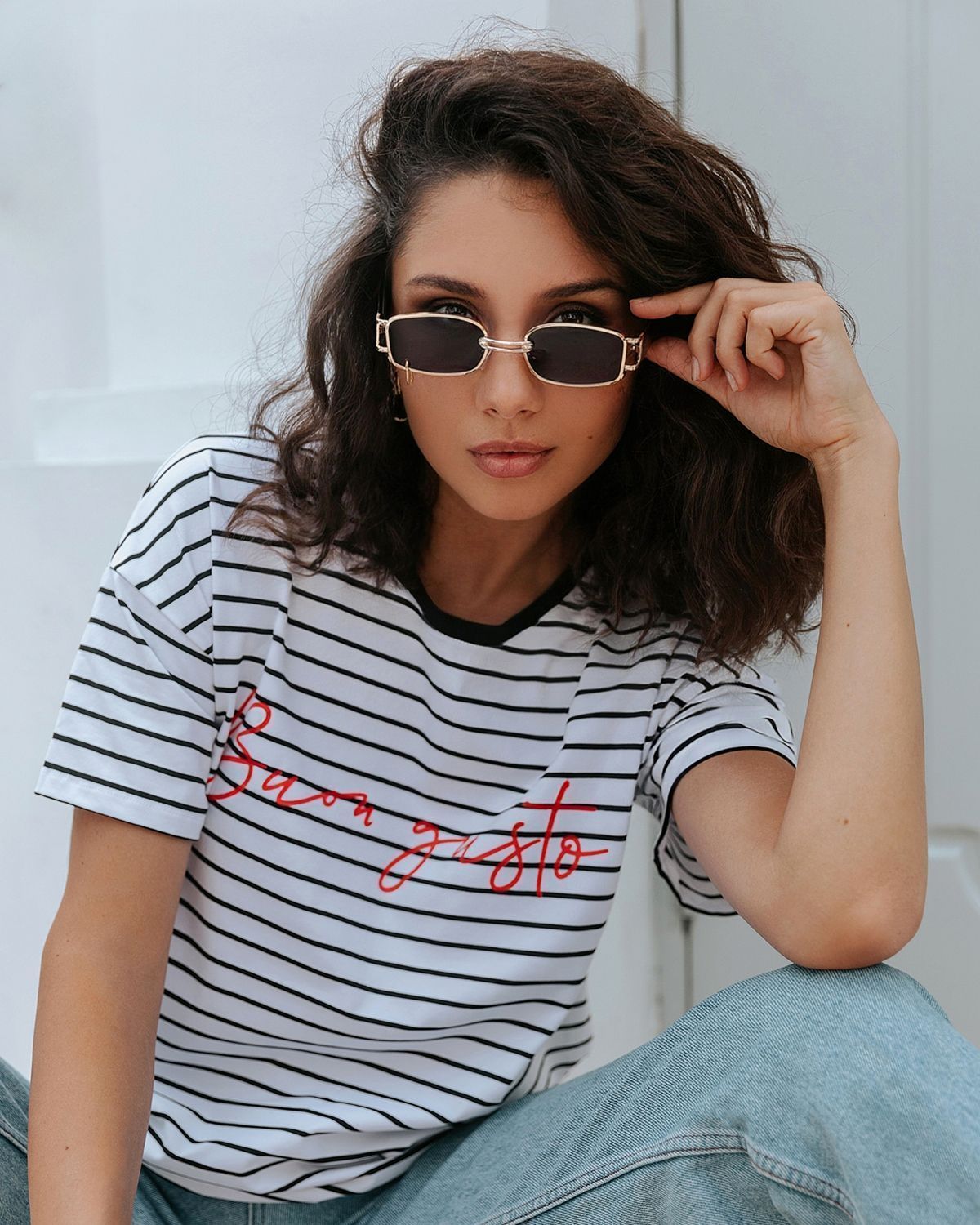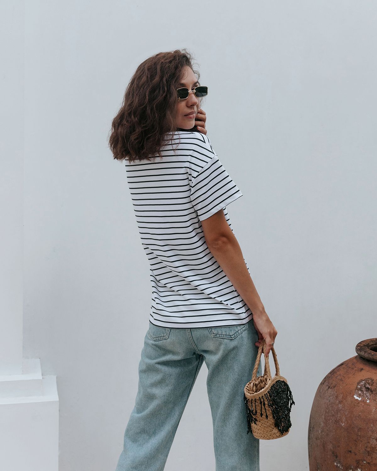Футболка свободного кроя, которая станет прекрасным дополнением к базовому летнему гардеробу. Полоска актуальна всегда и подходит тем, кому скучно носить простые белые вещи. Футболка оверсайз кроя создает актуальный расслабленный образ. Рукава со спущенной линией плеча прекрасно дополняют его и делают так, что изделие отлично сидит на разных типах фигур. Широкие плечи или узкие — она одинаково хорошо будет смотреться на всех.