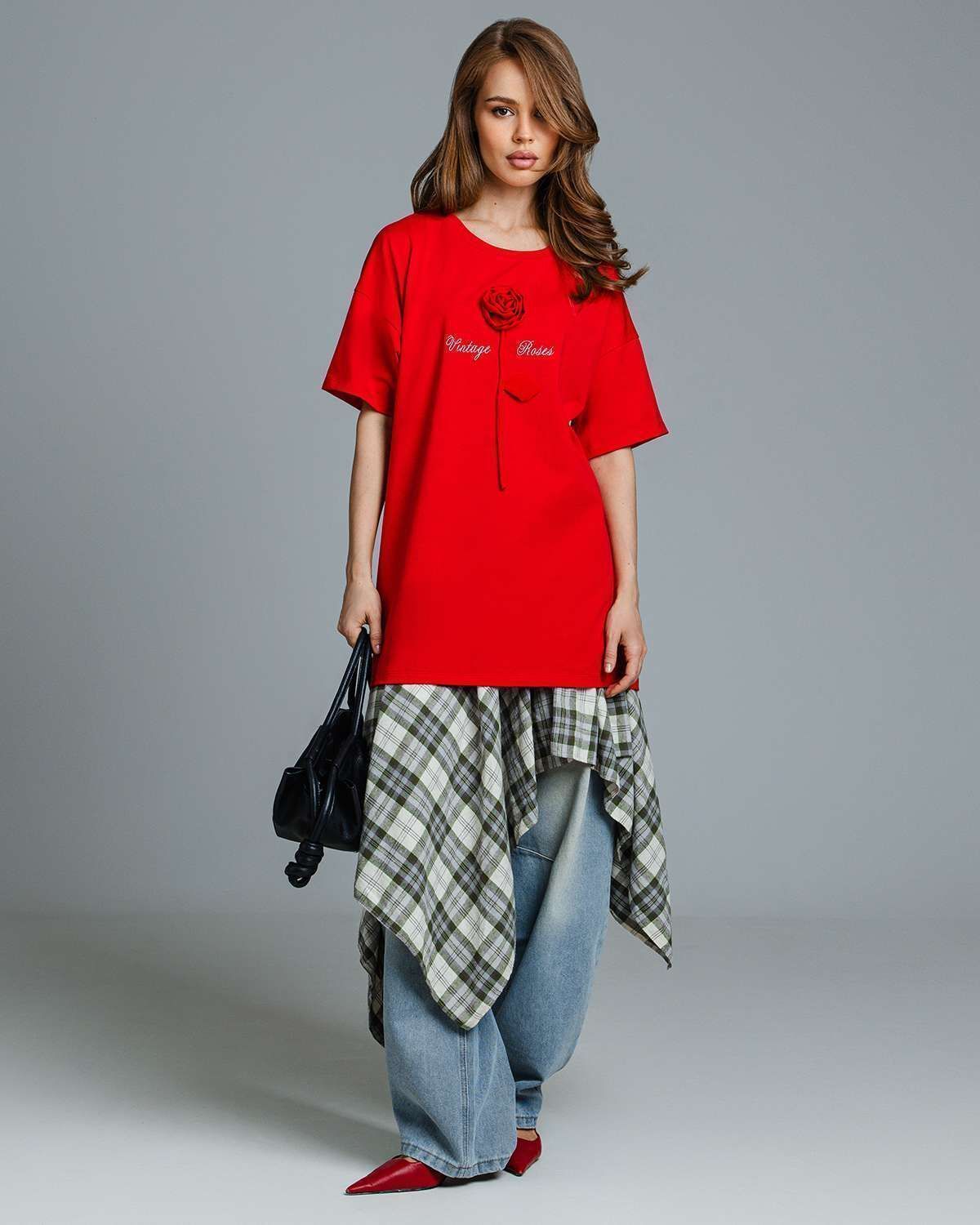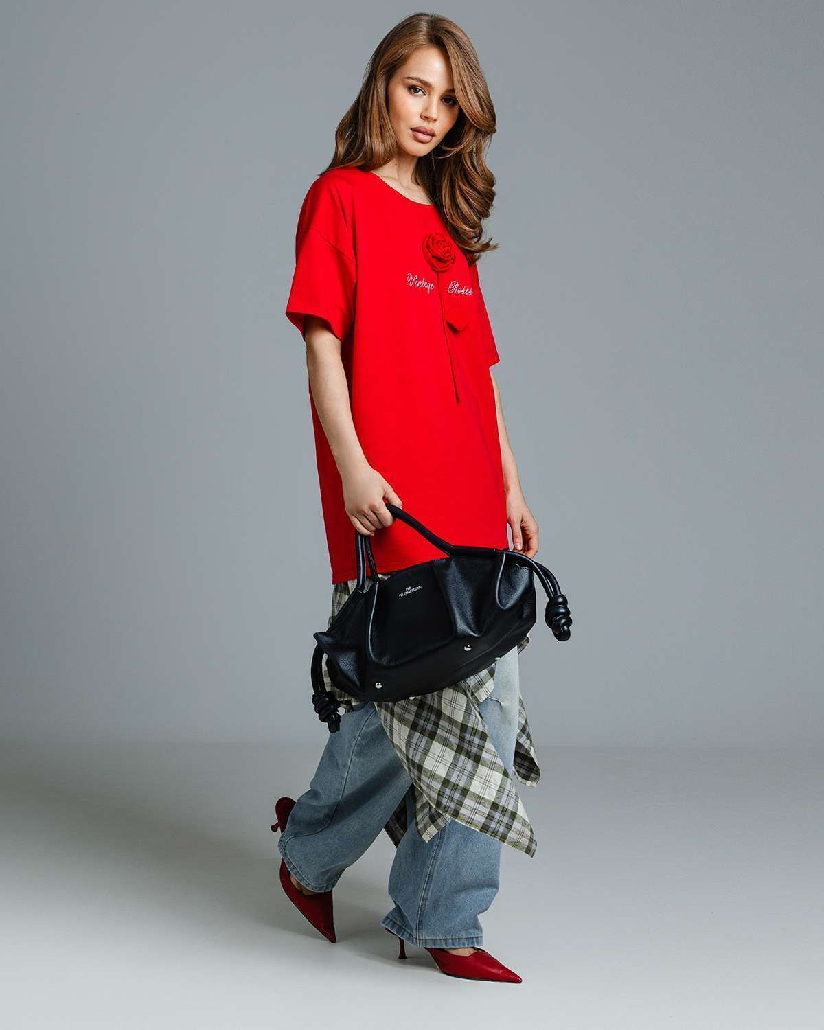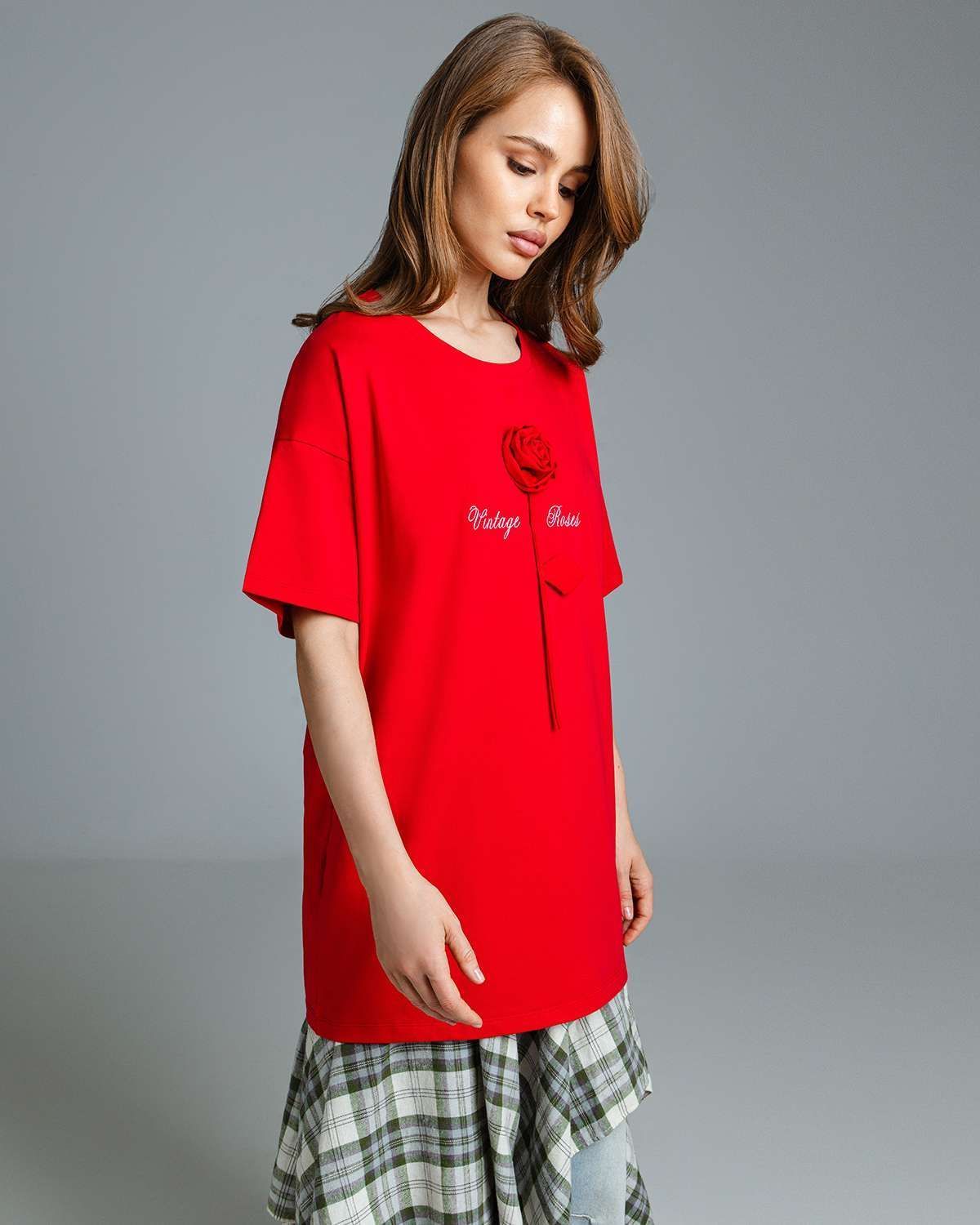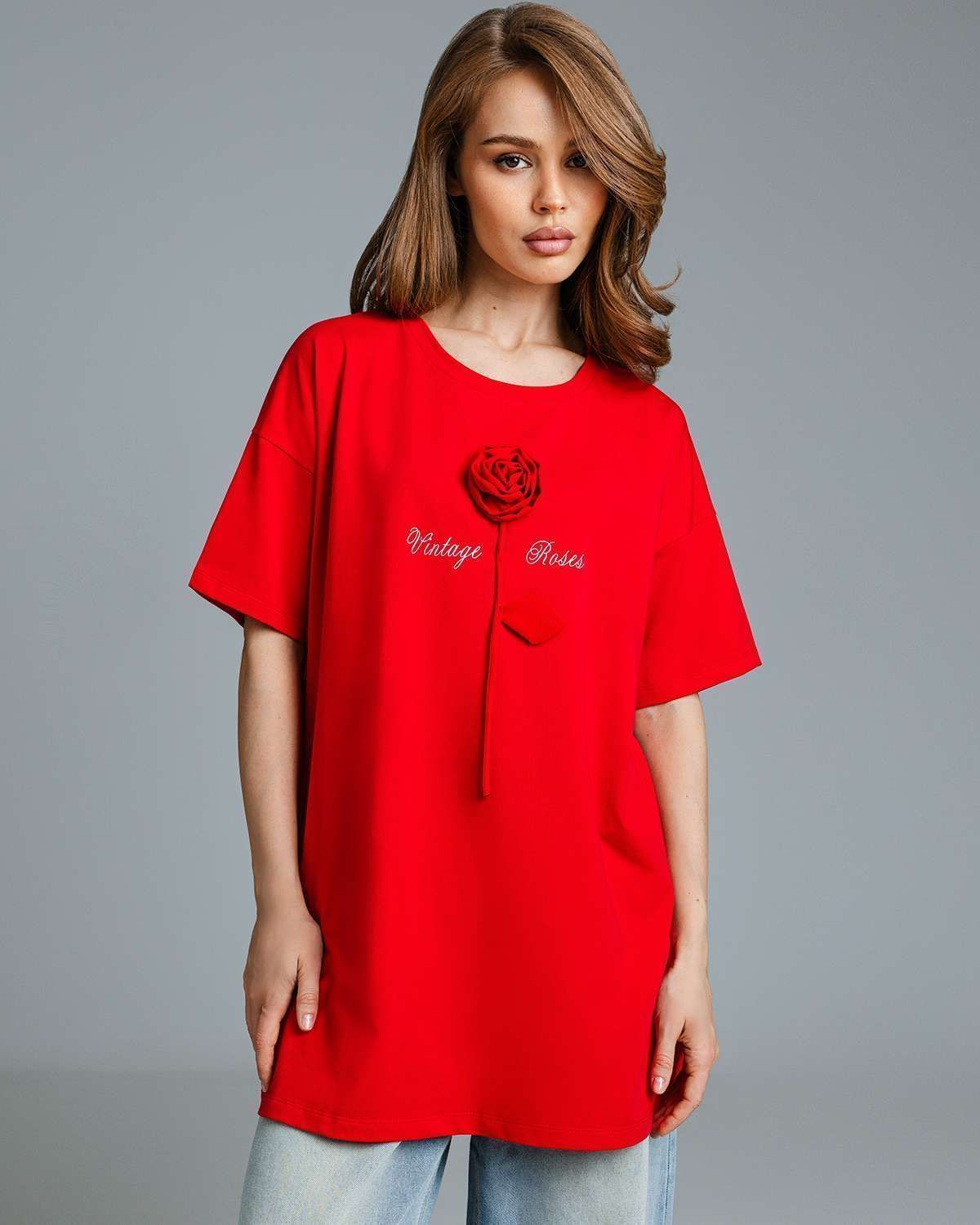 Футболка оверсайз с объёмным цветком FDA001