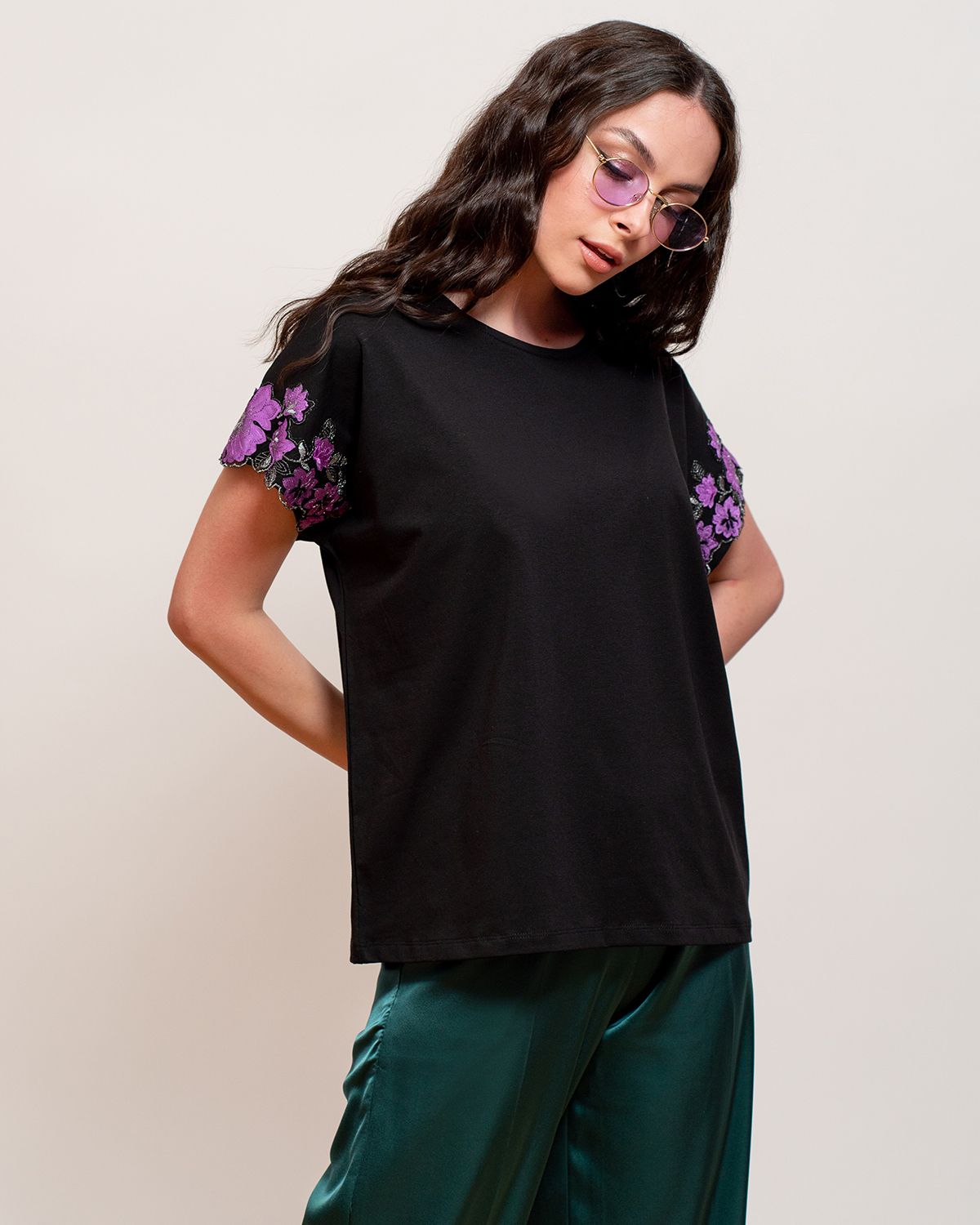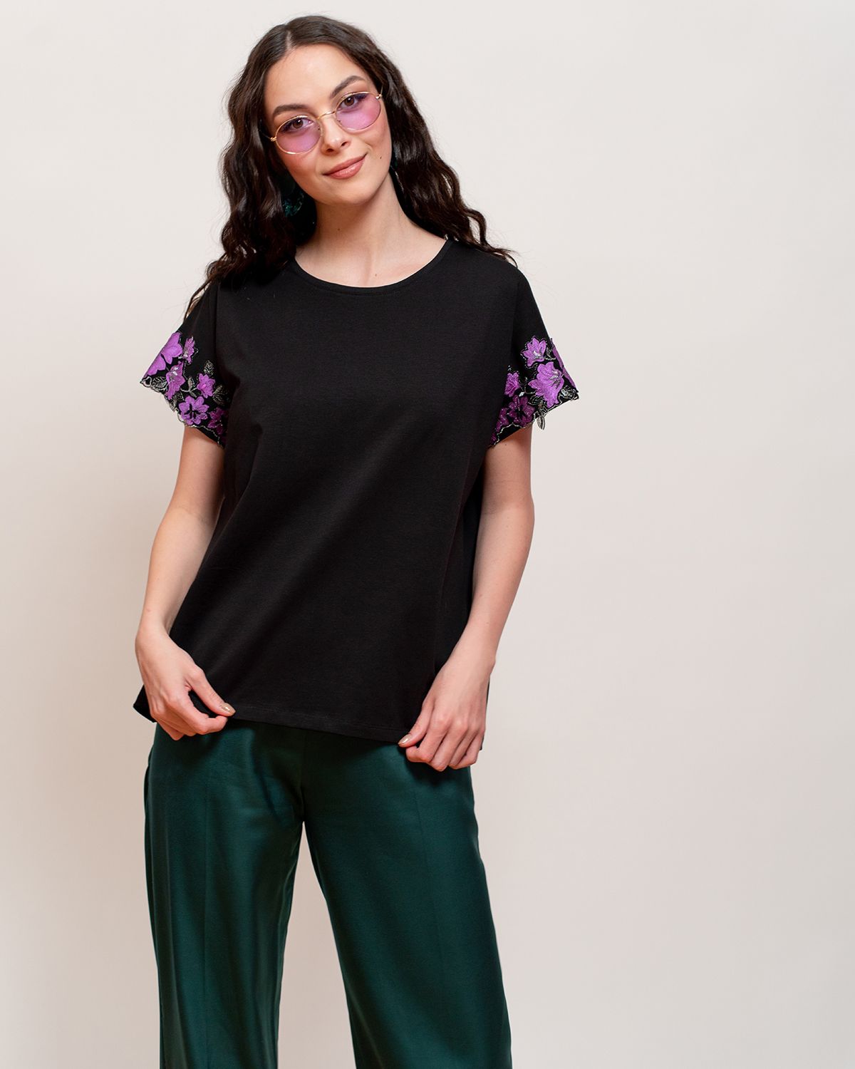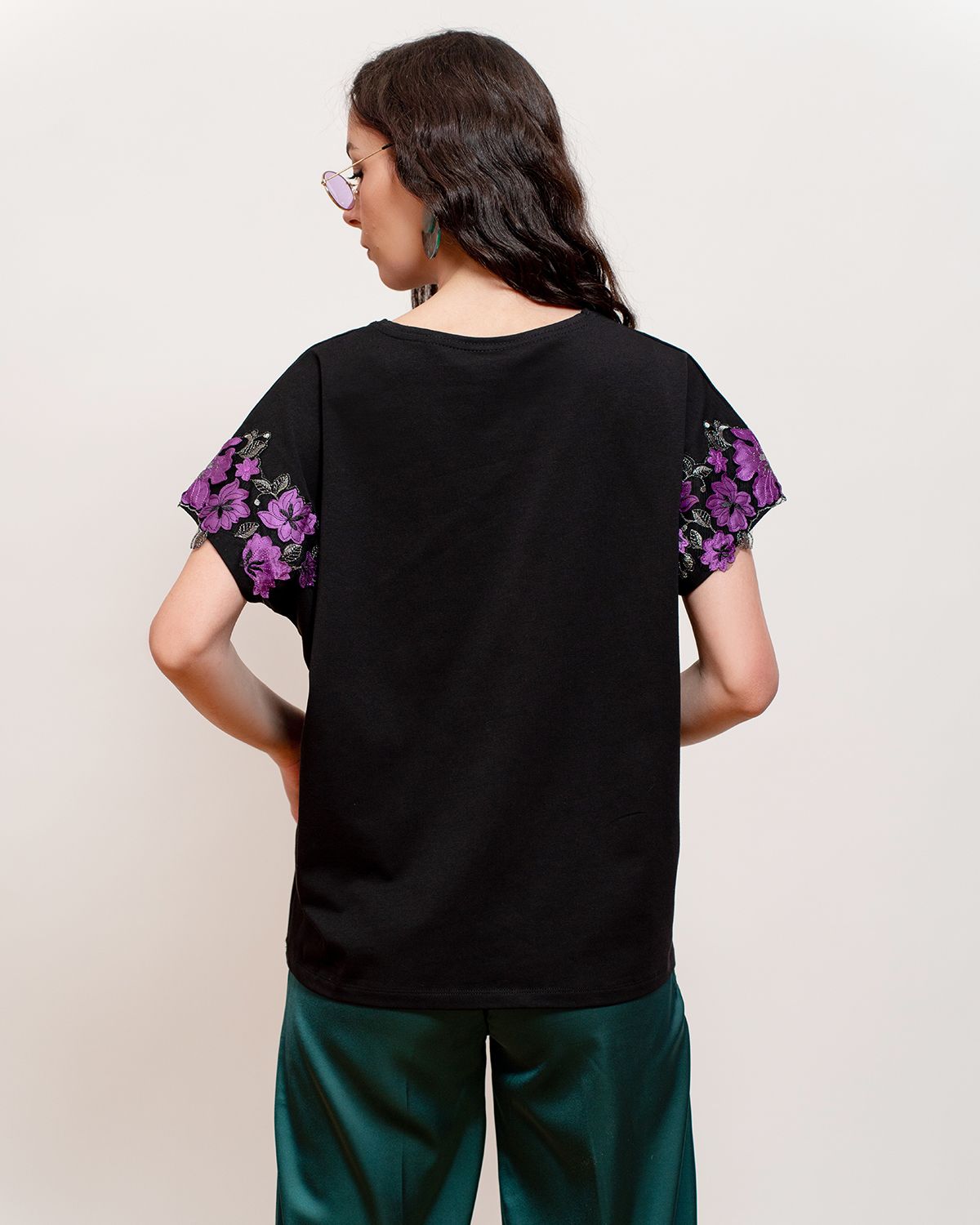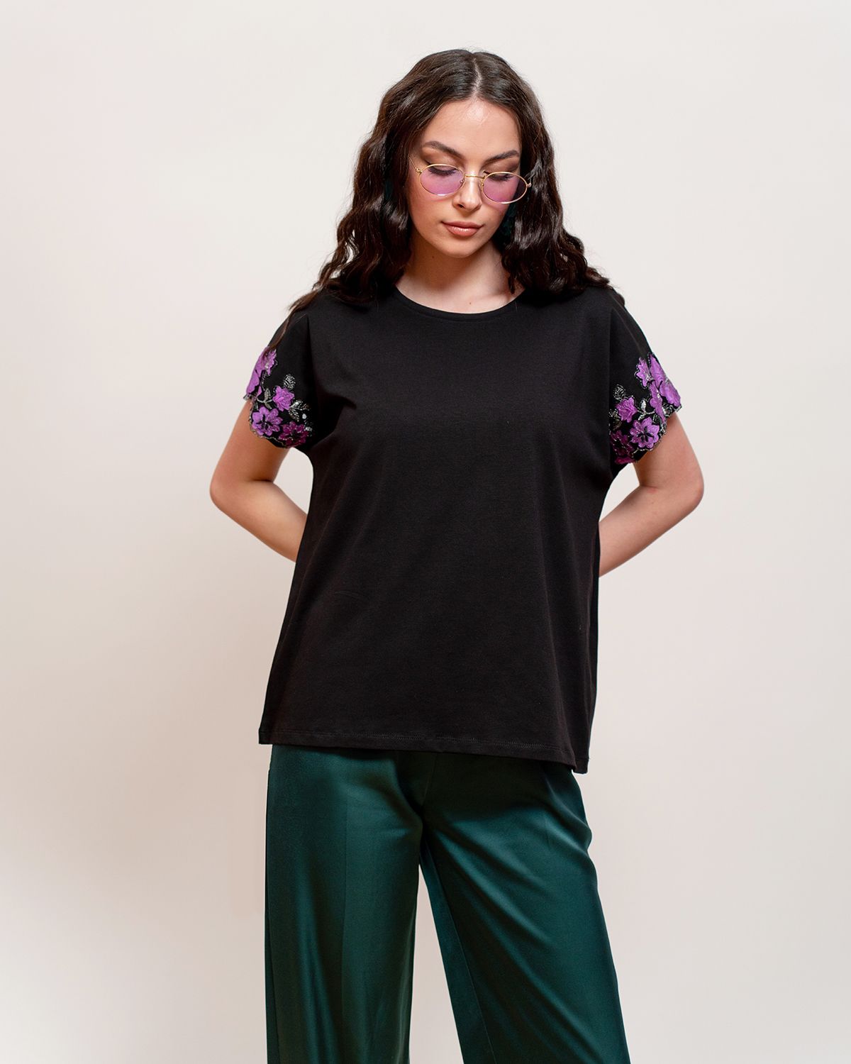 Футболка для женщин, умеющих сочетать в себе разные стихии. Спортивный стиль — это свобода движения, уверенность в себе и заявка на минимализм. Все эти черты подчёркиваются свободным кроем оверсайз и дополняются удлиненный силуэтом. Декор на рукавах — это игривость, женственность и кокетство. Он добавляет изделию текстуру, объём и изюминку. А всё вместе — это дерзкая женская футболка, которая бросает вызов обыденности. Такие носят смелые и стильные женщины.