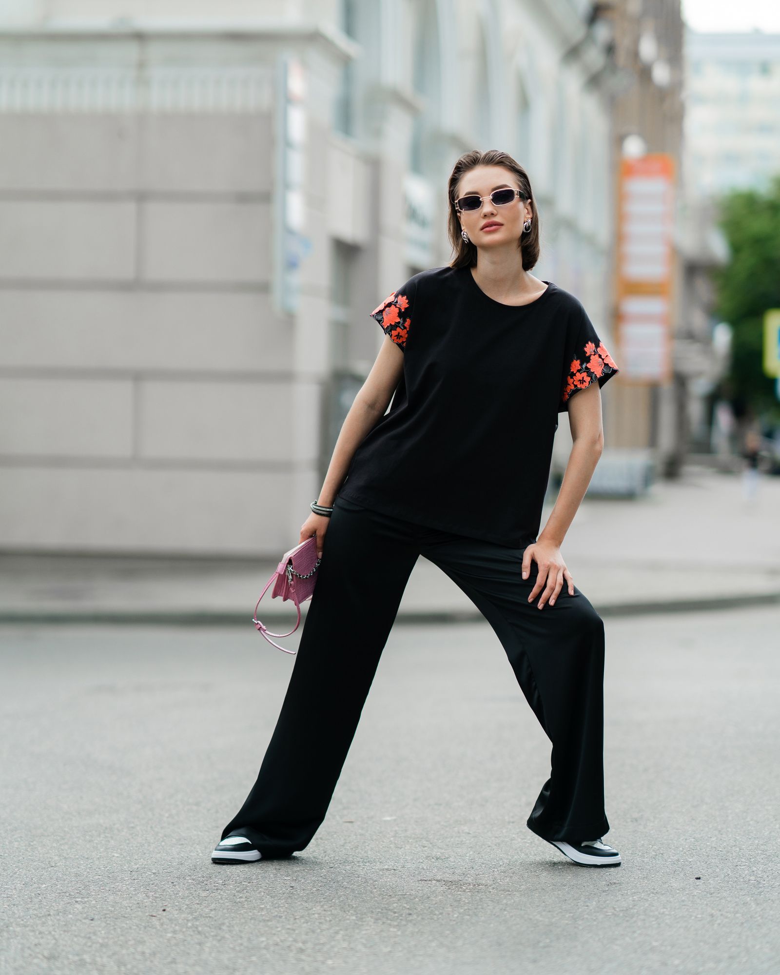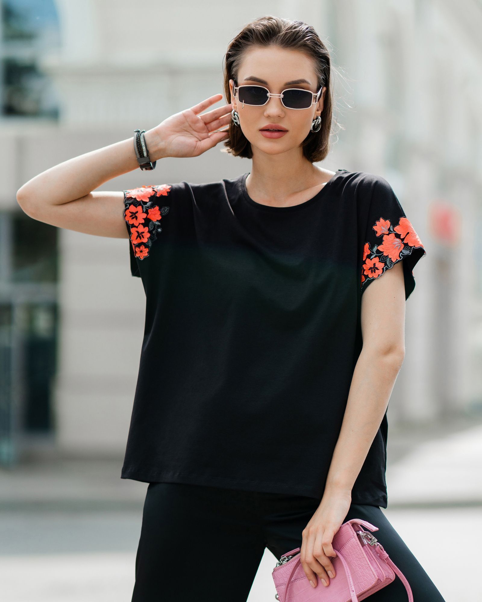 Футболка для женщин, умеющих сочетать в себе разные стихии. Спортивный стиль — это свобода движения, уверенность в себе и заявка на минимализм. Все эти черты подчёркиваются свободным кроем оверсайз и дополняются удлиненный силуэтом. Декор на рукавах — это игривость, женственность и кокетство. Он добавляет изделию текстуру, объём и изюминку. А всё вместе — это дерзкая женская футболка, которая бросает вызов обыденности. Такие носят смелые и стильные женщины.