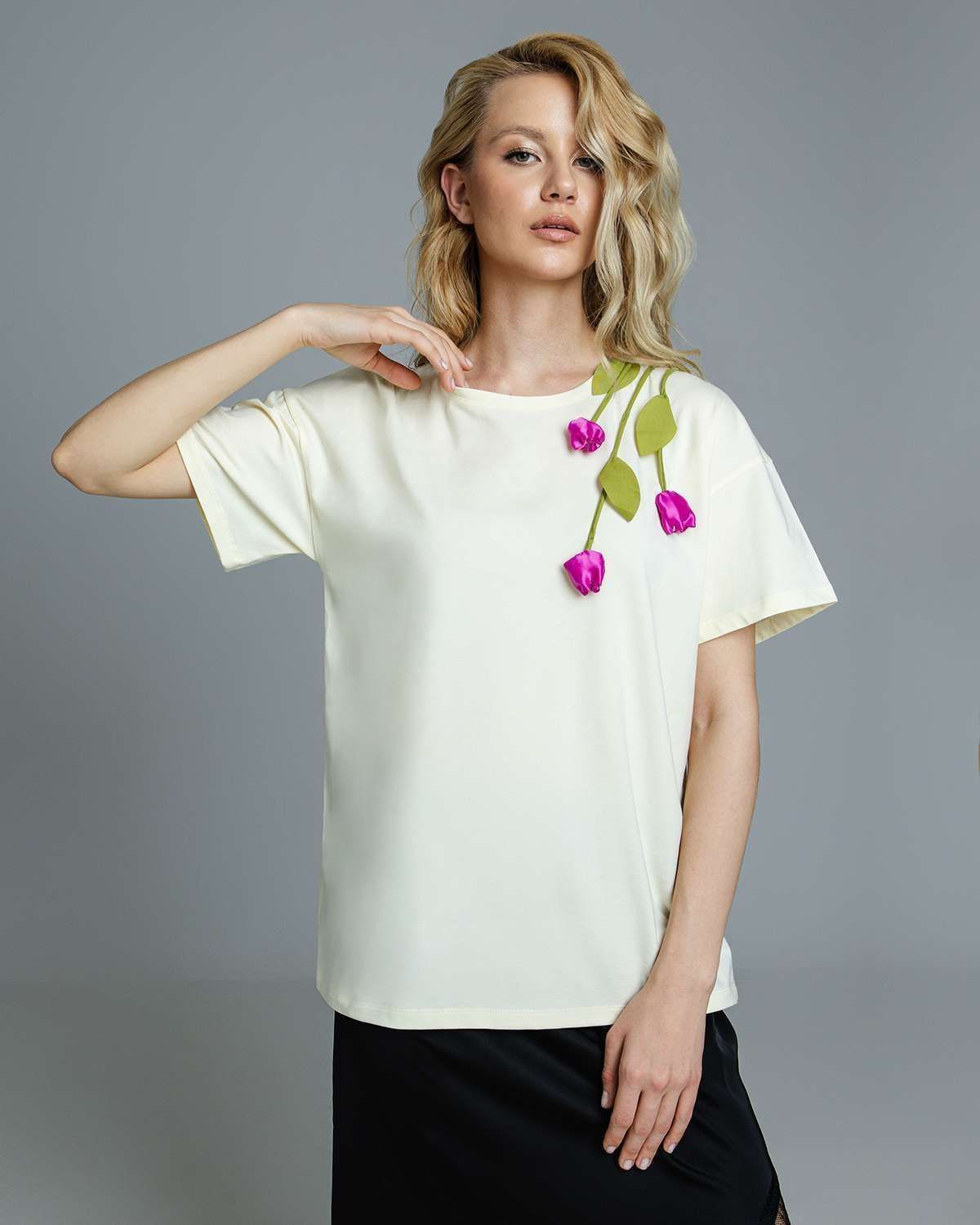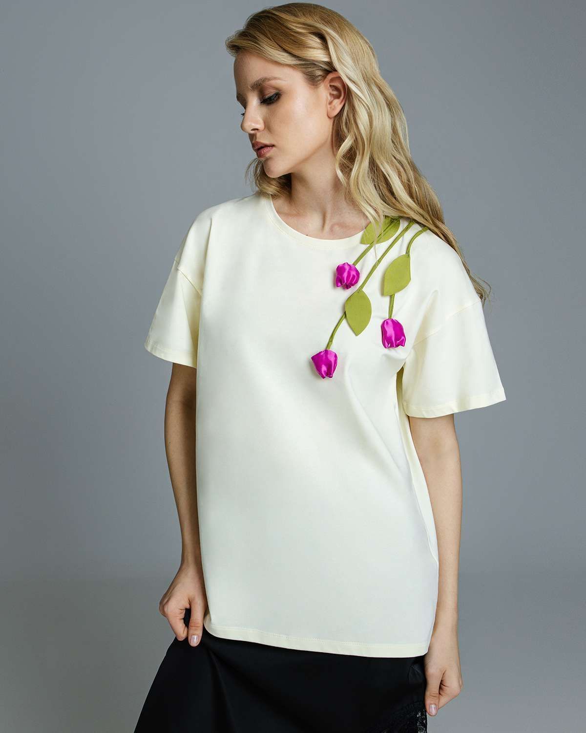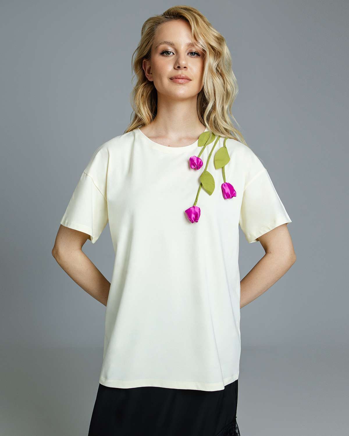 Футболка с объёмными цветами FAS002