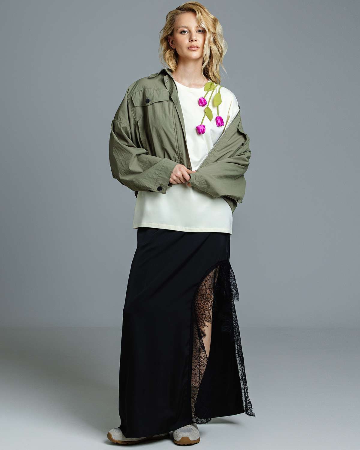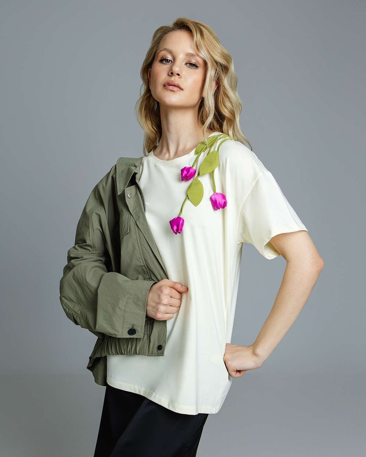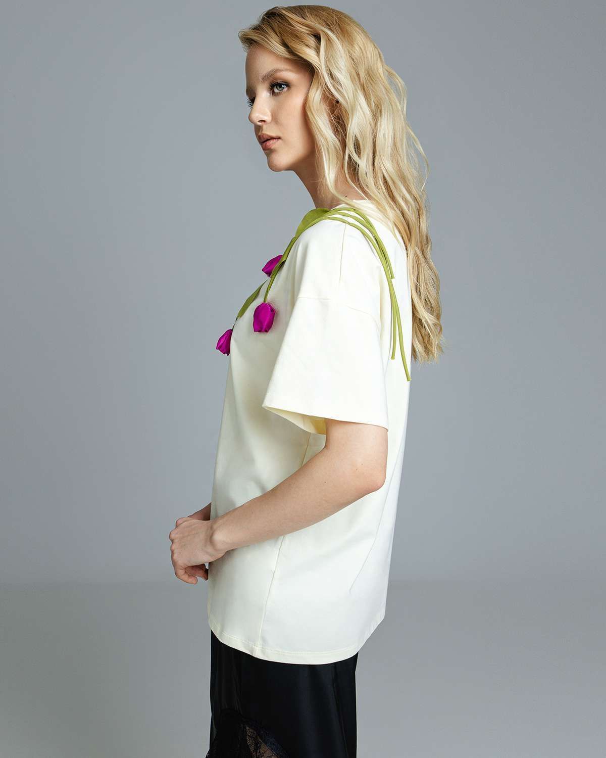 Футболка с объёмными цветами FAS002