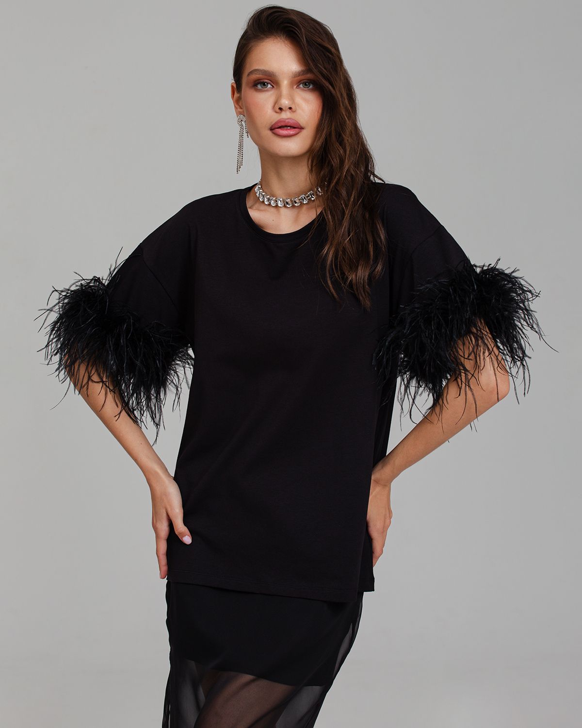 Футболка с перьями — экстравагантная находка для тех, кто следит за fashion индустрией. Роскошный тренд с мировых подиумов и из последних лукбуков модных брендов станет изюминкой вашего гардероба.