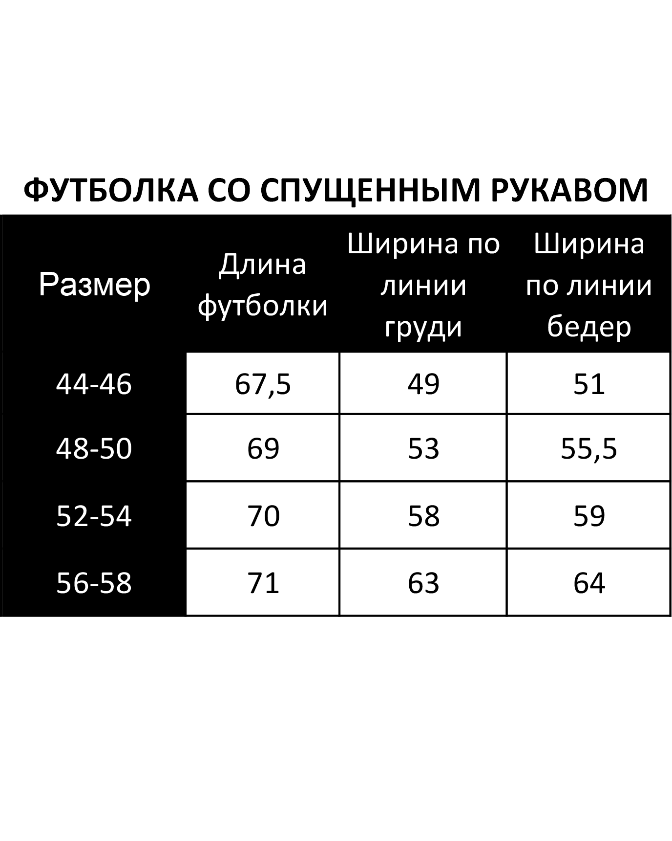 Выбирая подходящий размер, ориентируйтесь на таблицу в карусели.