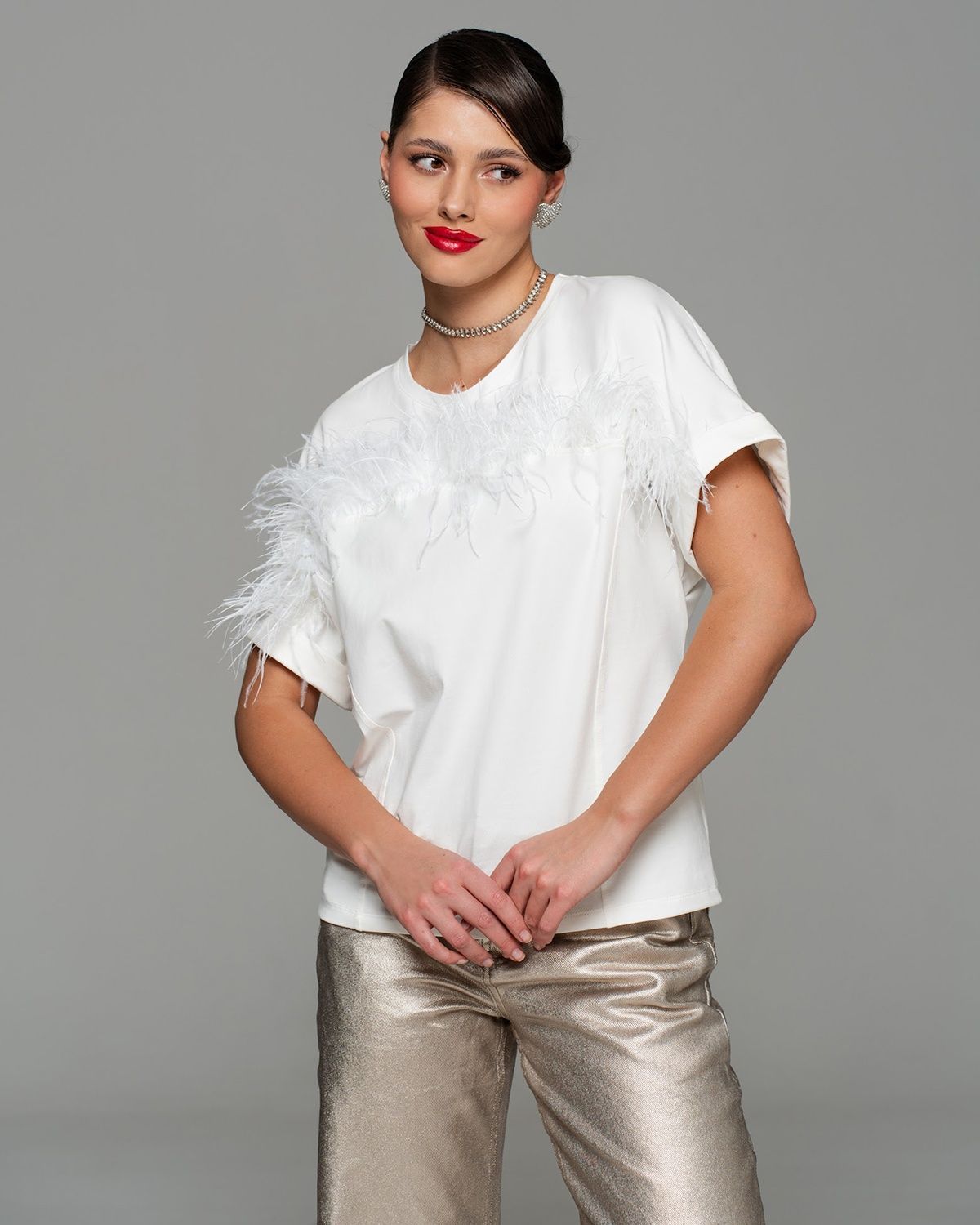 Футболка с перьями страуса FSP005