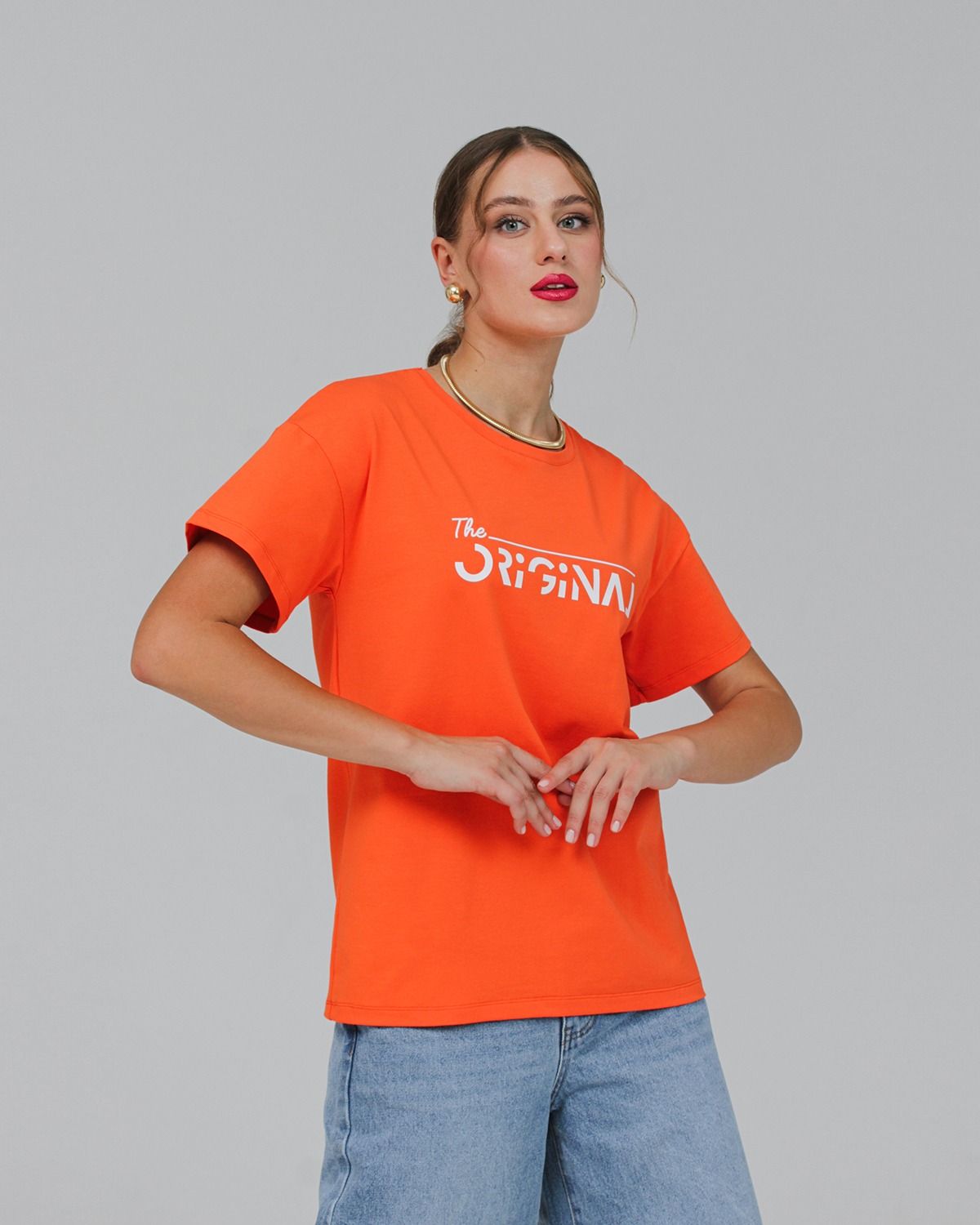 Футболка женская актуального кроя — свободная посадка и широкий рукав, которые подчёркивают современность изделия. Её можно носить в заправленном виде и навыпуск.