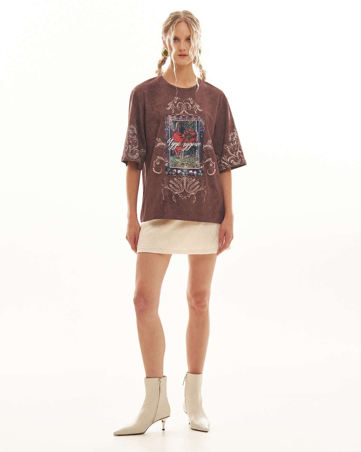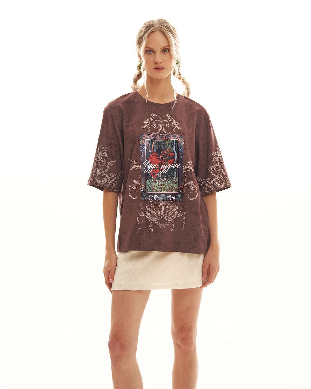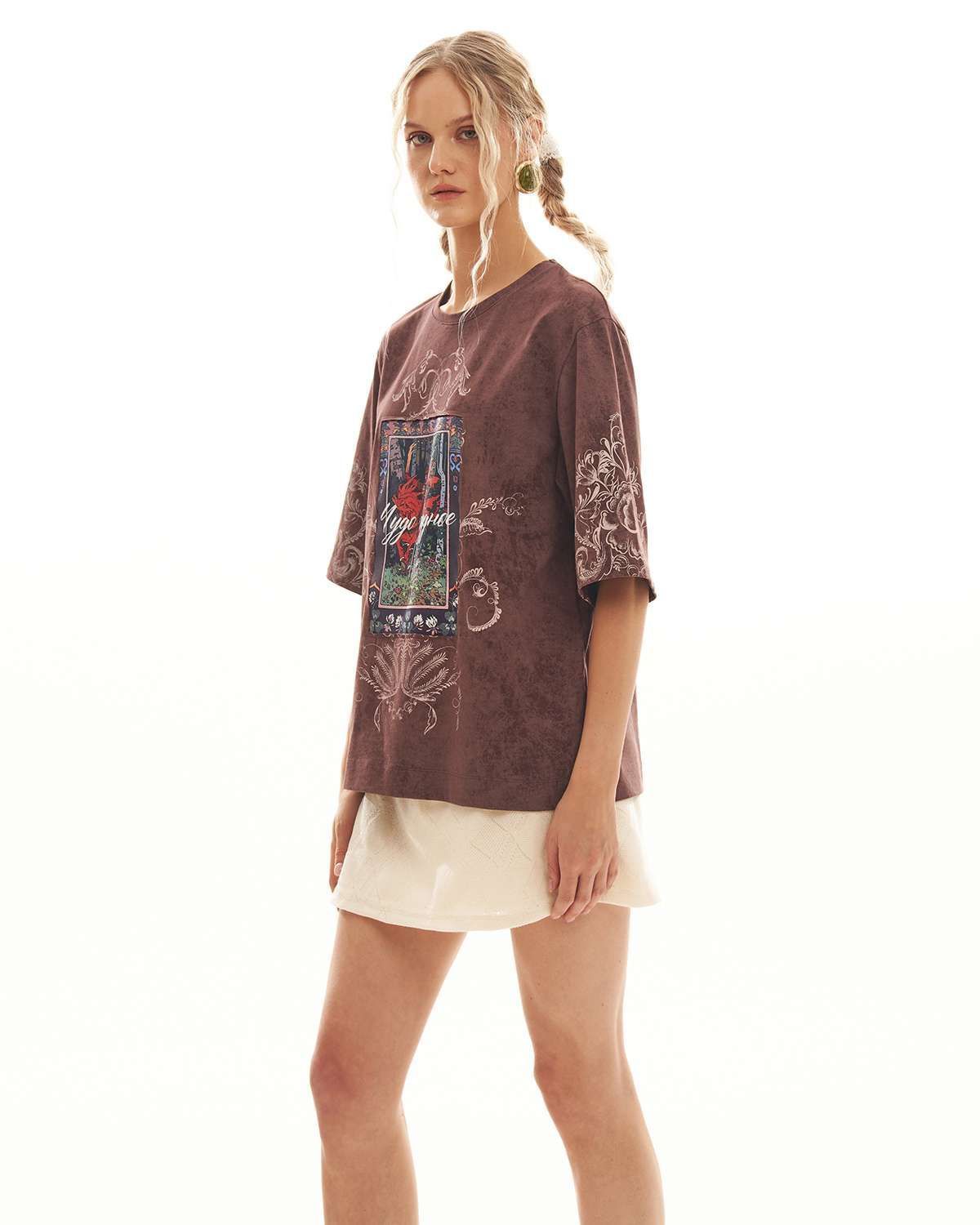 Футболка выполнена из высококачественной хлопковой кулирки "Винтаж". Благодаря свободному крою оверсайз и широким рукавам, футболка сидит стильно и удобно, позволяя создать актуальный образ в духе одежды из Pinterest.