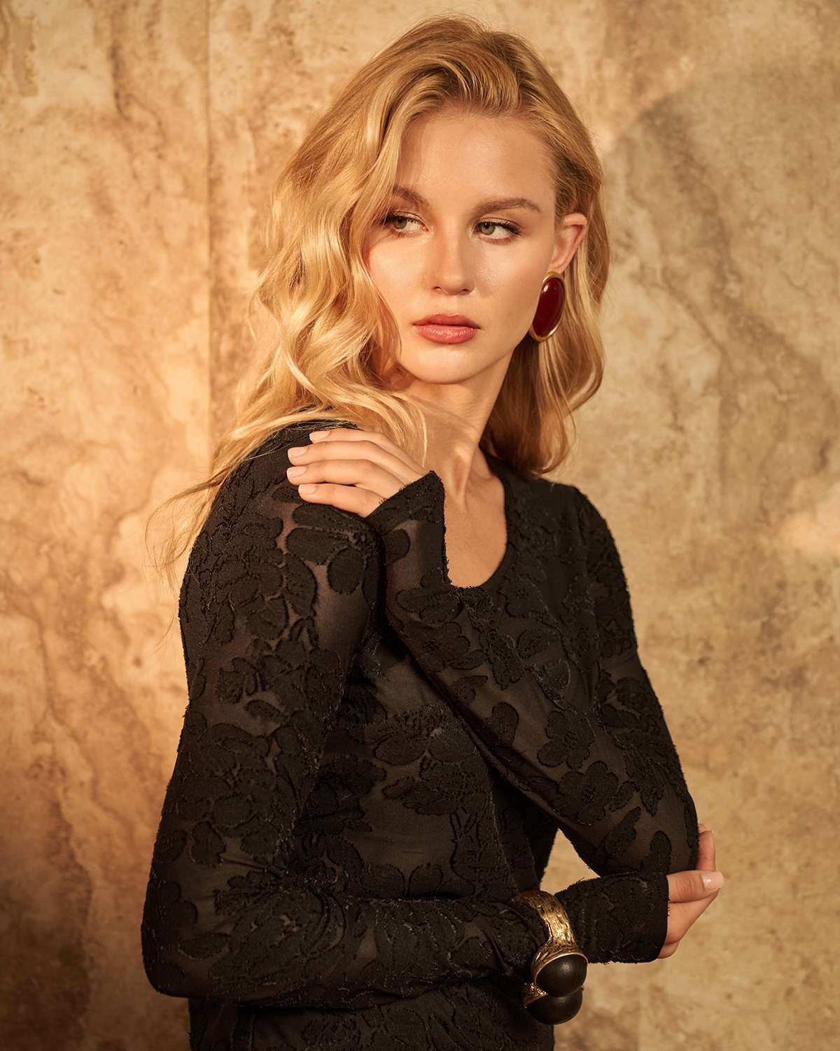 Лонгслив с круглым вырезом выполнен из качественного текстурного трикотажа с выразительной поверхностью благодаря специальной обработке — вытравке узора. Этот метод придает ткани элегантный рельеф и визуальное разнообразие. Круглый глубокий вырез подчеркивает линию шеи и ключицы, создавая утонченный силуэт. Длинные рукава идеально облегают руки, подчеркивая женственность образа. Лаконичный дизайн идеально подойдет для праздничных мероприятий и романтических свиданий.