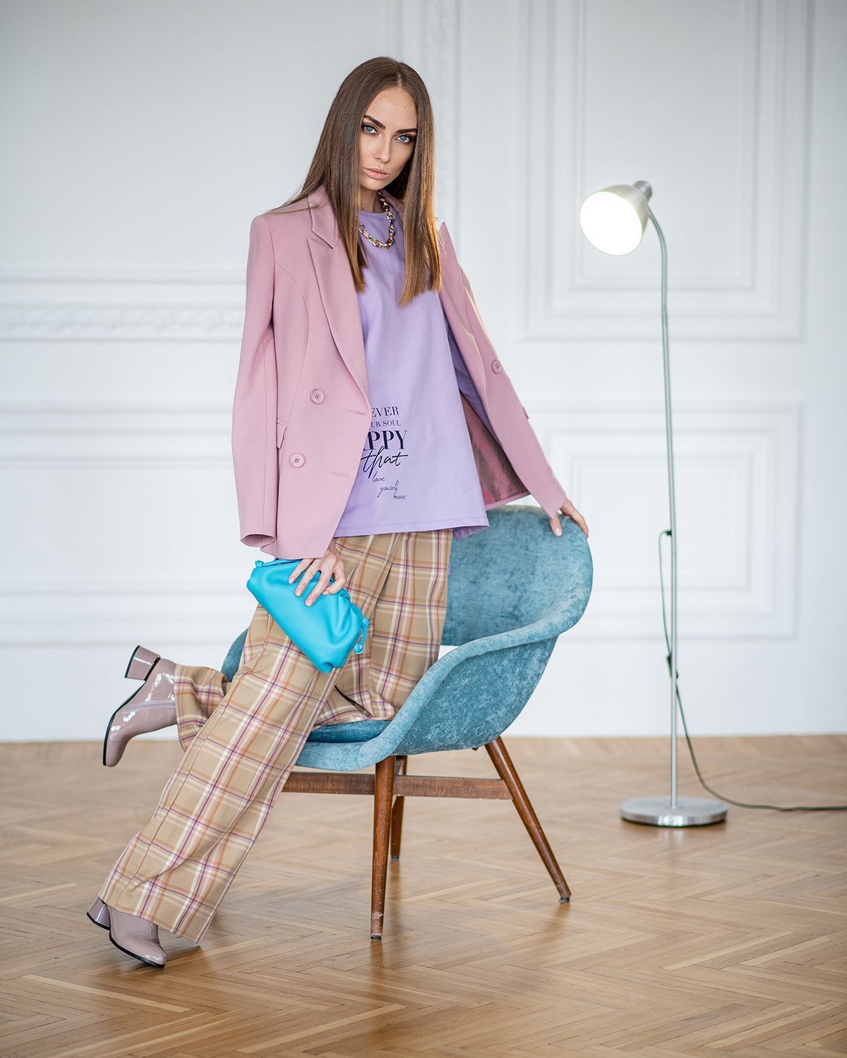 Выбирая подходящее изделие, ориентируйтесь на таблицу с параметрами в карусели. Если хотите создать более расслабленный образ, берите на размер или два больше. На модели женская кофта 46 размера.