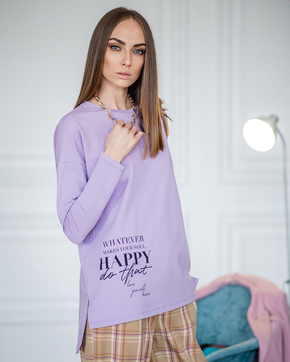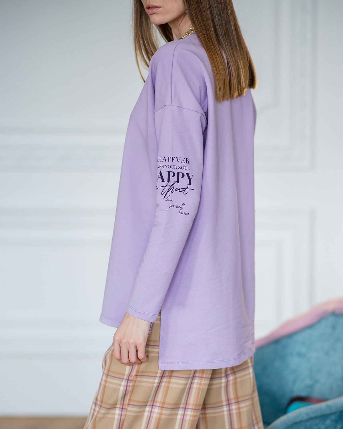 Лонгслив женский из хлопка - для тех, кто ищет нескучную базу с характером. Добавление стильных деталей в минималистичное изделие насыщает его индивидуальностью. Свободная посадка, надписи внизу и на рукаве, универсальная спущенная линия плеча, ассиметричный низ - спинка длиннее, небольшие разрезы по бокам - это как раз те нюансы, которые делают лонгслив с рукавами изделием со вкусом.