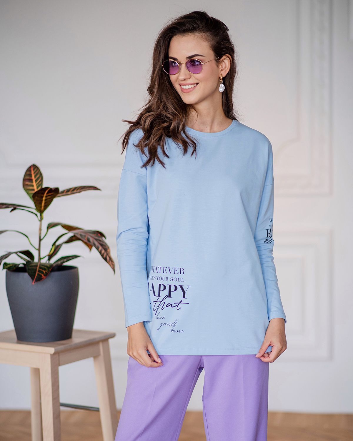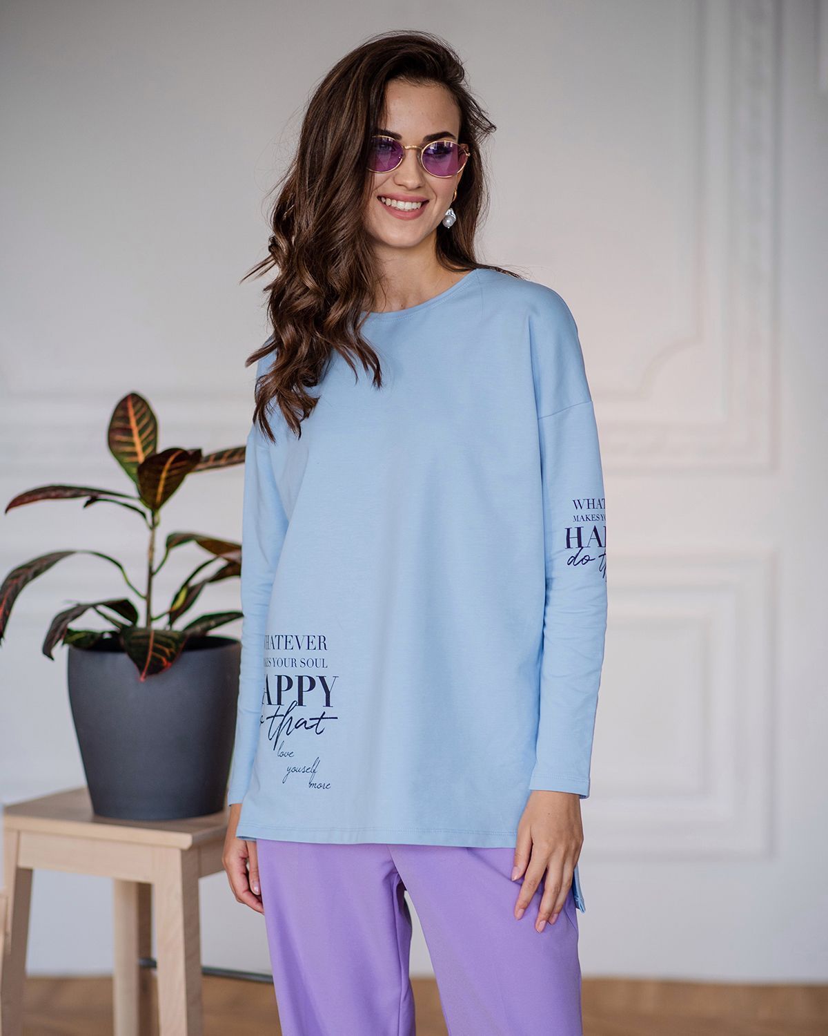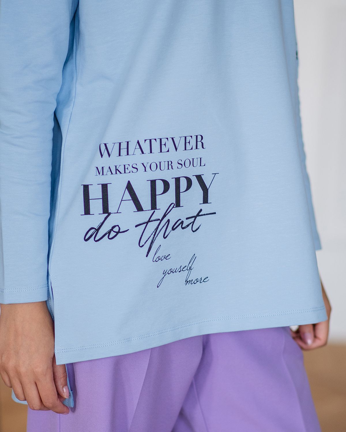 Лонгслив женский из хлопка - для тех, кто ищет нескучную базу с характером. Добавление стильных деталей в минималистичное изделие насыщает его индивидуальностью. Свободная посадка, надписи внизу и на рукаве, универсальная спущенная линия плеча, ассиметричный низ - спинка длиннее, небольшие разрезы по бокам - это как раз те нюансы, которые делают лонгслив с рукавами изделием со вкусом.