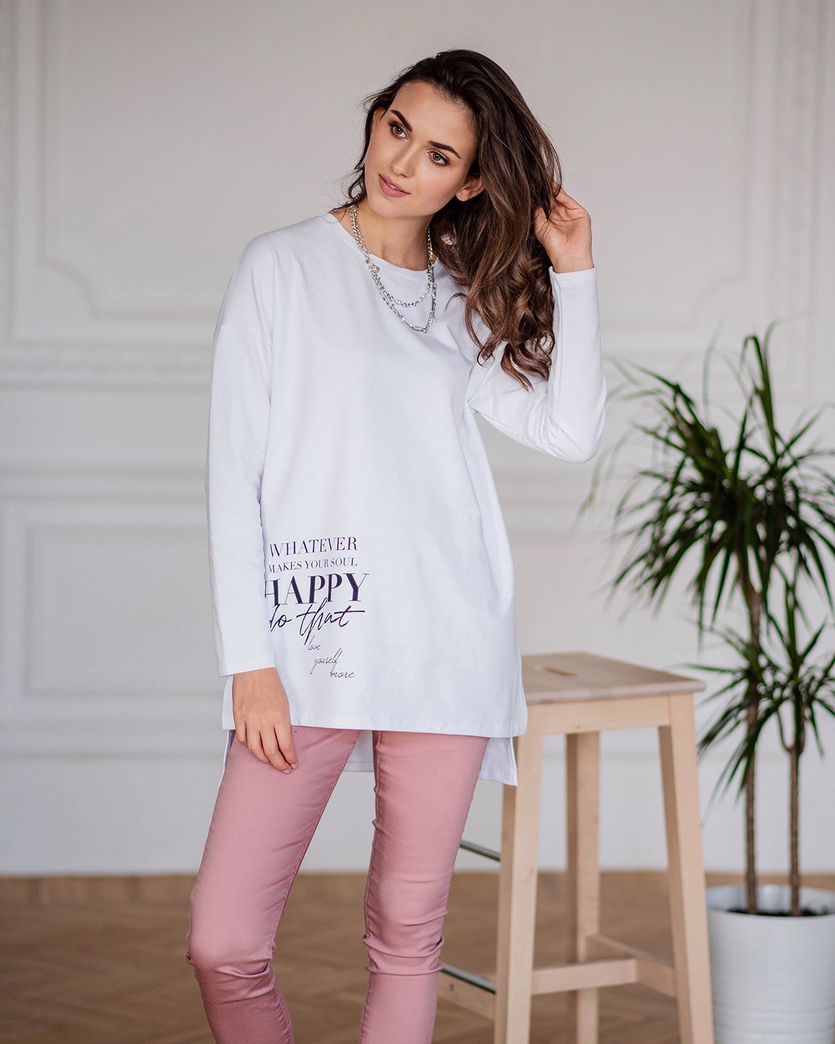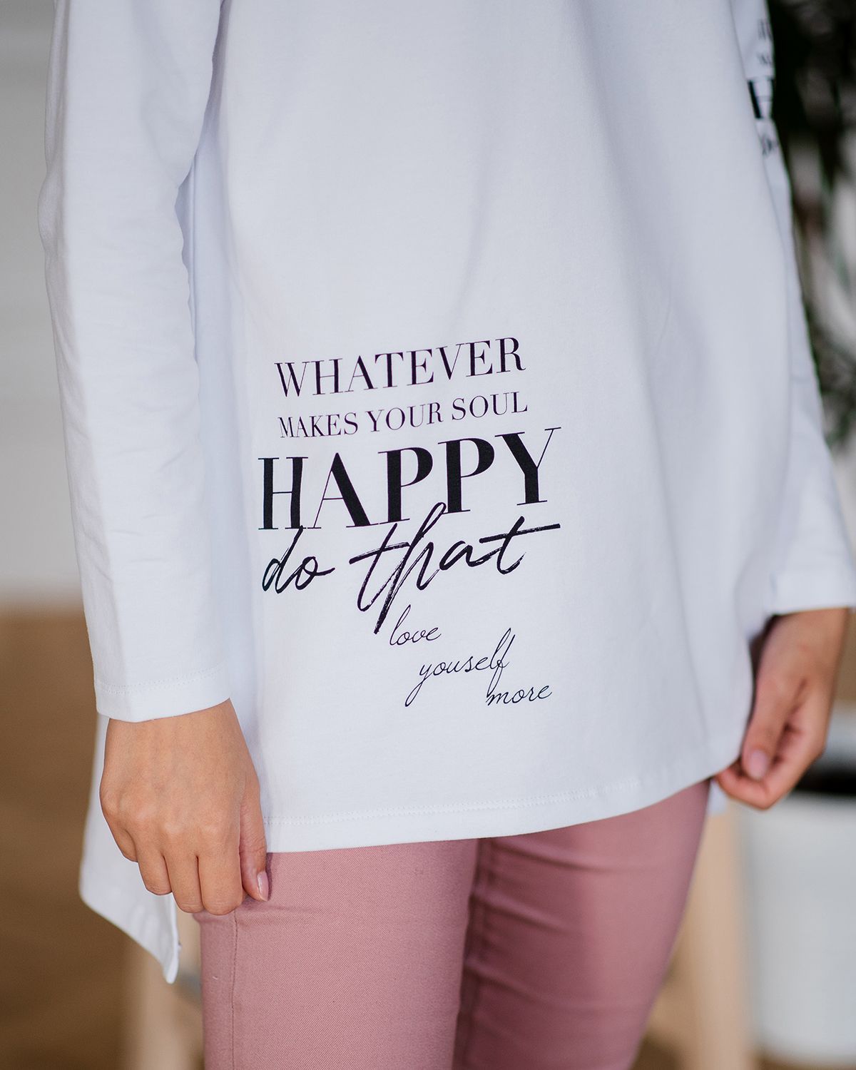 Лонгслив женский из хлопка - для тех, кто ищет нескучную базу с характером. Добавление стильных деталей в минималистичное изделие насыщает его индивидуальностью. Свободная посадка, надписи внизу и на рукаве, универсальная спущенная линия плеча, ассиметричный низ - спинка длиннее, небольшие разрезы по бокам - это как раз те нюансы, которые делают лонгслив с рукавами изделием со вкусом.