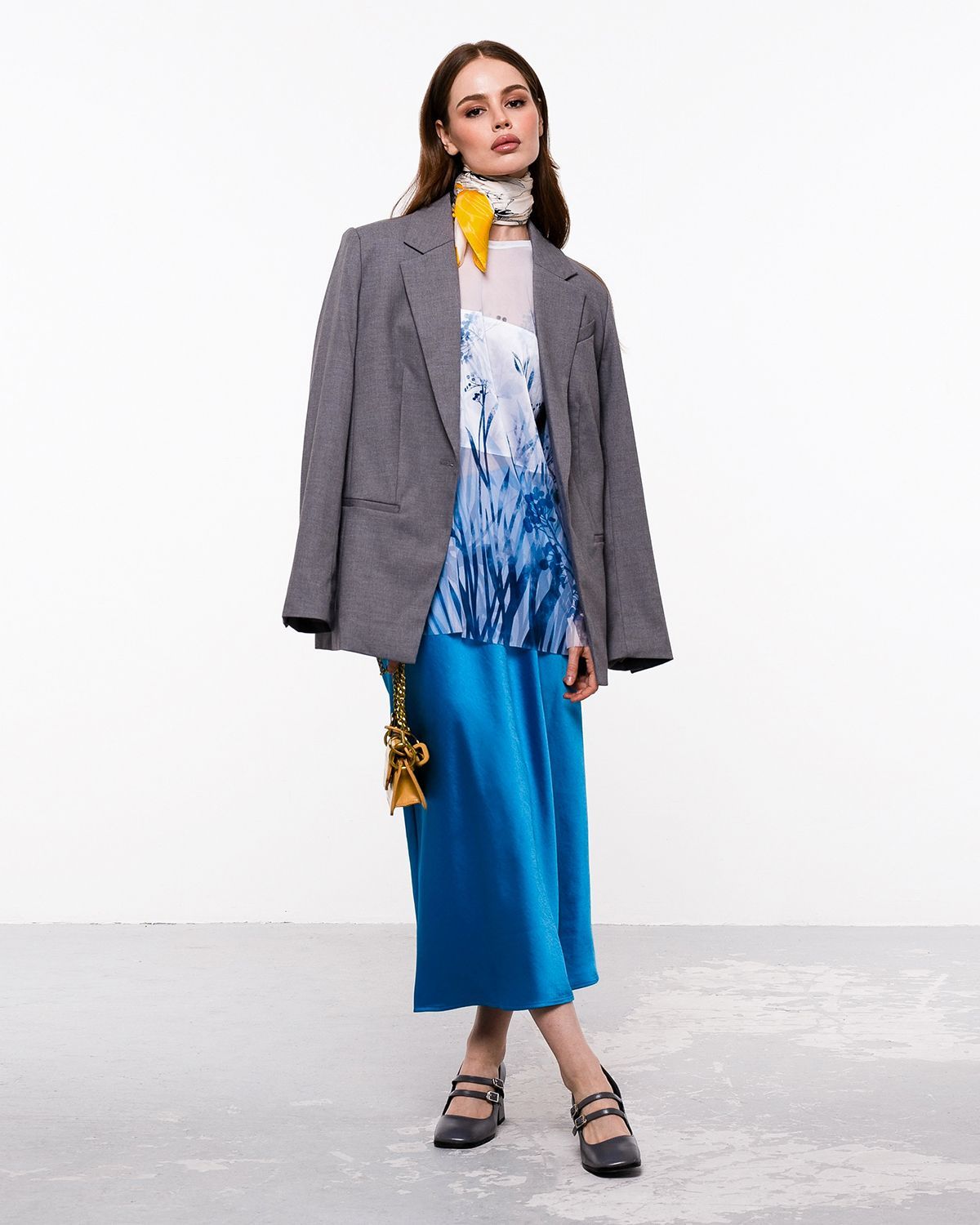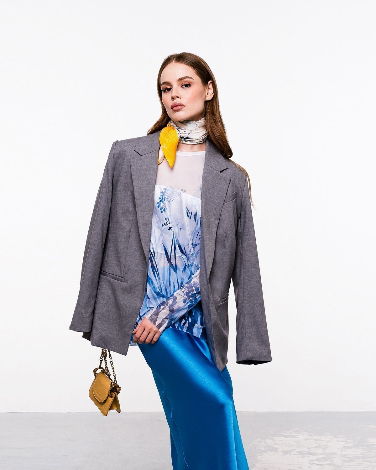 Сеточка с принтом придаёт ему уникальный и изысканный вид, а тонкая кофточка нежно струится по телу, создавая кокетливый силуэт. Блузка с атласной вставкой добавляет нотку элегантности и шиковости, делая этот лонгслив особенно привлекательным для вечернего выхода.