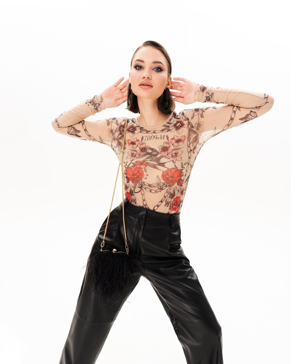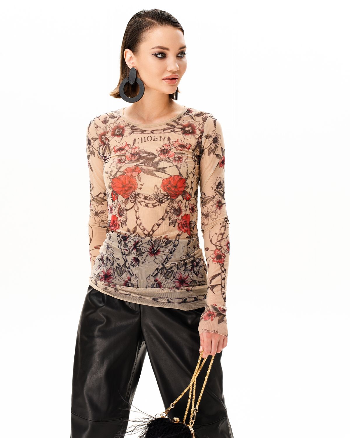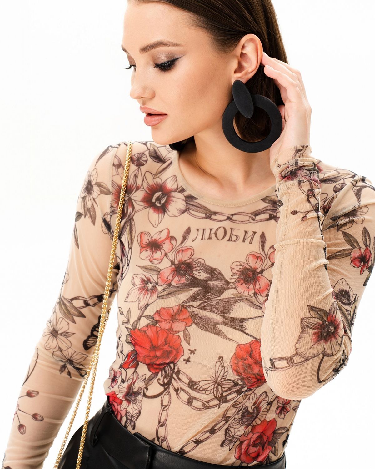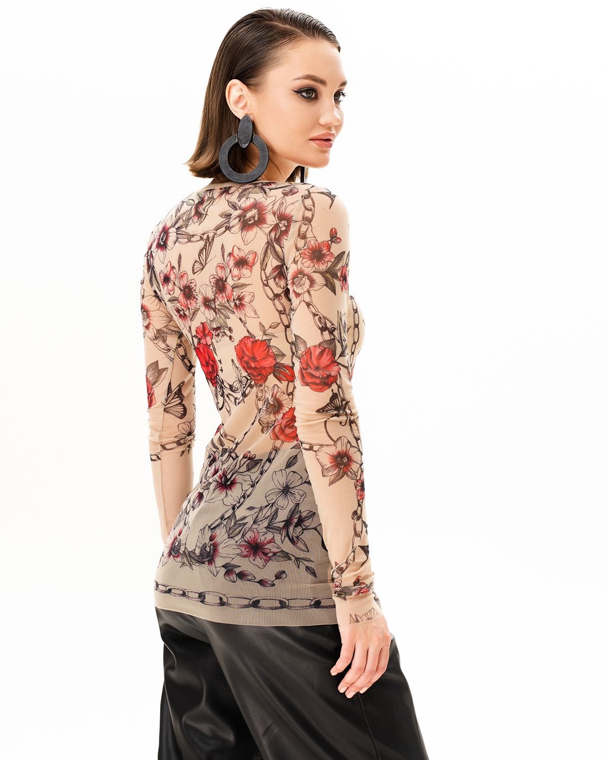 Лонгслив женский из сетки с принтом. Его можно надевать под платье, жакет, кардиган, жилет или даже футболку.