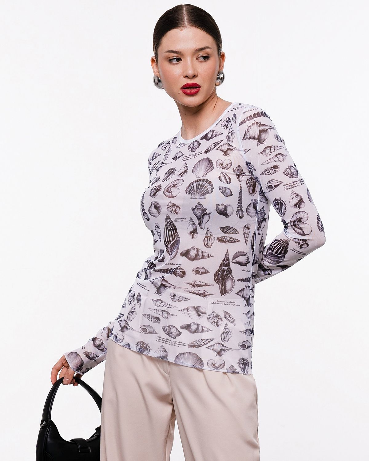 Лонгслив женский из сетки с принтом. Его можно надевать под платье, жакет, кардиган, жилет или даже футболку.