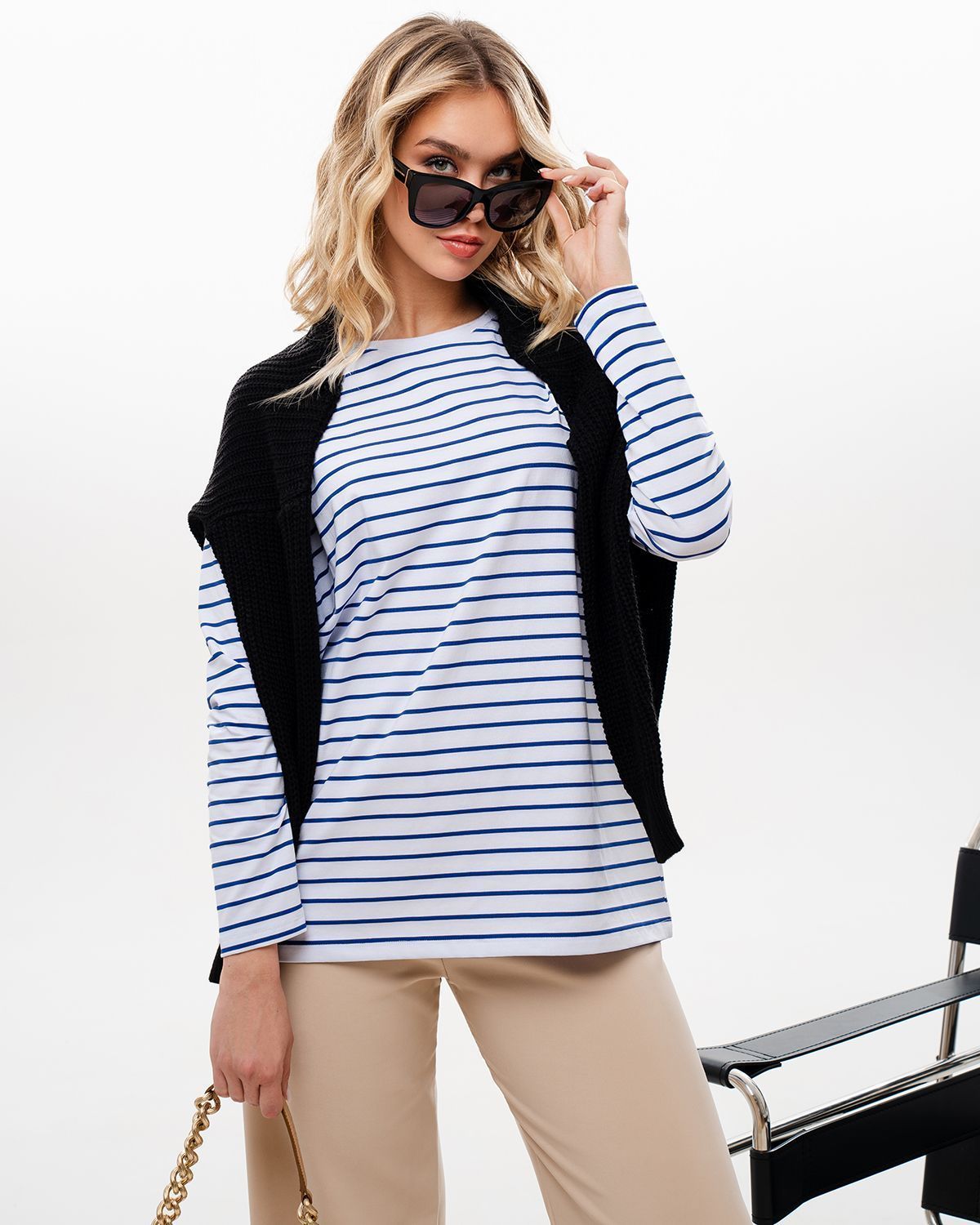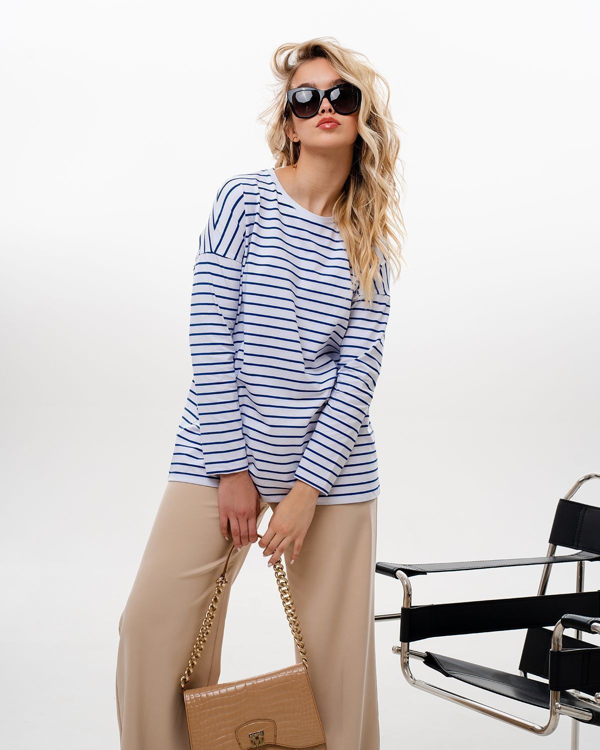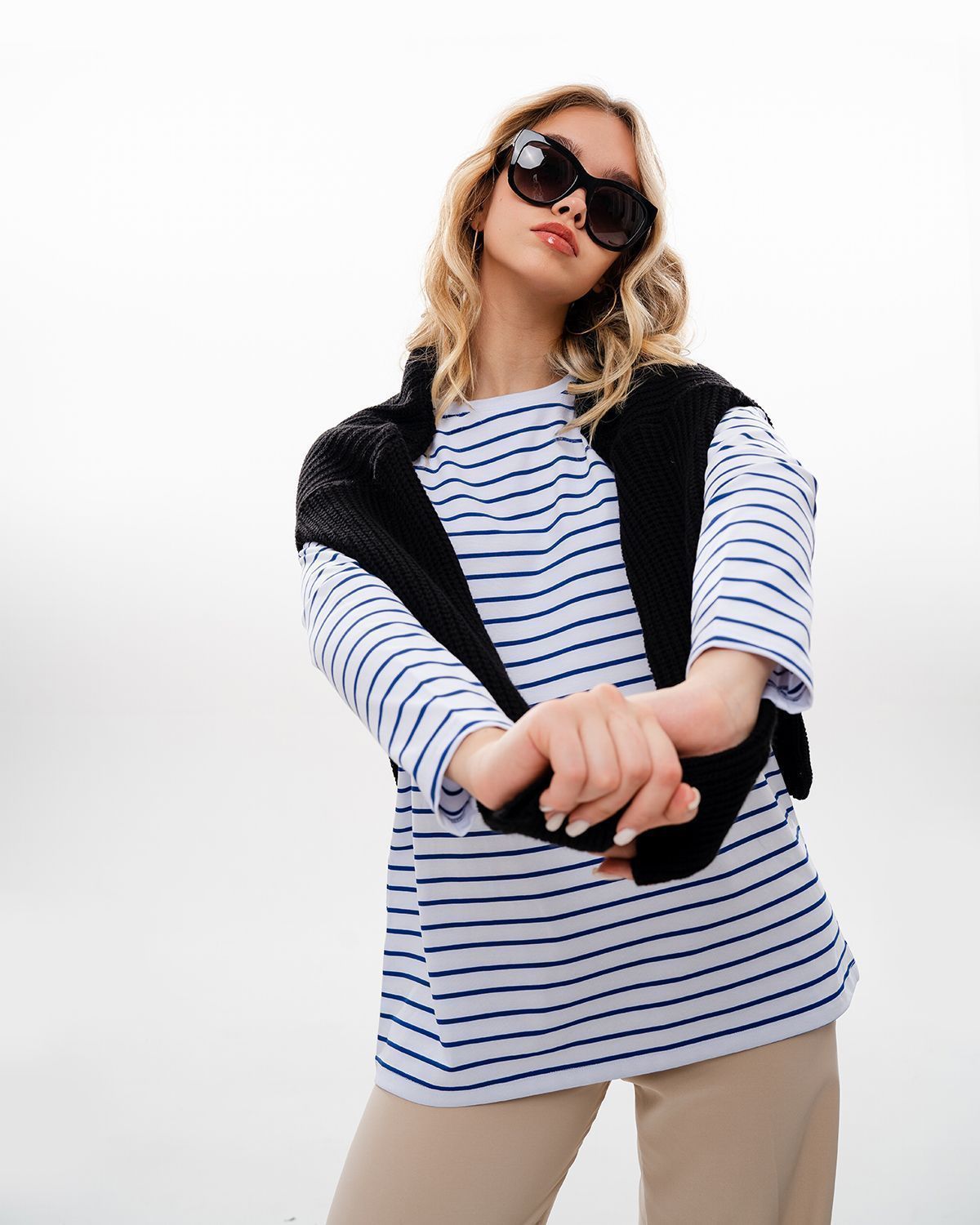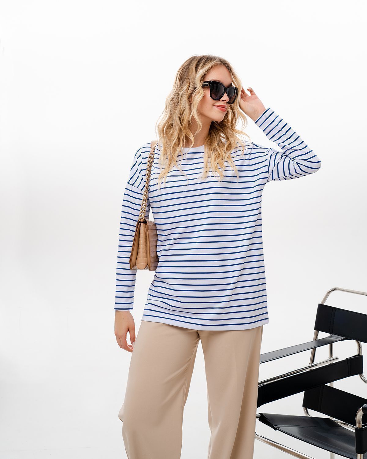 Базовый лонгслив в полоску — легкая модель для создания расслабленных спокойных образов. Сделан он из приятной для тела хлопковой кулирки. Это ткань, которая дышит, гипоаллергенна и не вызывает раздражений. Мягкая и эластичная кулирка хорошо переносит стирки и служит долго. Поэтому можете быть уверены, что изделие с вами на несколько сезонов. Поставщиком ткани для нас является Турция.