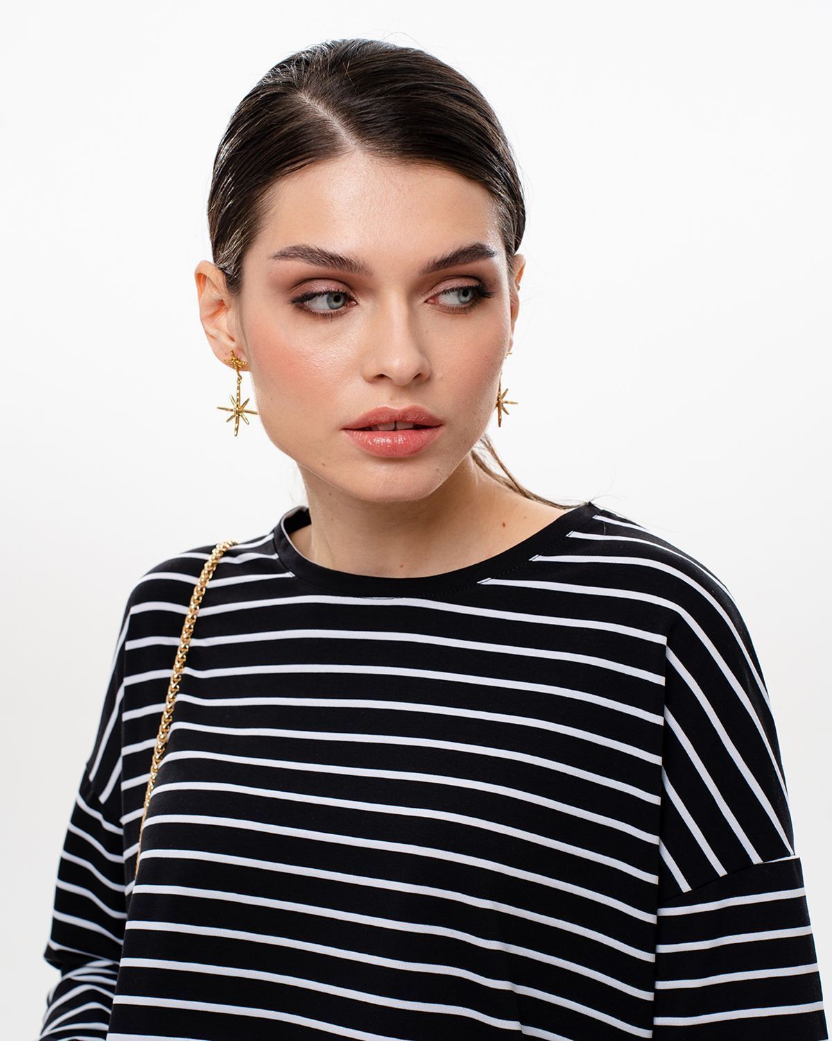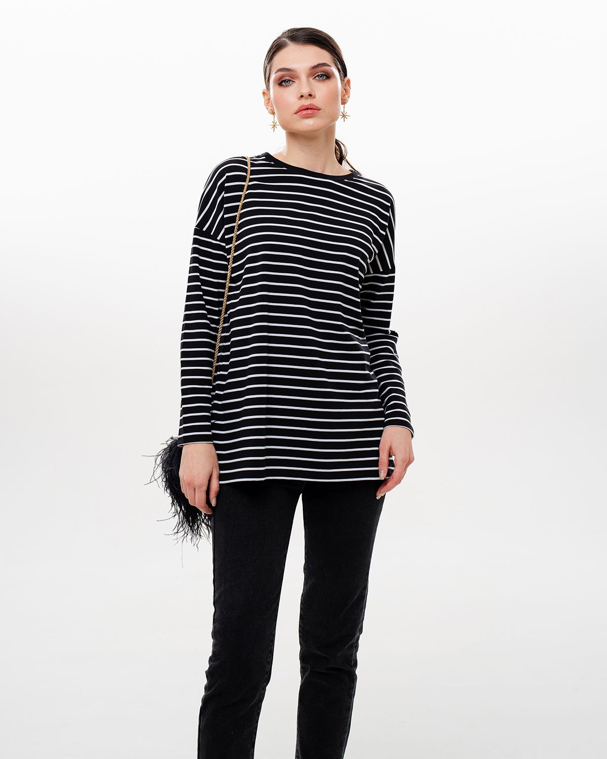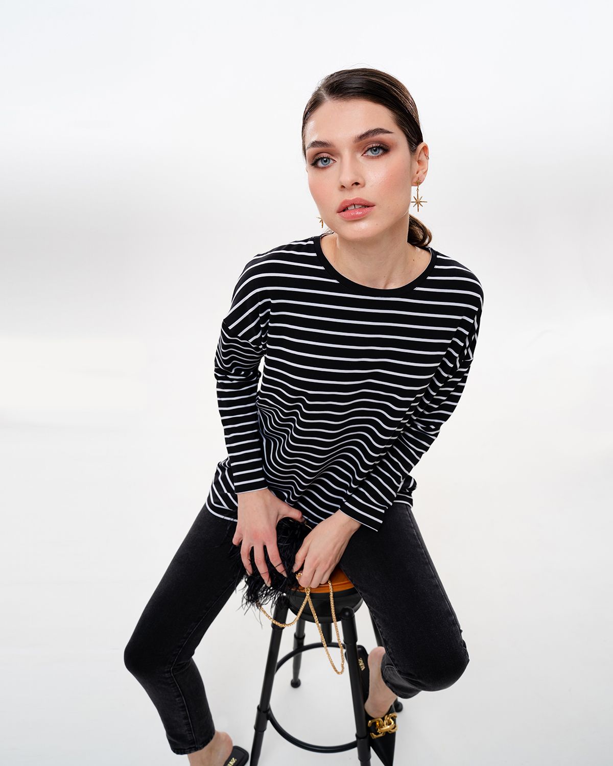 Базовый лонгслив в полоску — легкая модель для создания расслабленных спокойных образов. Сделан он из приятной для тела хлопковой кулирки. Это ткань, которая дышит, гипоаллергенна и не вызывает раздражений. Мягкая и эластичная кулирка хорошо переносит стирки и служит долго. Поэтому можете быть уверены, что изделие с вами на несколько сезонов. Поставщиком ткани для нас является Турция.