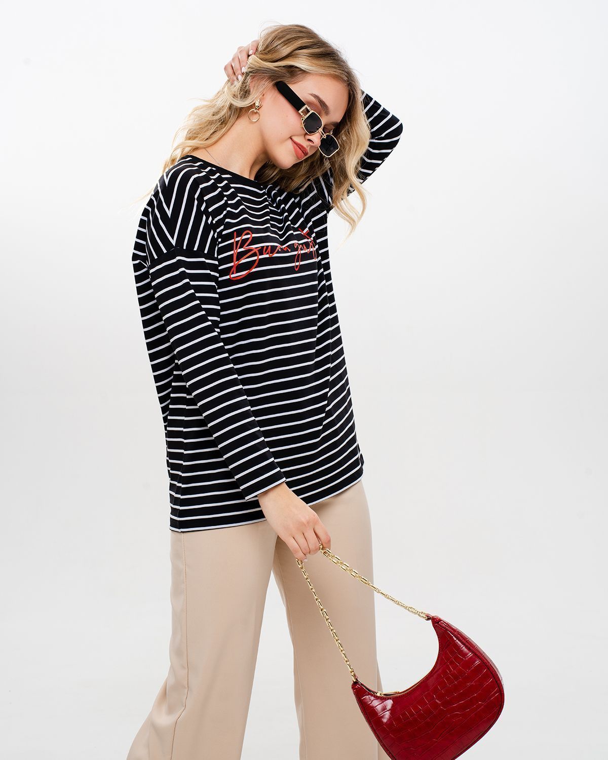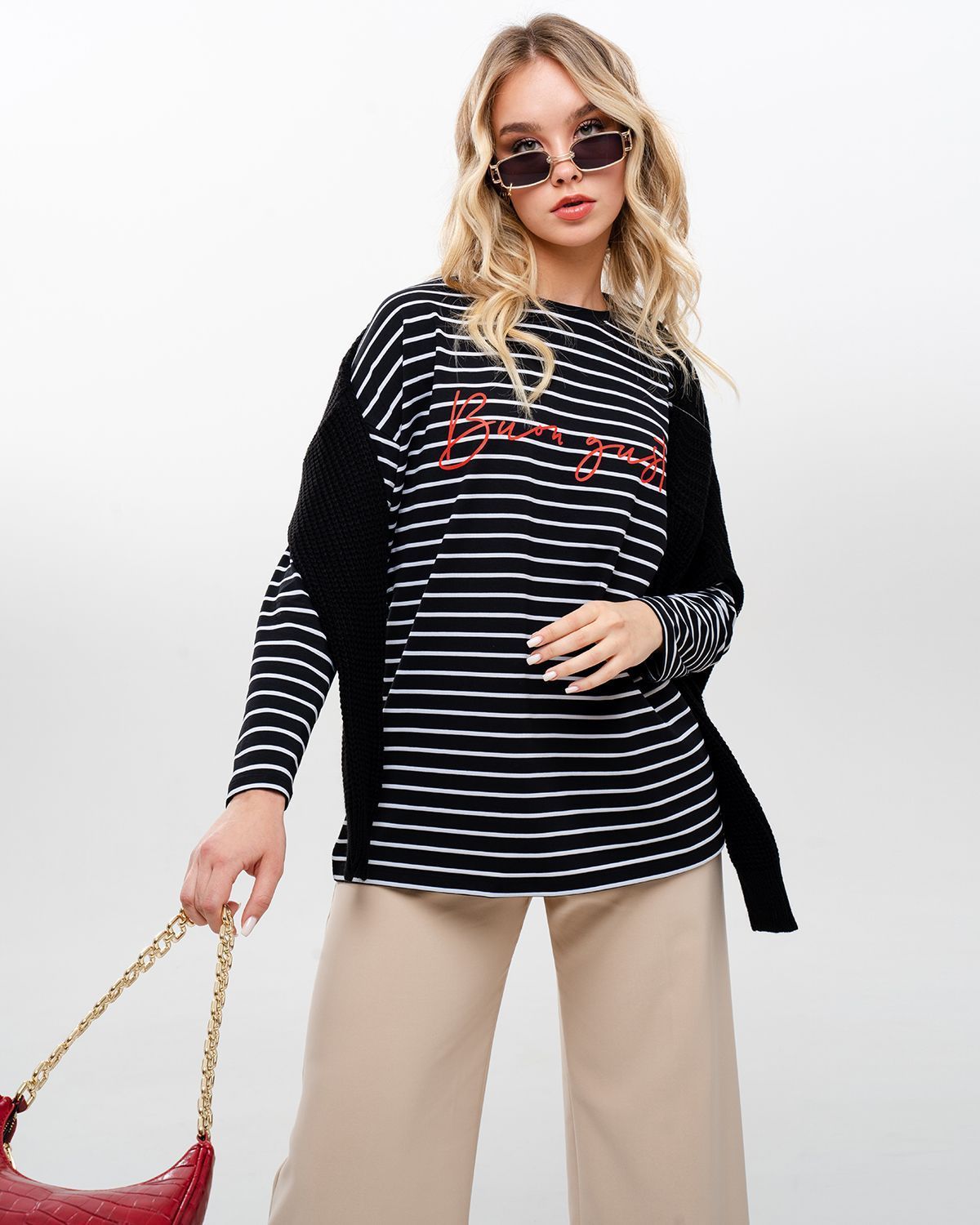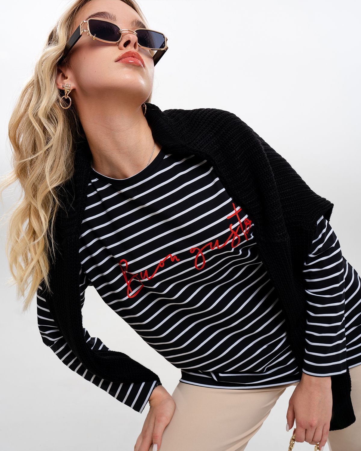Базовый лонгслив в полоску — легкая модель для создания расслабленных спокойных образов. Сделан он из приятной для тела хлопковой кулирки. Это ткань, которая дышит, гипоаллергенна и не вызывает раздражений. Мягкая и эластичная кулирка хорошо переносит стирки и служит долго. Поэтому можете быть уверены, что изделие с вами на несколько сезонов. Поставщиком ткани для нас является Турция.
