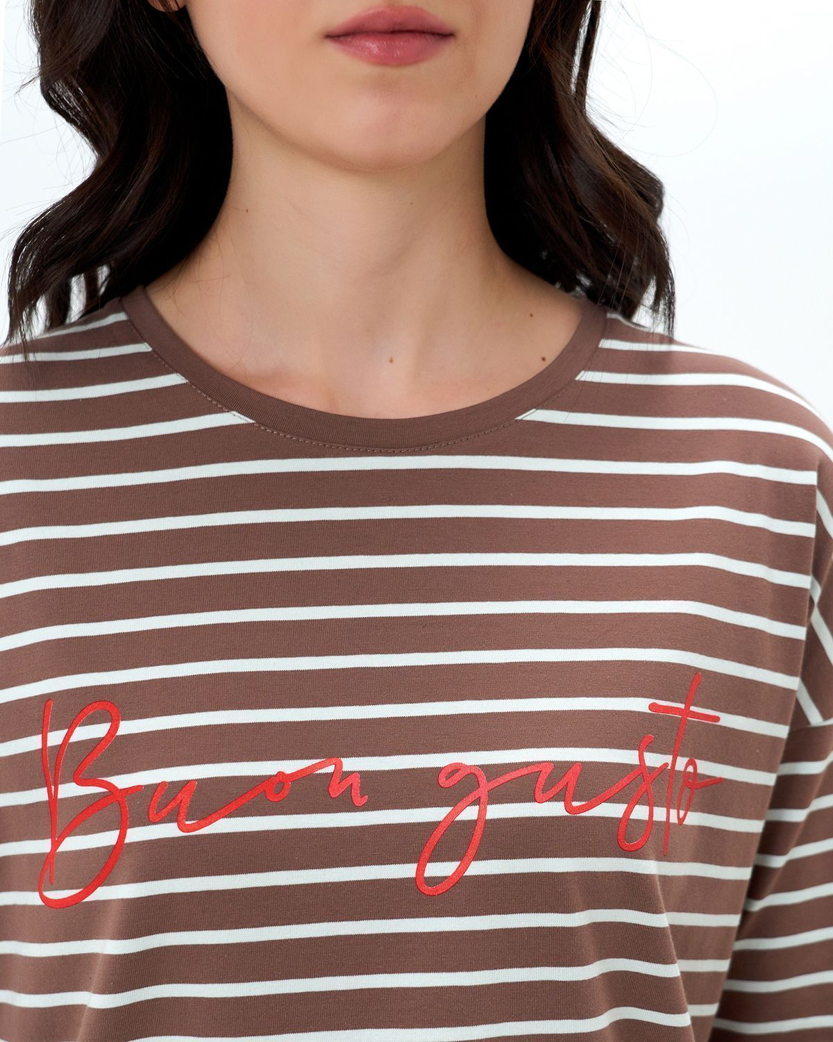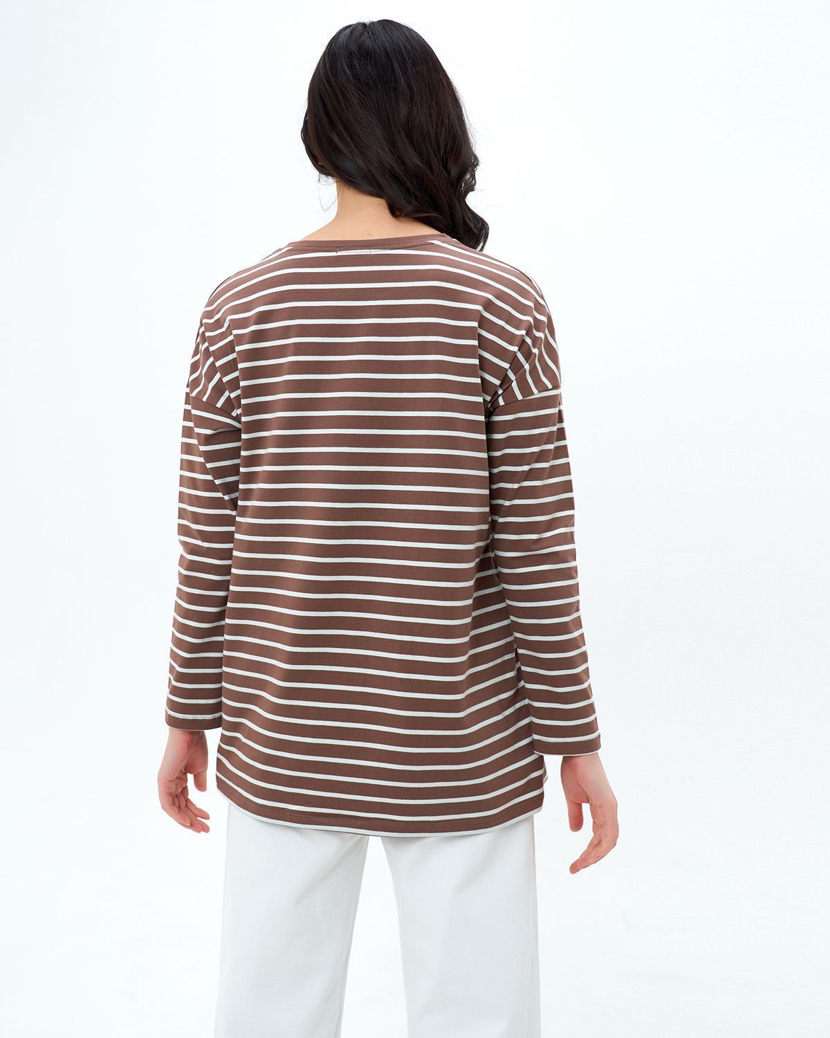 Базовый лонгслив в полоску — легкая модель для создания расслабленных спокойных образов. Сделан он из приятной для тела хлопковой кулирки. Это ткань, которая дышит, гипоаллергенна и не вызывает раздражений. Мягкая и эластичная кулирка хорошо переносит стирки и служит долго. Поэтому можете быть уверены, что изделие с вами на несколько сезонов. Поставщиком ткани для нас является Турция.