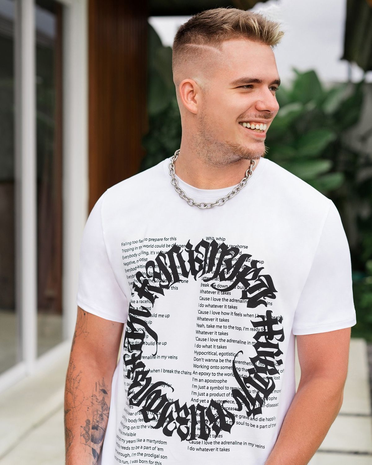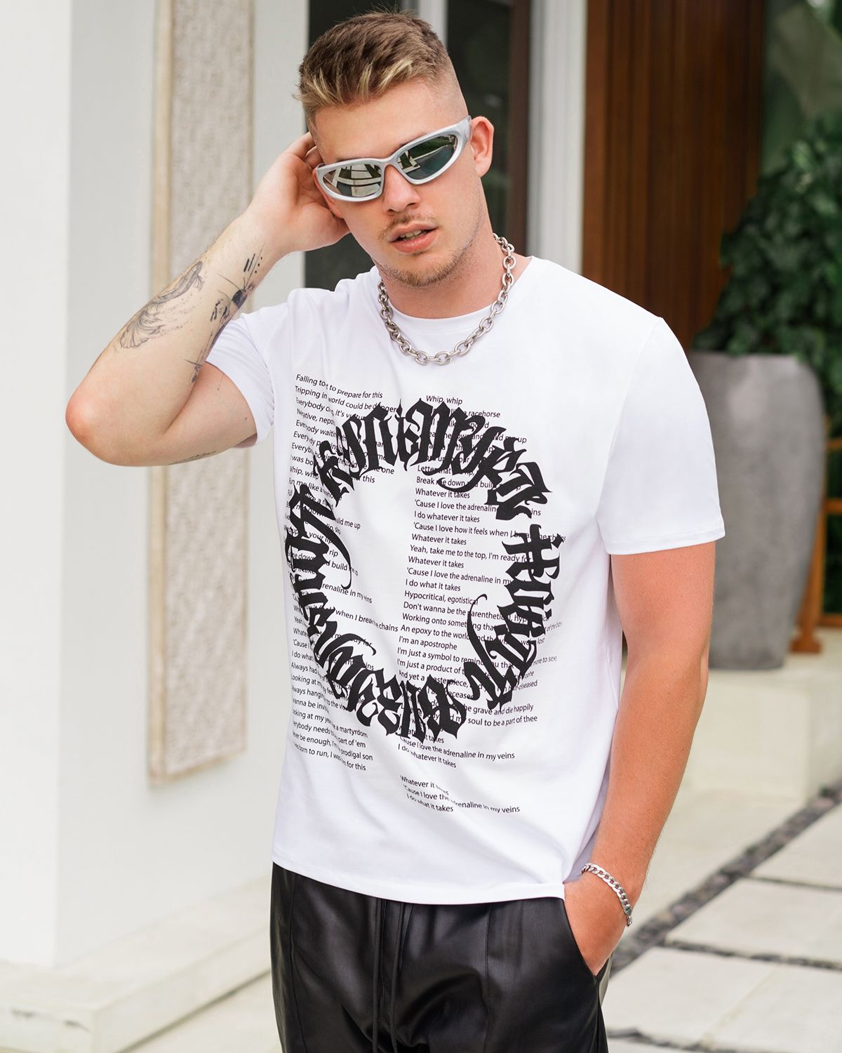 Мужская футболка имеет стандартный крой. Если хотите, чтобы она сидела по фигуре, как на фото, берите свой размер, ориентируясь на таблицу. Если хочется эффекта оверсайз или немного свободной посадки, выбирайте на размер или два больше.