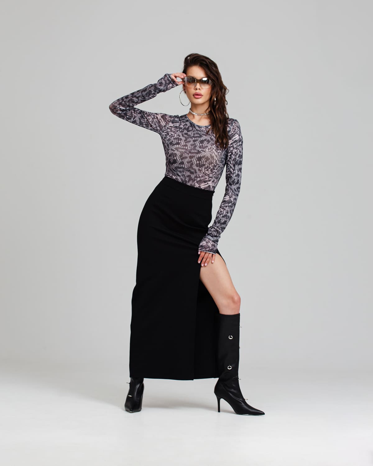Боди женский из сетки с принтом-тренд. Его можно надевать под платье, жакет, кардиган, жилет.