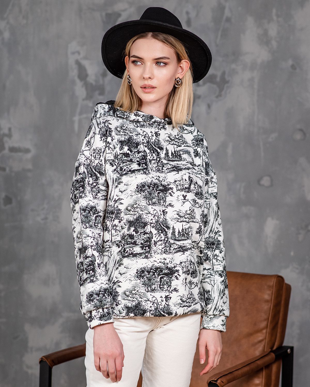Худи женское оверсайз кроя, полностью покрытое принтом — это цельный холст, которым можно укрыться от всех пасмурных ненастий. Кофта с капюшоном сделана из приятного для тела материала интерлок. Внутри это хлопок, а снаружи специальный слой для печати рисунка. Принт, нанесённый на ткань методом сублимационной печати — гарантия долгожительства красок, их яркости и сочности. Рисунки не выстирываются даже после 50 стирок! Капюшон украшает шелковая подкладка, которая красиво переливается и служит дополнительным декором, привлекающим внимание. Худи женское тёплое имеет свободный крой. Учитывайте, что толстовка женская оверсайз и должна иметь свободную посадку. На модели надет самый маленький размер (42-44).