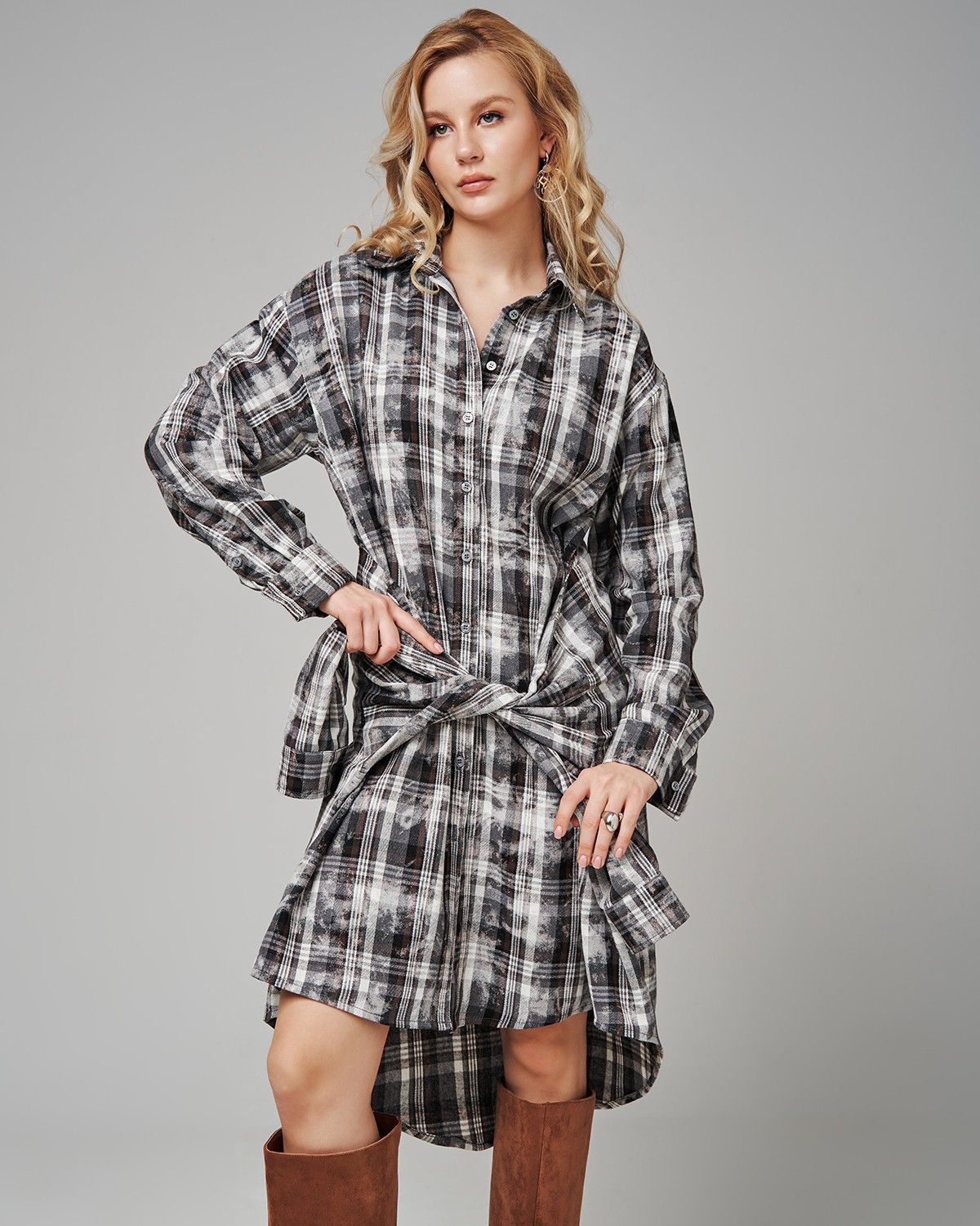 Сочетание строгости рубашечного кроя и расслабленности свободной посадки делает это платье универсальным выбором для любого случая. Будь то деловая встреча или романтическая прогулка, оно подчеркнет вашу индивидуальность и уверенность в себе. Эффект завязанных рукавов на талии – это не только стильный элемент декора, но и возможность регулировать силуэт, создавая более приталенный или, наоборот, более свободный образ.