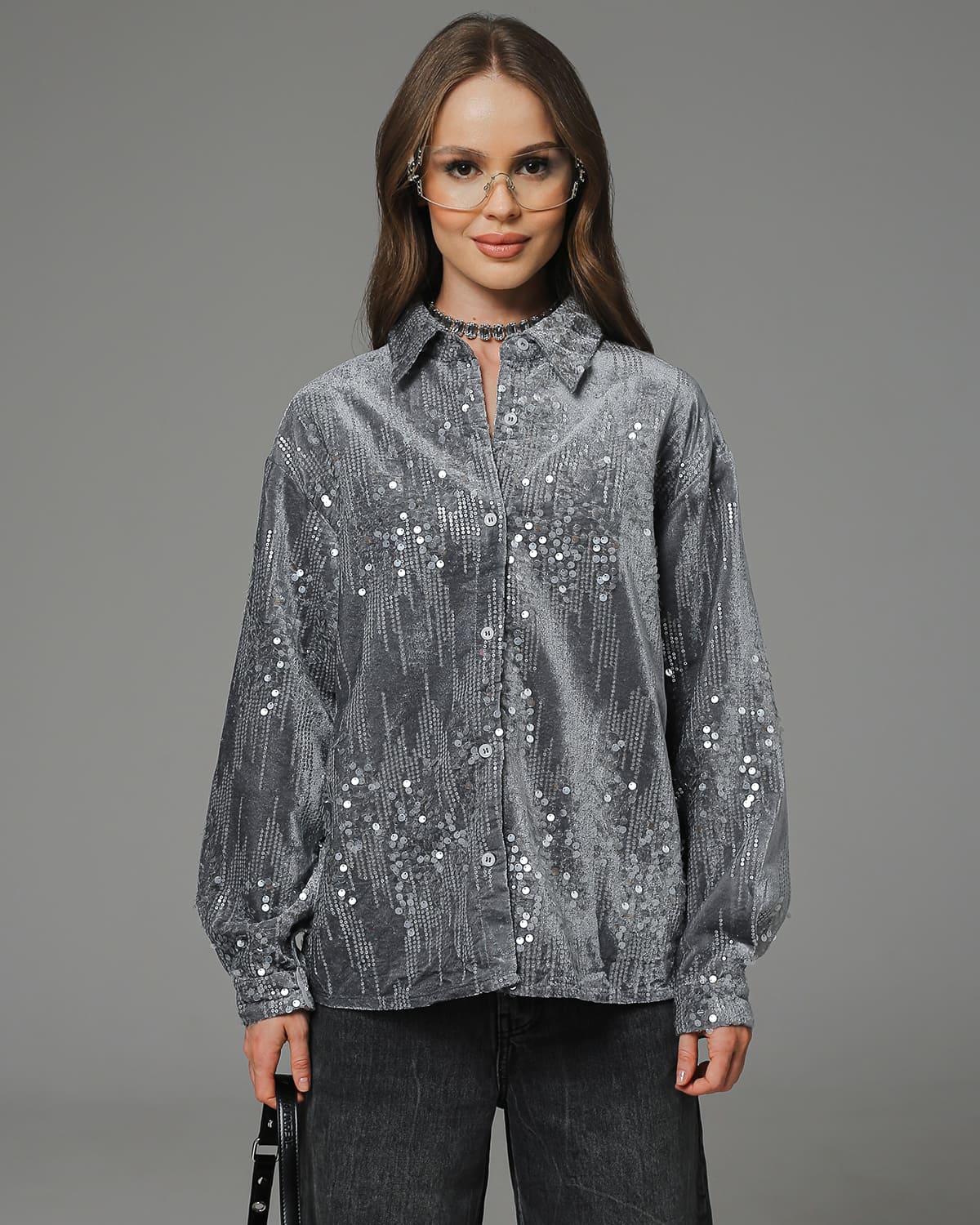 Рубашка из велюра в сочетании с пайетками идеально подходит для особого случая, вечерних мероприятий или корпоратива. Пайетки придадут любому наряду роскошный и праздничный вид!