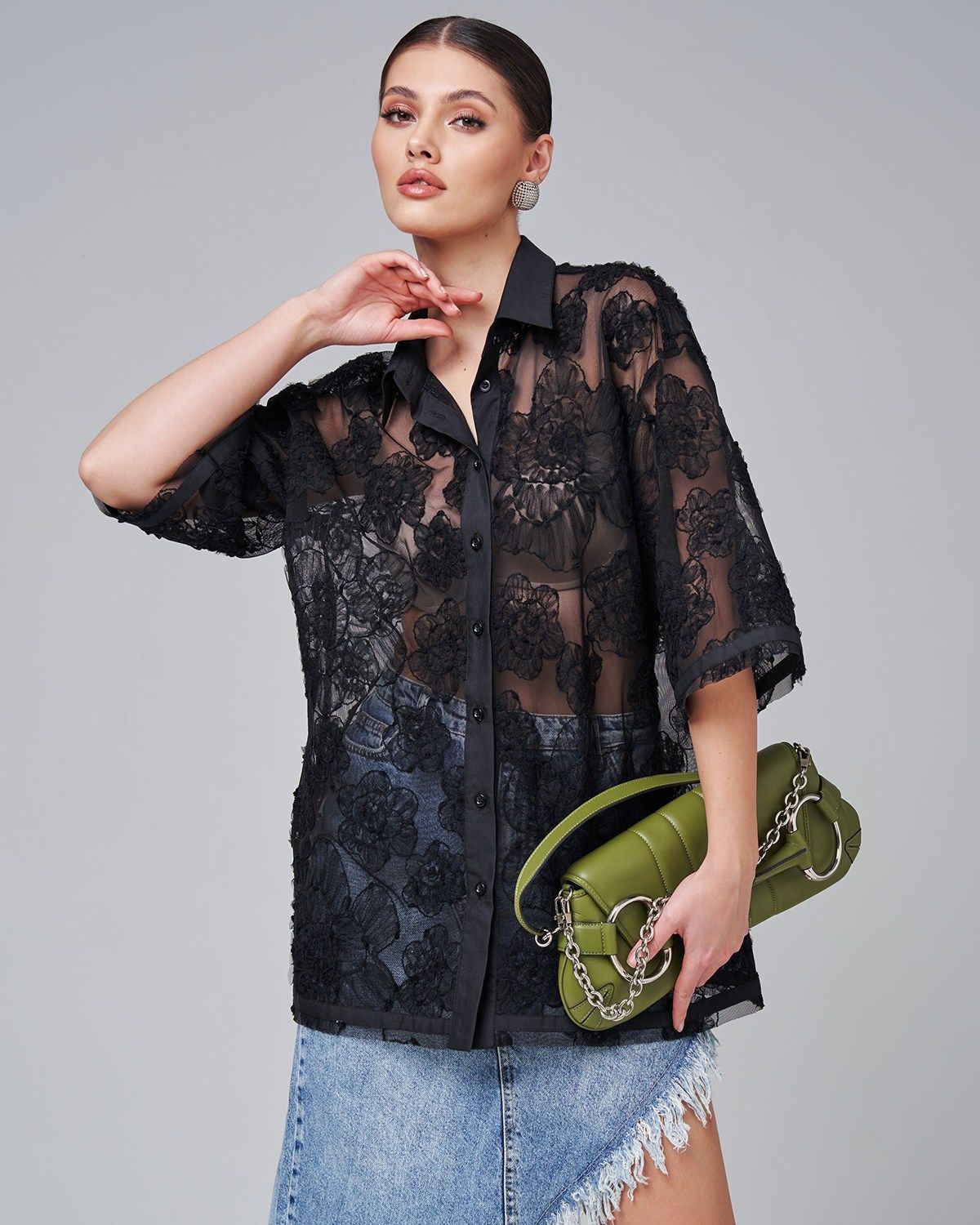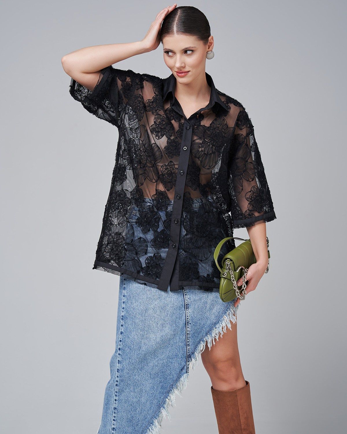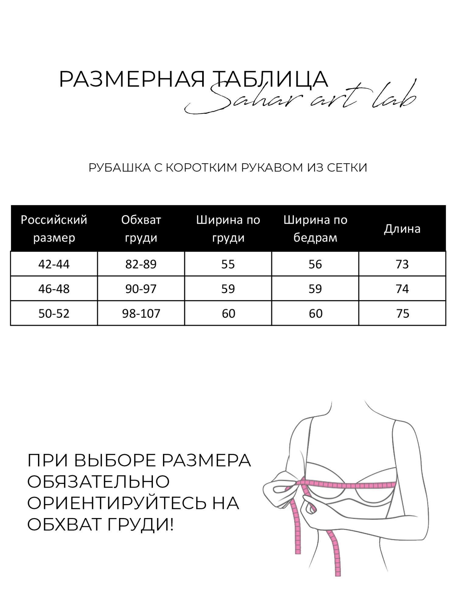 Представляем вам женственную блузку от SAHAR Art lab, которая станет настоящим украшением вашего гардероба! Эта прозрачная рубашка с короткими рукавами из легкой сетки с отложным воротником и спущенным рукавом создана для тех, кто ценит комфорт и стиль. Прозрачная ткань с нежными розочками добавит вашему образу романтичности и воздушности. Свободный крой оверсайз позволит вам чувствовать себя свободно и уверенно в любой ситуации. Рубашка на пуговицах с пуговицами в цвет изделия станет идеальным вариантом как для офиса, так и для повседневных образов. Она прекрасно сочетается как с брюками, так и с юбками, создавая стильные многослойные ансамбли.