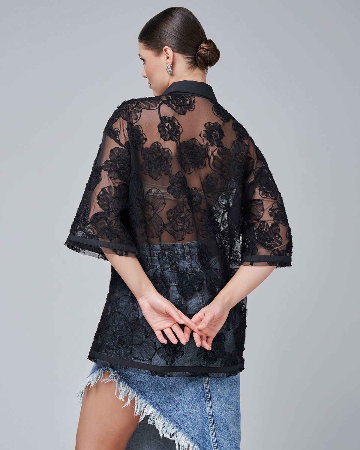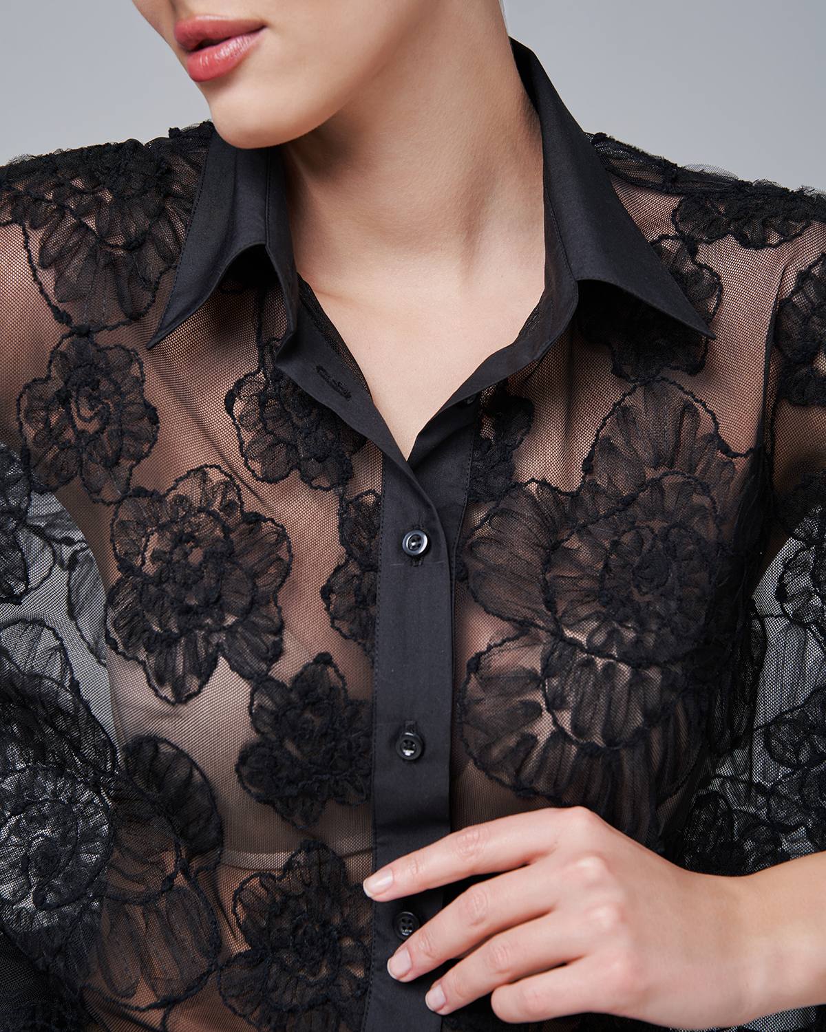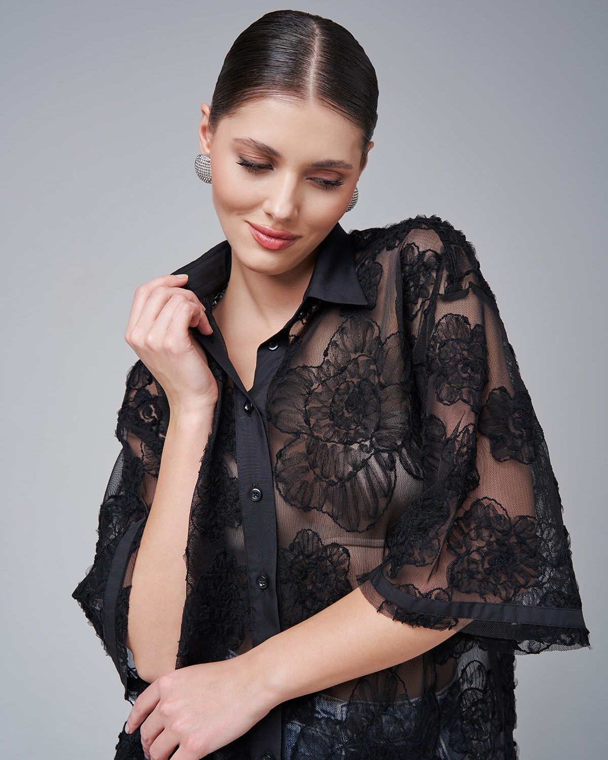Представляем вам женственную блузку от SAHAR Art lab, которая станет настоящим украшением вашего гардероба! Эта прозрачная рубашка с короткими рукавами из легкой сетки с отложным воротником и спущенным рукавом создана для тех, кто ценит комфорт и стиль. Прозрачная ткань с нежными розочками добавит вашему образу романтичности и воздушности. Свободный крой оверсайз позволит вам чувствовать себя свободно и уверенно в любой ситуации. Рубашка на пуговицах с пуговицами в цвет изделия станет идеальным вариантом как для офиса, так и для повседневных образов. Она прекрасно сочетается как с брюками, так и с юбками, создавая стильные многослойные ансамбли.