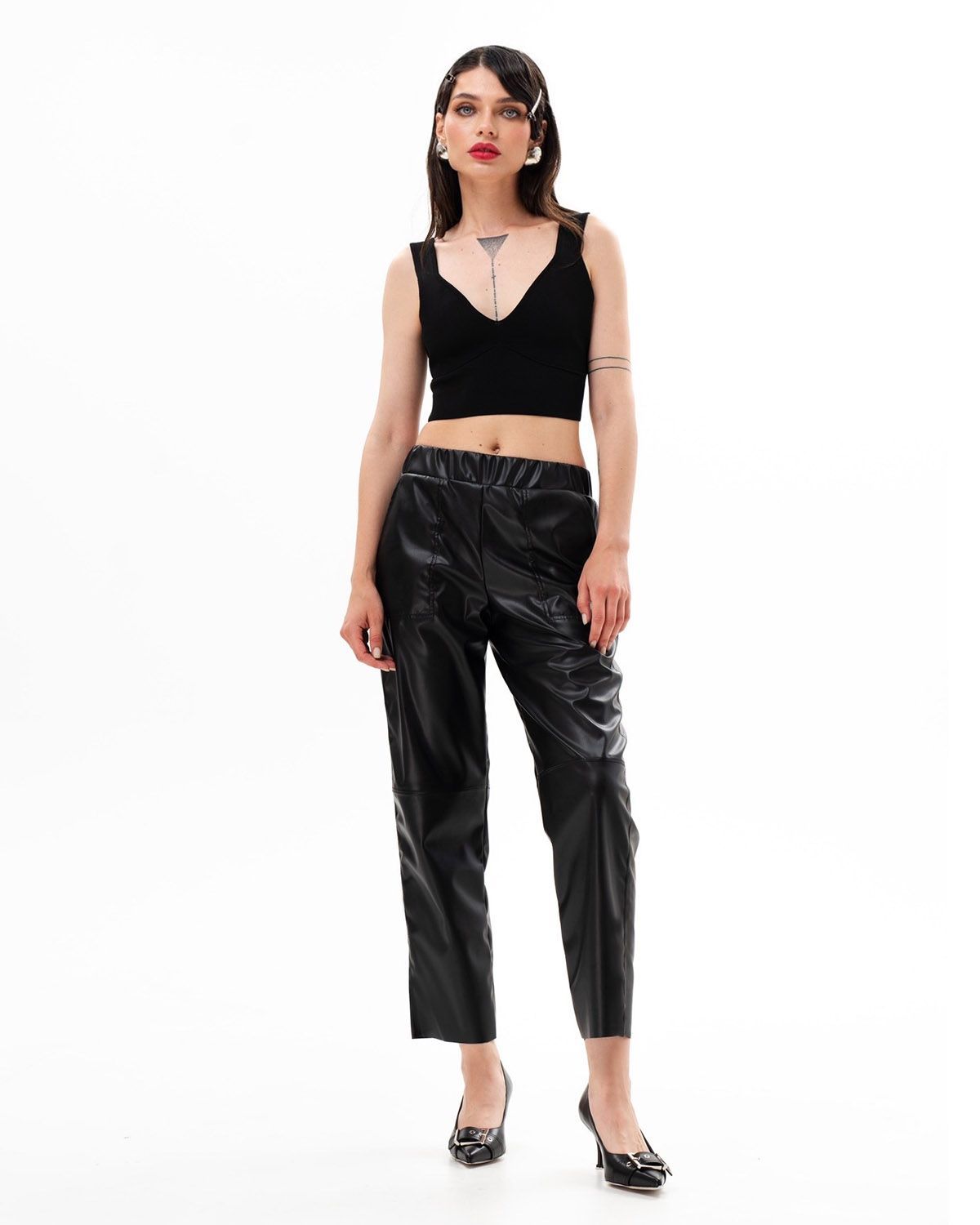 Кожаные брюки – актуальная модель сезона осень-зима. Брюки сшиты из матовой экокожи. Брюки прямого кроя премиум качества не блестят, идеально садятся и выглядят дорого. Черные брюки выполнены из прочного материала высокого качества, вы можете быть уверены в долгой качественной носке. Высокая посадка выполнена таким образом, что хорошо скрывает недостатки и визуально стройнит. Высококачественный эластичный материал делает носку классических брюк очень комфортной. Внутренний слой - это мягкий бархатистый материал, приятный к телу. Брюки теплые не слишком узкие, так что вы с легкостью сможете поддеть утепленные леггинсы и не замерзнуть зимой. Брюки классические идеально подойдут под офисный стиль. Брюки отлично поддерживают фигуру. Брюки не растягиваются и не трескаются в мороз. Брюки офисные теплые сочетаются с разнообразными луками разных стилей: повседневный, прогулочный, кэжуал, офисный и спортивный. Брюки кожаные женские рассчитаны на демисезонную носку - осень, зиму и весну.