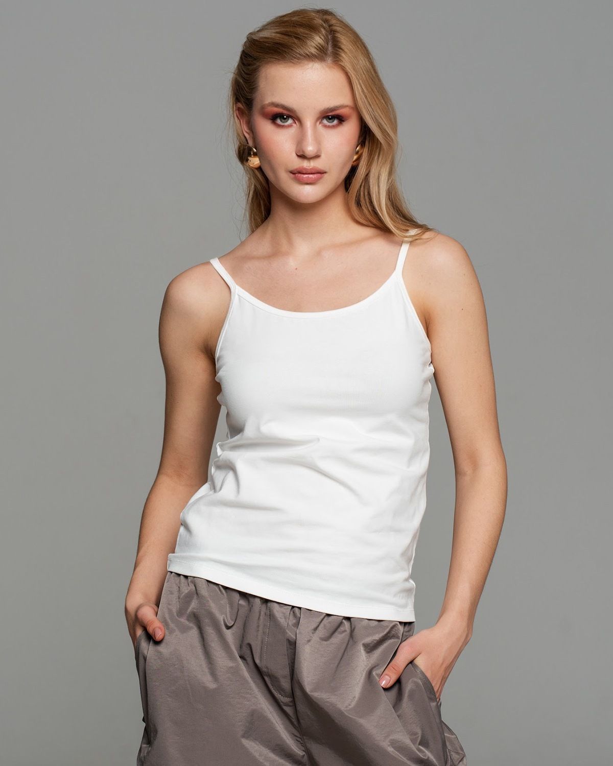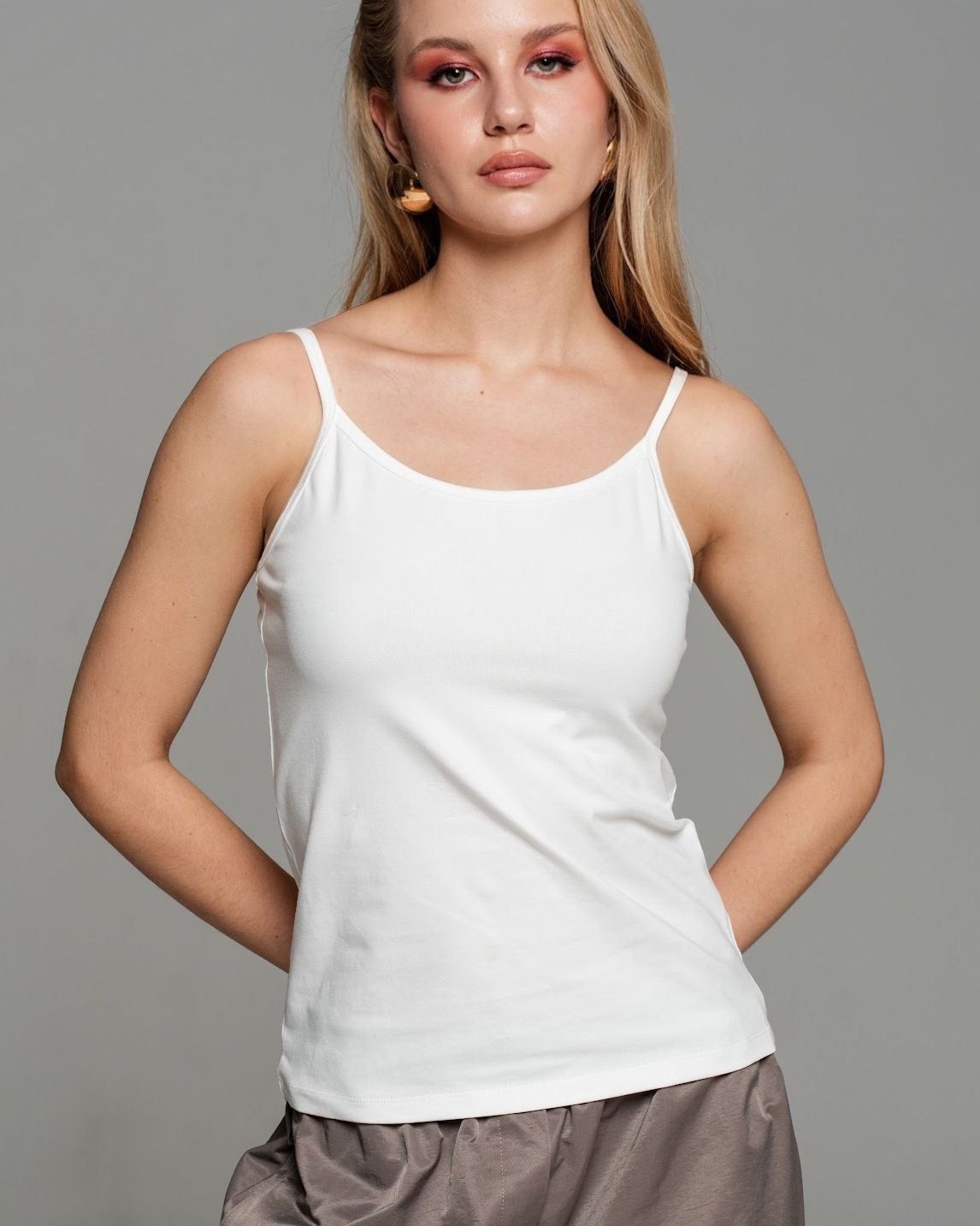 Топ женский в бельевом стиле надолго закрепился как универсальная вещь, которую можно надевать с чем угодно. Он часто становится прекрасной основой для многослойных образов с жакетами, пиджаками, кардиганами, хорошо сочетается с полупрозрачными вещами из сетки, шифона и других легких тканей, позволяет при необходимости сделать более скромным наряд с глубоким декольте и прекрасно справляется с созданием комфортных образов с рубашкой. Топ на тонких бретелях конечно же отлично смотрится и как самостоятельная единица. Майка женская однотонная сделана из премиальной турецкой хлопковой кулирки, которая отличается износостойкостью. Её можно спокойно стирать, она не теряет цвет, не садится и не подвержена образованию катышков.