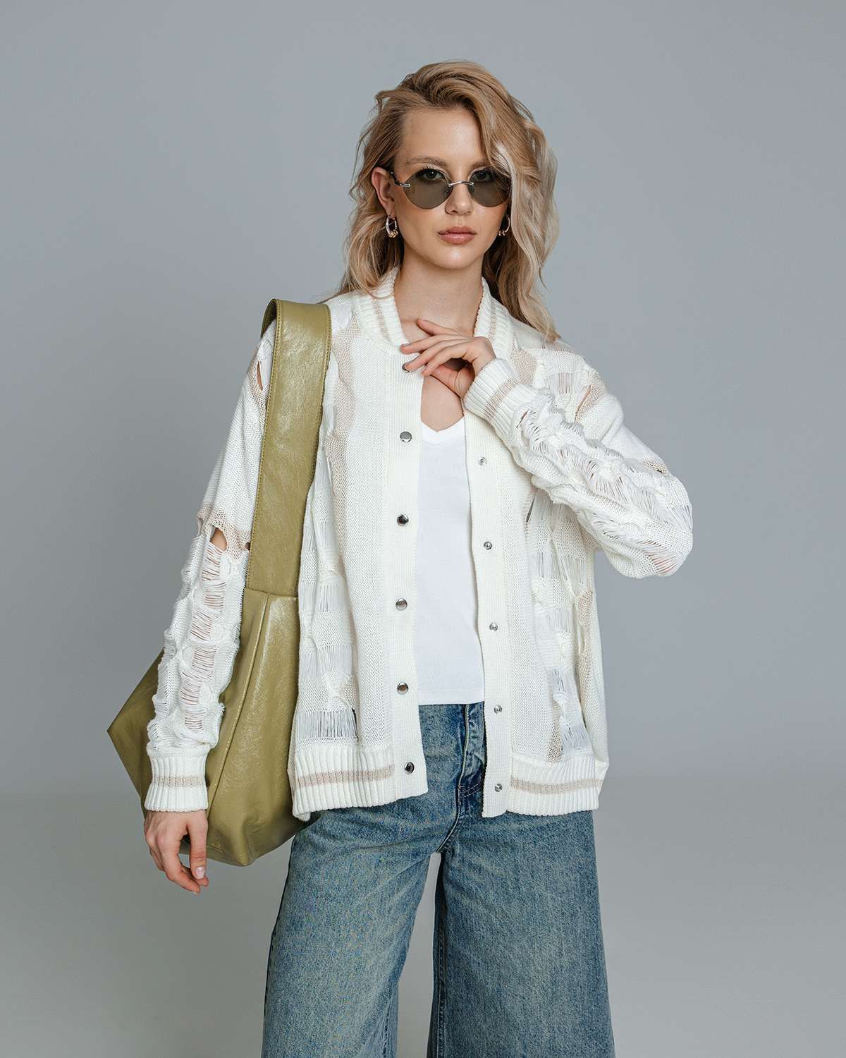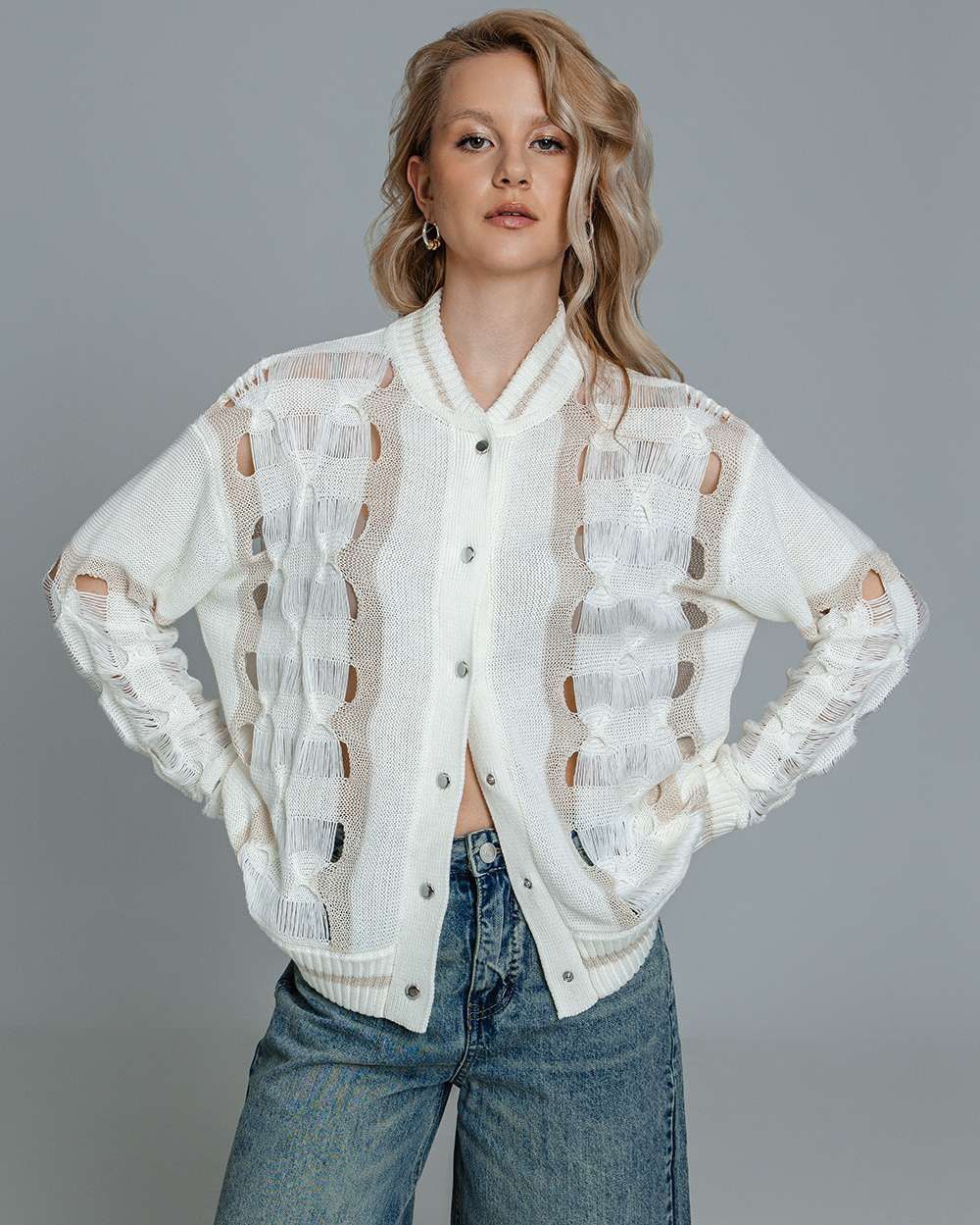 Кардиган вязаный с ажурным узором на кнопках KAR001