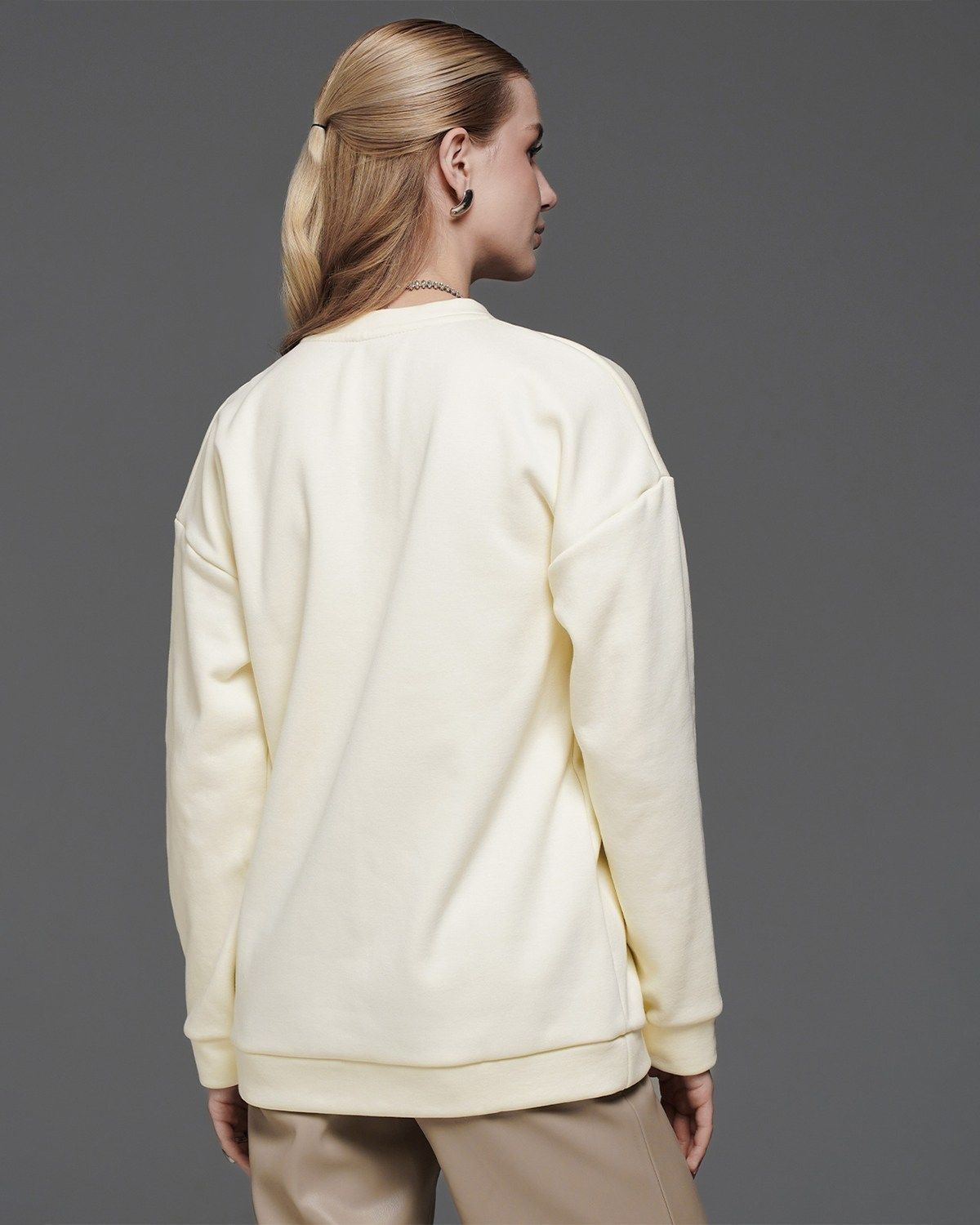 Женский свитшот оверсайз со стильным принтом бренда SAHAR Art lab - идеальная кофта для работы, школы или спортивных занятий. Теплая флисовая ткань и широкий оверсайз крой делают изделие комфортным в носке.